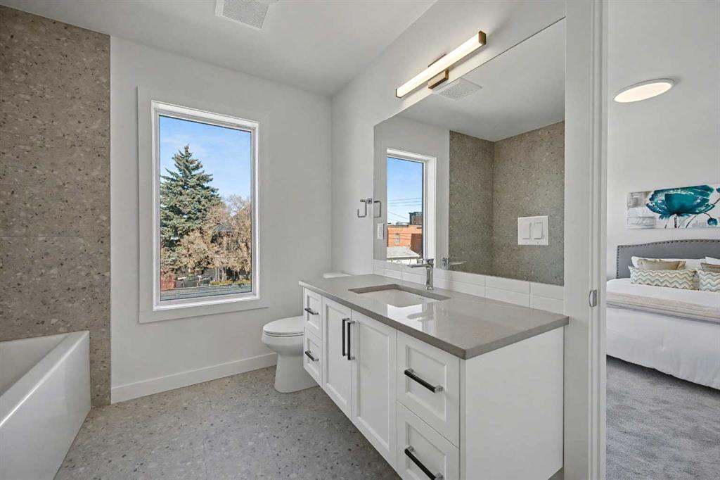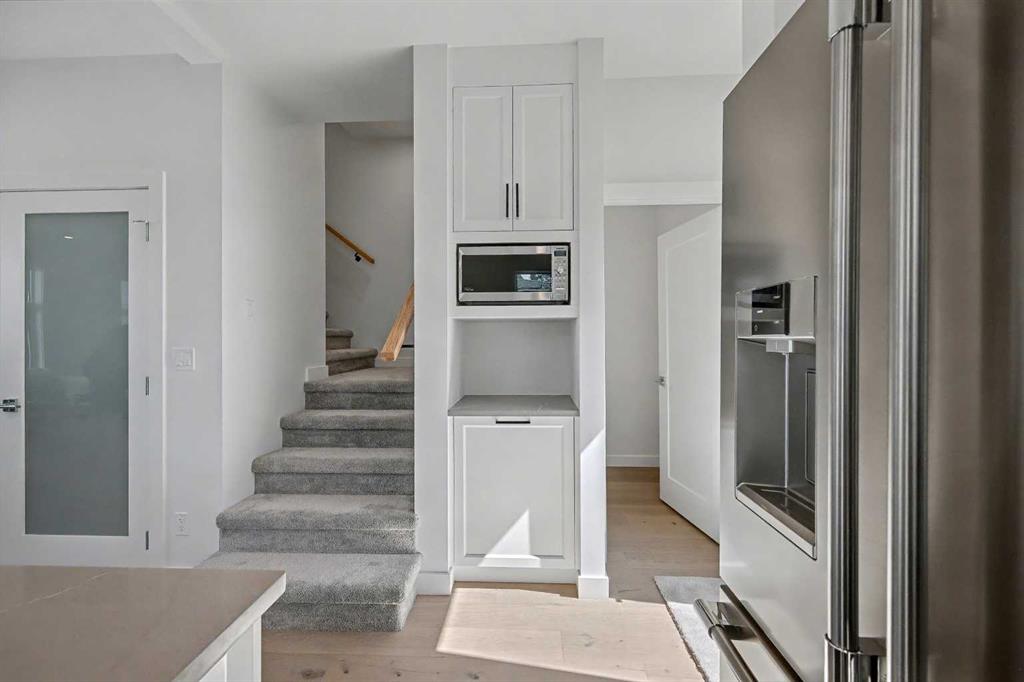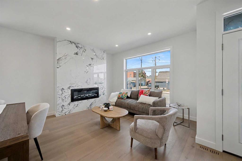 This thoughtfully designed three-story home offers approximately 2,084 sq. ft. of total living space, combining modern style, functionality, and comfort , ideal for professionals working downtown and small families seeking an active, connected lifestyle. The main floor welcomes you with a bright, open concept layout filled with natural light. The kitchen is both stylish and practical, featuring sleek white cabinetry, quartz countertops, stainless steel appliances, and a spacious island perfect for everyday living or entertaining. The dining and living areas flow seamlessly together, anchored by a striking floor-to-ceiling electric fireplace that adds warmth and character. Engineered flooring runs throughout the main level, creating a clean and modern feel. A convenient half bathroom is also located on the main floor for added functionality. The second level features the primary bedroom and a second bedroom, each with its own private bathroom, offering comfort and privacy for family members or guests. The third level adds valuable flexibility with a bonus room that opens directly onto a private rooftop patio with open views, perfect for a home office, additional living space, or a quiet place to relax and unwind. The bright basement provides additional living space, featuring a bedroom, a full bathroom, and a flexible area ideal for a recreation room, TV space, or home office. A small nook offers the option to create a dedicated desk or study area. A single detached garage is included, along with exterior features such as concrete walkways and wood fencing. The location truly sets this home apart. Bridgeland is one of Calgary’s most loved inner-city communities, offering a unique blend of convenience and neighborhood charm. Enjoy easy access to downtown while being surrounded by local cafés, restaurants, small shops, and everyday amenities. Nearby, Bridgeland Community Centre Playground offers fun for all ages with climbing structures, open green space for picnics, bike paths, and even a popular ice cream shop just steps away making it a favorite destination for families. You’re also close to Murdoch Park, the Bridgeland-Riverside Community Hall, and local markets, adding to the vibrant and welcoming atmosphere of the area. With parks, schools, entertainment, and pathways—including access toward the Bow River—this is a community that offers both lifestyle and convenience without the busy downtown feel. This is a rare opportunity to own a townhome in a boutique development in one of Calgary’s most desirable inner-city communities.