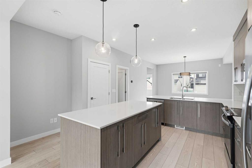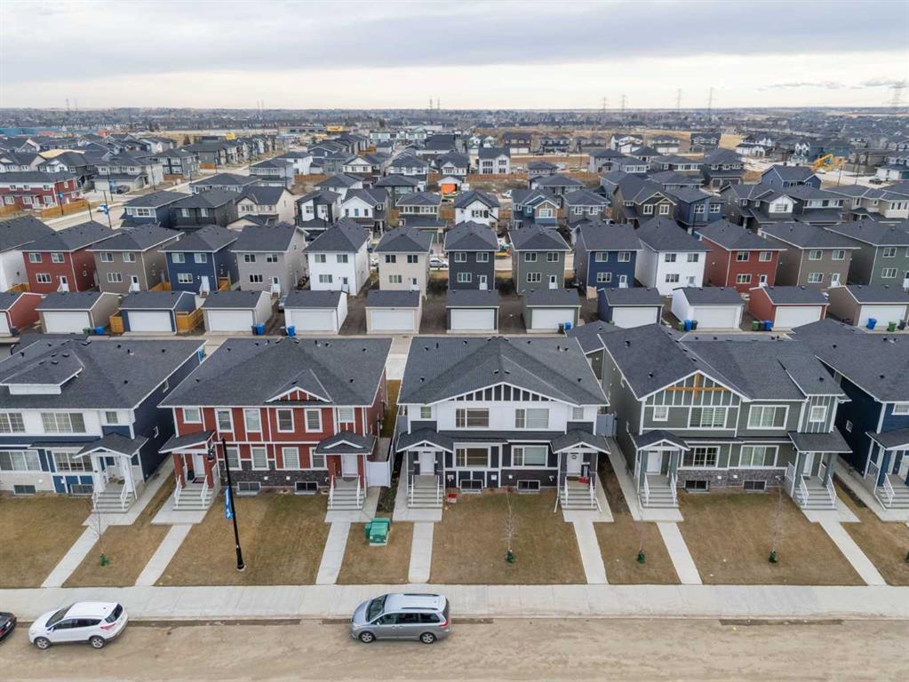 Welcome to 592 Dawson Drive a simple but elegant semi-detached home, built in 2023 with thoroughly designed and everyday comfort. Upon entering, you will enjoy the streaming of natural light flow through the large front windows and open concept living room and kitchen. The spacious dining area connected directly with the kitchen offering the perfect space for family and friends gathering. The well-designed kitchen, which is equipped with stainless steel appliances, spacious kitchen island and quartz countertops. Conveniently located pantry to keeps everything organized, and everyday ease. Completing the main level includes a convenient 2-piece bathroom. The back yard with 20’ x 20’ parking pad and open space for your new custom deck to be completed. Upstairs, a primary bedroom with a walk-in closet and an ensuite along with two generously sized bedrooms and an additional 3-piece bathroom. The additional bonus room ideal for your lifestyle and/or quite retreat. Accessibly, the upper floor laundry room completes with a stacked washer and dryer, eliminating the need to run up and down the stairs for laundry tasks. The unfinished basement features high ceilings, plenty storage space, plumbing rough ins and a large window for your custom development, and with built SIDE ENTRANCE, ideal for a new legal suite to generate extra rental income in the near future. The new and vibrant community, Dawson’s Landing offers scenic walking paths, parks, and access to schools and everyday amenities. Chestermere Lake just minutes away. Whether you are first time home buyer, or small family looking for a place to call home this one is perfectly yours!