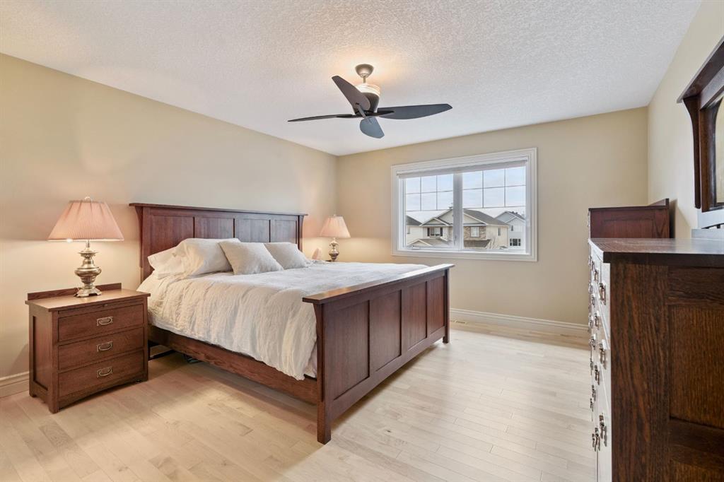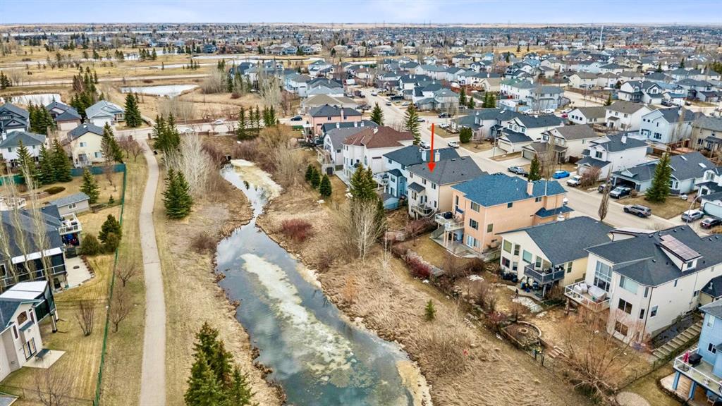 Welcome to this exceptional executive residence, tucked away on a quiet cul-de-sac in the highly sought-after lakeside community of Chestermere. This custom-built two-storey walkout offers over 3,500 sq. ft. of beautifully developed living space, including a fully finished lower level, and backs onto peaceful green space, a creek, and parkland, creating a private and picturesque setting. Thoughtfully designed and professionally curated throughout, this home showcases sophistication from the moment you step inside. Rich hardwood flooring, elegant ceramic tile and an abundance of natural light elevate the main level, where a seamless layout blends everyday comfort with effortless entertaining. The stylish kitchen features stainless steel appliances, generous prep space, and excellent functionality, while the adjoining living and dining areas create a warm and inviting atmosphere for gatherings. A spacious laundry and mudroom with custom built-in cabinetry adds convenience and everyday luxury. Upstairs, four generously sized bedrooms provide an ideal family layout, highlighted by a serene primary retreat complete with a spa-inspired five-piece ensuite. The fully finished walkout basement expands the home’s versatility with a large family room, an additional bedroom, full bathroom, and a flexible bonus space perfect for a hobby room, workshop, gym, or creative studio. Outside, the professionally landscaped backyard is truly exceptional, with over $40,000 invested to create a private outdoor oasis. Expansive patios, stone pathways, and an underground sprinkler system ensure beauty with low maintenance, while direct access to the surrounding reserve offers peaceful views and year-round enjoyment. Additional features include central air conditioning, two fireplaces, skylights, and a double attached garage. Ideally located within walking distance to schools, parks, and amenities, this is a rare opportunity to own a meticulously maintained and extensively upgraded home in one of Chestermere’s most desirable settings.