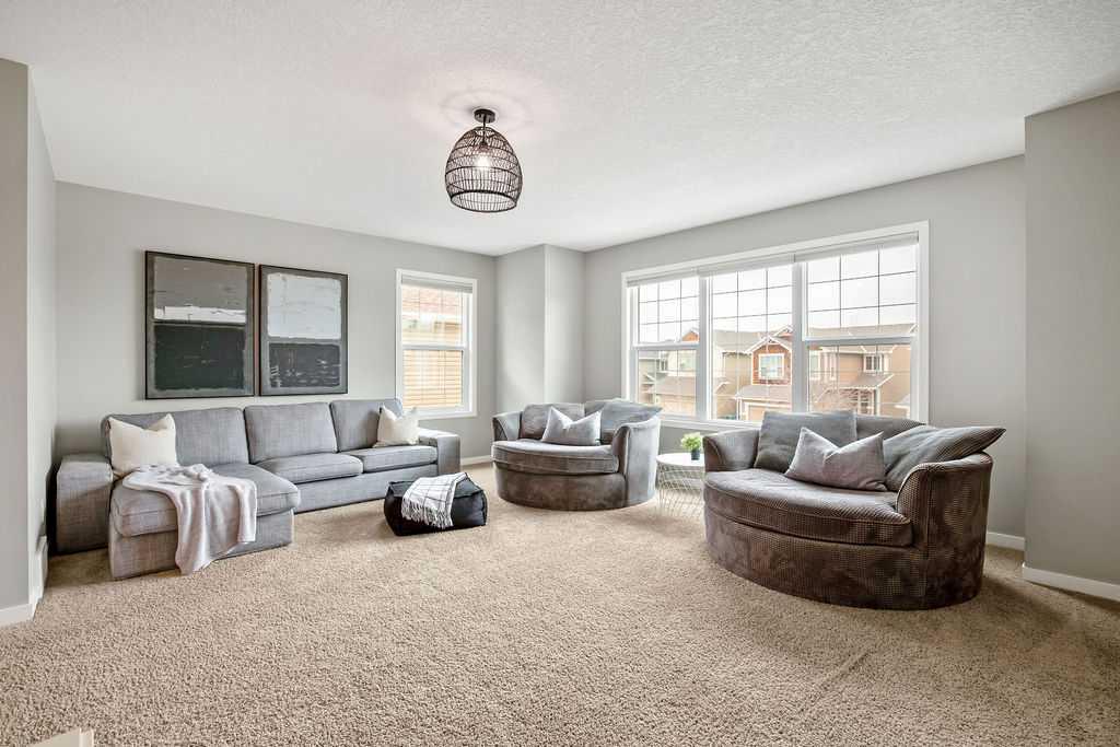 Welcome to this beautifully maintained Cedarglen home, offering a functional and inviting open-concept layout. The main floor features engineered hardwood, a spacious kitchen with an oversized island, white cabinetry, granite countertops, new dishwasher and a convenient walk-through pantry. The dining area is thoughtfully extended with additional cabinetry, making it ideal for both family meals and entertaining. The living space is bright and open, anchored by a feature fireplace. Upstairs, you’ll find a large bonus room along with three generously sized bedrooms. The primary retreat is complete with a 5-piece ensuite featuring dual sinks, separate shower and a relaxing soaker tub. The secondary bedrooms are spacious, with one offering a walk-in closet. A designated laundry room with updated washer and dryer complete the upper level. Step outside to enjoy the sunny SW-facing backyard with a deck and full fencing. This home has been well cared for with updated appliances, a newer hot water tank, and regular servicing of the furnace and air conditioning. Additional highlights include an unfinished basement with bathroom rough-in, a double attached garage with high ceilings and epoxy flooring, and updated light fixtures and blackout blinds throughout. Located on a friendly street in Auburn Bay, a sought-after four-season lake community offering year-round activities and exclusive lake access. Walking distance to multiple schools, shopping, dining, off-leash dog park and more. Just minutes to South Health Campus, YMCA, various restaurants, and quick access to Stoney Trail and Deerfoot.