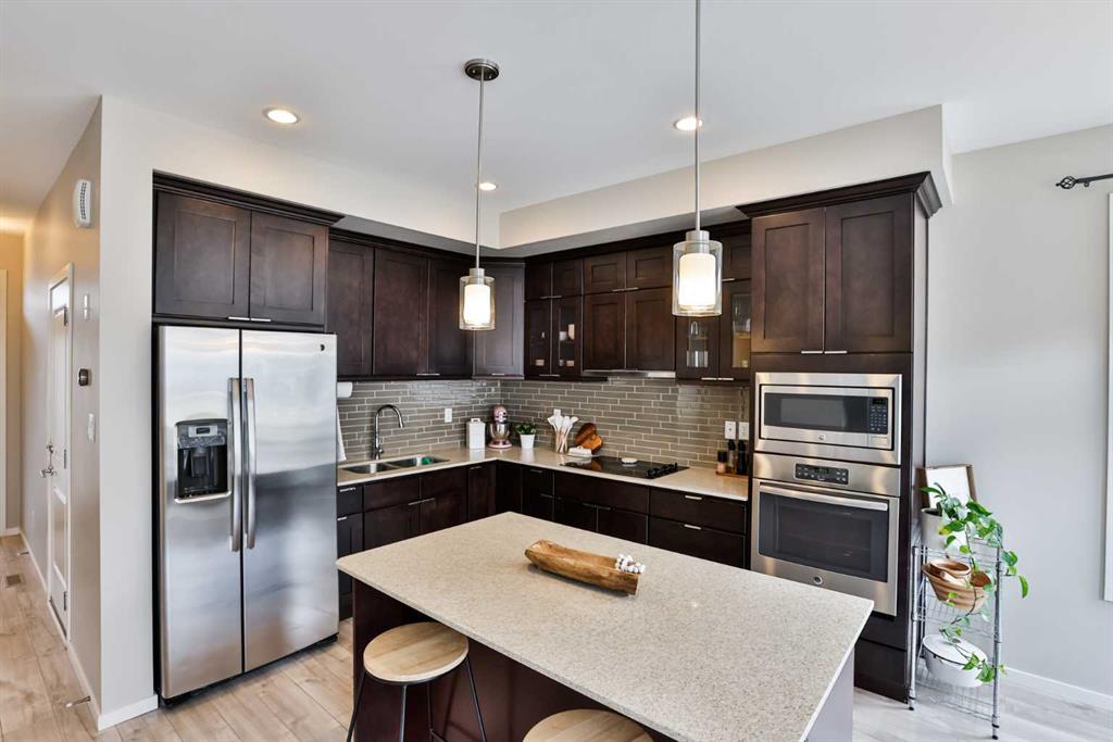 Conveniently located just one street in from the boulevard, this bright and beautifully maintained interior unit offers the perfect blend of comfort, style, and functionality. Situated in the Skye development in West Highlands, as an end unit this home benefits from additional windows that fill the space with natural light throughout. Offering 3 bedrooms and 2.5 bathrooms, this two-storey condo has been exceptionally well cared for and shows true pride of ownership. The open-concept main floor welcomes you with a wall of windows along the back, creating a bright and inviting living space. The kitchen features stainless steel appliances, quartz countertops, modern lighting, and light-toned laminate flooring that enhances the airy feel of the home. Step outside to your private concrete patio with a privacy wall, backing onto a green space between buildings—perfect for relaxing or enjoying a quiet morning coffee. Additional features include a single attached garage (10’ x 20’) and central air conditioning, making those warm summer days and nights much more comfortable. Upstairs, you’ll find newly installed plush carpet (March 2024), adding warmth and comfort to the second level. Other recent updates includes a sump pump for added peace of mind. The primary bedroom also includes the mounted TV and bracket. The basement is currently undeveloped, offering excellent potential to build equity—whether you envision a fourth bedroom with an ensuite, additional living space, or a custom layout to suit your needs. The professionally managed complex takes care of exterior maintenance, including yard care and snow removal, making for easy, low-maintenance living. Ideally located close to grocery stores, restaurants, parks, and walking paths—this home truly checks all the boxes. Contact your favourite REALTOR® to book a showing today!