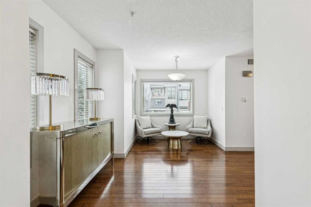 This gorgeous contemporary stacked townhouse delivers over 1050sq ft of impeccably designed highly functional living space. Expansive windows and vaulted ceilings allow incredible light flow throughout the loft-like layout of this home, with gorgeous hardwood floors adding sophistication and warmth. The open concept floor plan can be configured to best suit your lifestyle, with lots of room for a seating/living area, dining space and/or a casual home workspace. The star of the main level is the stunning kitchen that has everything you need for easy everyday living. You’ll love all the storage and counter space, along with the stainless-steel appliances. Sleek granite counters are complemented by rich cabinetry and modern finishings. Bar-style seating is idea for quick meals on the go or chatting with friends over drinks. There is also a balcony/patio for the warmer months – with south and east exposure. It’s great for outdoor dining or enjoying a quiet cup of coffee in the morning. Upstairs you’ll find two well-sized sunny bedrooms and a 4-piece washroom. Both rooms big windows and ample closet space. You’ll enjoy the convenience and security of your assigned underground parking stall. The property’s professionally designed and managed landscaping also adds fantastic curb appeal! This two-bedroom 1.5 bath home is an under 10 min drive to downtown and just steps to the trendy shops, cafes and restaurants of Marda Loop. You’ll be just blocks away from events and activities at the community association as well as the Calgary Public Library. This superb location alongside the design and functionality of this home makes this property ideal for those looking for an elevated urban lifestyle.