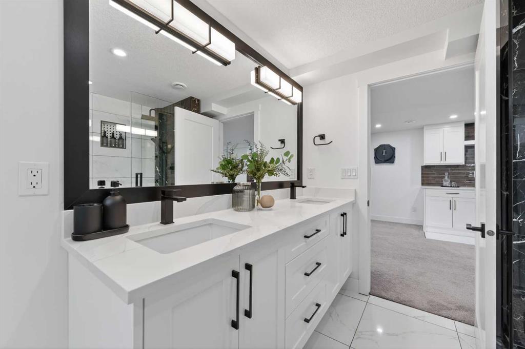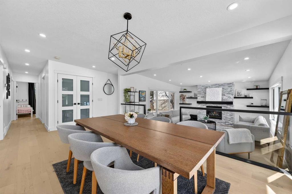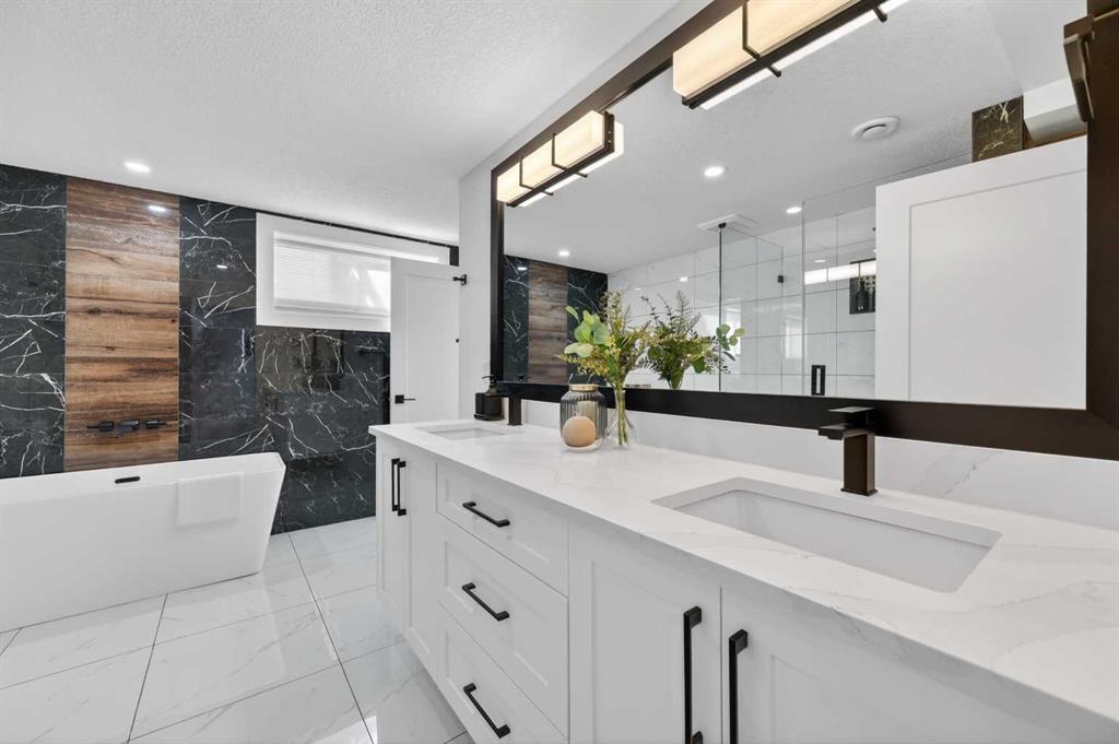 Fall in love the moment you walk through the front door. This beautifully renovated 1,340 sq. ft. bungalow ( 2,600 sq. ft. of total living space) is perfectly situated on a quiet, tree-lined street in sought-after Silver Springs. Fully renovated to the studs in 2022, this stunning home blends modern style with everyday comfort—ideal for family living and entertaining. Flooded with natural light, the main living area showcases expansive windows and a modern gas fireplace with a natural stone surround. The Living Room space flows effortlessly into a spacious dining area and a stunning chef-inspired kitchen featuring quartz countertops, a statement oversized island, abundant cabinetry, and sleek stainless-steel appliances. Step out to the large deck overlooking the generous backyard—perfect for summer gatherings. The main floor also boasts gorgeous hardwood flooring and feature walls throughout. Enter the luxurious primary suite complete with a walk-in closet and a spa-like ensuite boasting dual vanities and an impressive freestanding shower. Two additional well-sized bedrooms and a beautifully appointed 4-piece bathroom complete the main level. The fully developed lower level is designed for both relaxation and entertaining, offering a huge family room with a custom-built bar and a stunning fireplace feature that adds warmth and style. Two additional bedrooms—both with egress windows—provide flexibility for family or guests, along with an absolutely gorgeous 4-piece bathroom. A laundry room with sink and ample storage complete the space. Additional renovation features included all new windows, a high-efficiency furnace, updated new plumbing and electrical (panel and wiring), a 50-gallon hot water tank, and a new stucco exterior—offering peace of mind for years to come. Ideally located close to schools, shopping, and transit, plus Botanical Gardens, scenic walking paths, off-leash parks, and access to the Bow River. Perfect for families or empty nesters—this home is truly move-in ready. Just unpack and enjoy!