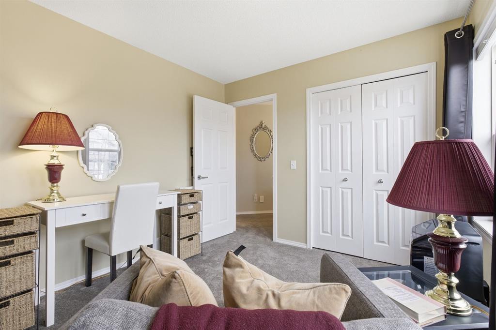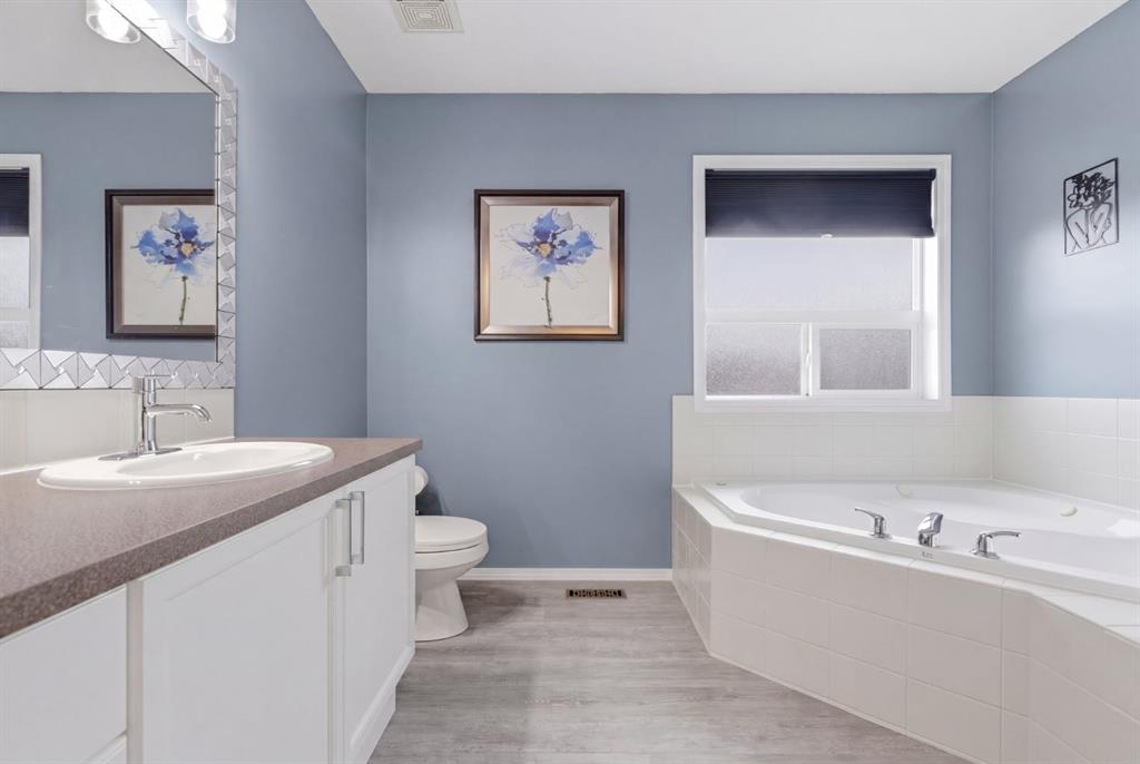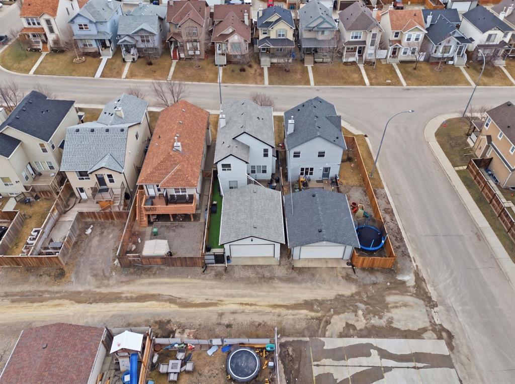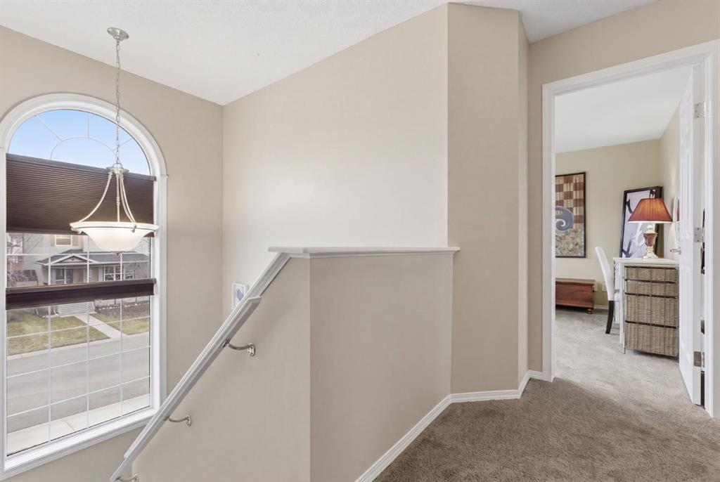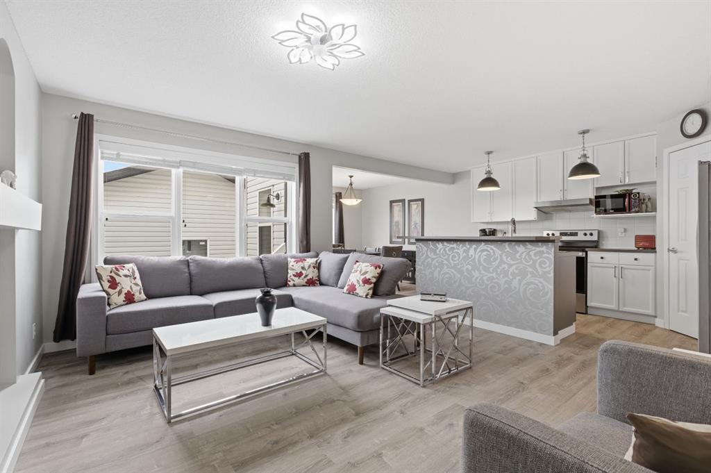 Live in the family friendly community of Cimarron. This cleverly laid out home is situated on a quiet street. As you approach you will appreciate the attractive curb appeal and inviting front porch. Throughout the home, pride of ownership is clear, with plenty of updates such as new vinyl plank flooring, new carpet, a new front door, stylish light fixtures, and an elegant railing. The kitchen is a focal point, boasting cabinets that reach to the ceiling, a tasteful tile backsplash, stainless-steel appliances, and a corner pantry for added storage. The large island seamlessly connects to the expansive living room, which features a gas fireplace with custom built in detail. Adjacent to the kitchen, the dining room is filled with natural light from numerous windows and provides direct access to your private backyard. This low maintenance yard has a large patio, artificial grass, a new fence and a double detached garage. The main floor is complete with a powder room tucked away as well as a front den, perfect for a home office, additional living room or kids’ playroom. Upstairs, you’ll find two generously sized bedrooms, a full 4-piece bathroom, and an expansive primary retreat. The primary suite is a true sanctuary, offering a large walk-in closet and a private ensuite with a luxurious jetted corner tub, separate shower and expansive vanity. The lower level is framed and prepped for easy future development. This home is ideally located within walking distance to schools, parks, pathways, shopping, and professional services. Schedule your private showing or view the virtual tour today.