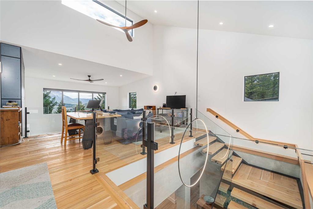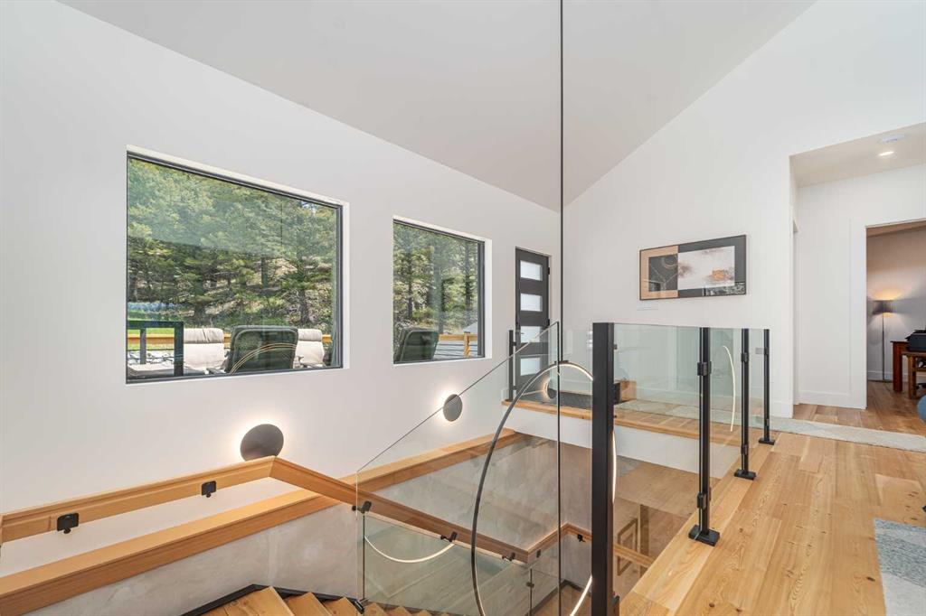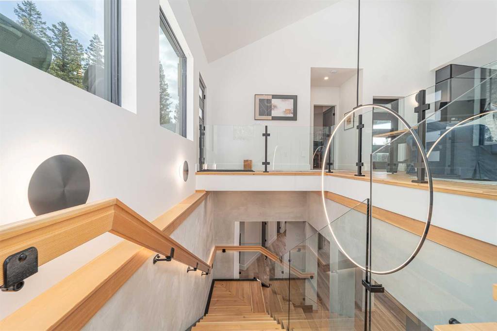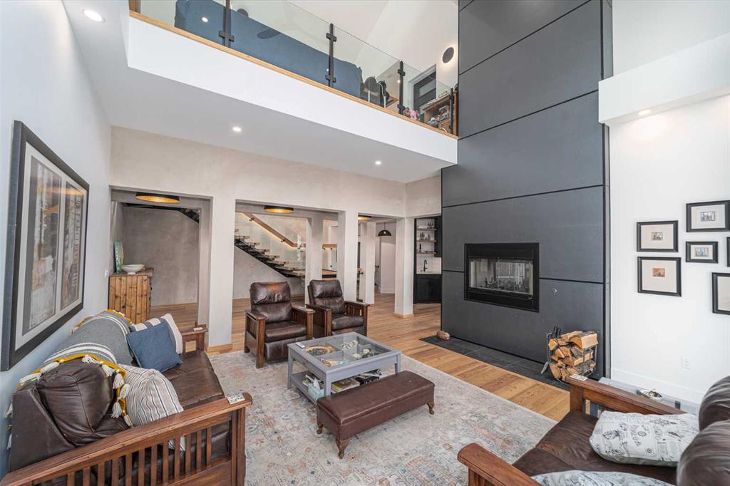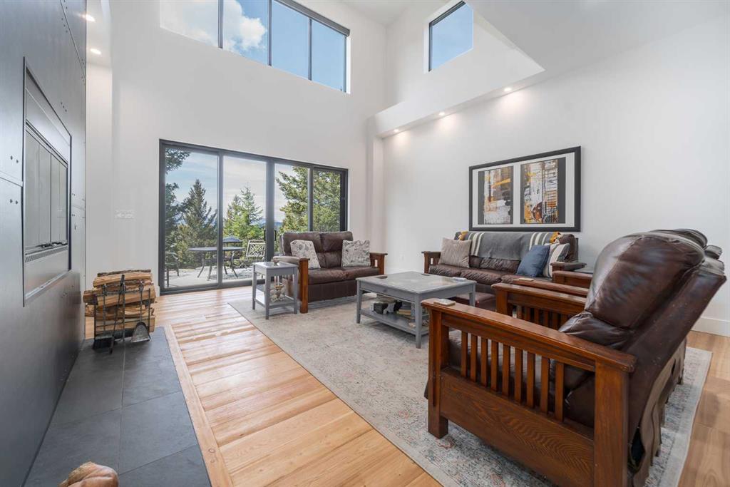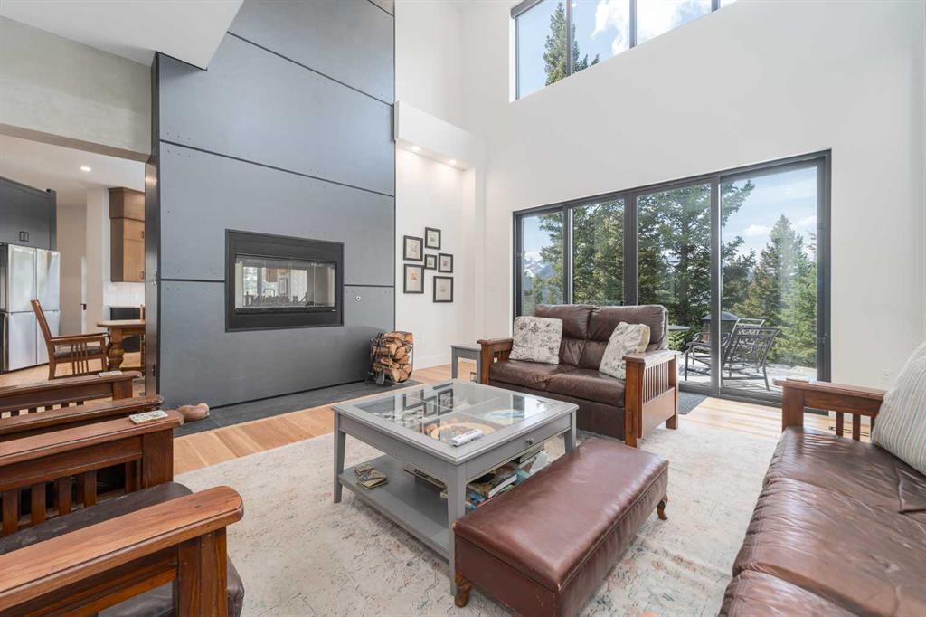 A Modern Masterpiece in the Heart of the Rockies. Set within the untouched beauty of Coleman, Alberta, this extraordinary custom-built residence redefines mountain luxury. Spanning over 3,600 square feet, this architectural showpiece is arguably the most modern and uniquely crafted home in the entire Crowsnest Pass. Designed for those who appreciate refined craftsmanship, natural serenity, and contemporary elegance, every detail of this home speaks to high design and timeless sophistication. The main level welcomes you with an awe-inspiring open-to-above living room, anchored by a striking two-sided wood-burning fireplace and framed by dual sliding glass doors that open onto one of four outdoor living spaces. Just beyond, a hallway and staircase command attention—straight out of an architectural design magazine. Venetian plaster walls, a sculptural open-tread staircase, glass railings, and softly illuminated lighting create a breathtaking transition between levels. The open-concept kitchen and dining area is flooded with natural light and overlooks your private, tree-lined acreage. The kitchen is a chef’s dream, adorned with luxurious quartz countertops, a custom tile backsplash, and an intuitive layout that combines beauty and functionality. Adjacent is access to your oversized heated garage, complete with soaring ceilings, built-in storage, and even a custom dog wash station. The main level also hosts the sumptuous primary suite—generously sized and elegantly appointed with its own secluded patio for morning coffee. The spa-inspired ensuite features dual vanities, a walk-in glass shower, a private water closet, and a spacious walk-in wardrobe, offering both comfort and tranquility. Two additional bedrooms are located on this level—one with its own private four-piece ensuite—alongside a beautifully designed main-floor laundry room. Upstairs, a light-filled lounge area overlooks the living room below and creates a stunning second-level retreat, perfect for relaxing or entertaining. A quiet office and elegant two-piece powder room are tucked thoughtfully into this space. From this level, you’ll access two distinct outdoor entertaining terraces. The first—a covered deck with a second wood-burning fireplace—boasts panoramic views of the Crowsnest Pass. It also leads to a tucked-away second office or potential guest bedroom, offering rare peace and privacy. The second outdoor terrace is located at the rear of the home, perfectly sheltered from the elements and opening onto a private trail that leads to your very own lookout—ideal for secluded camping or evening campfires. Completing this exceptional estate is a beautifully finished, insulated, and heated guest house at the front of the property—perfect for guests' hobbies or additional storage.