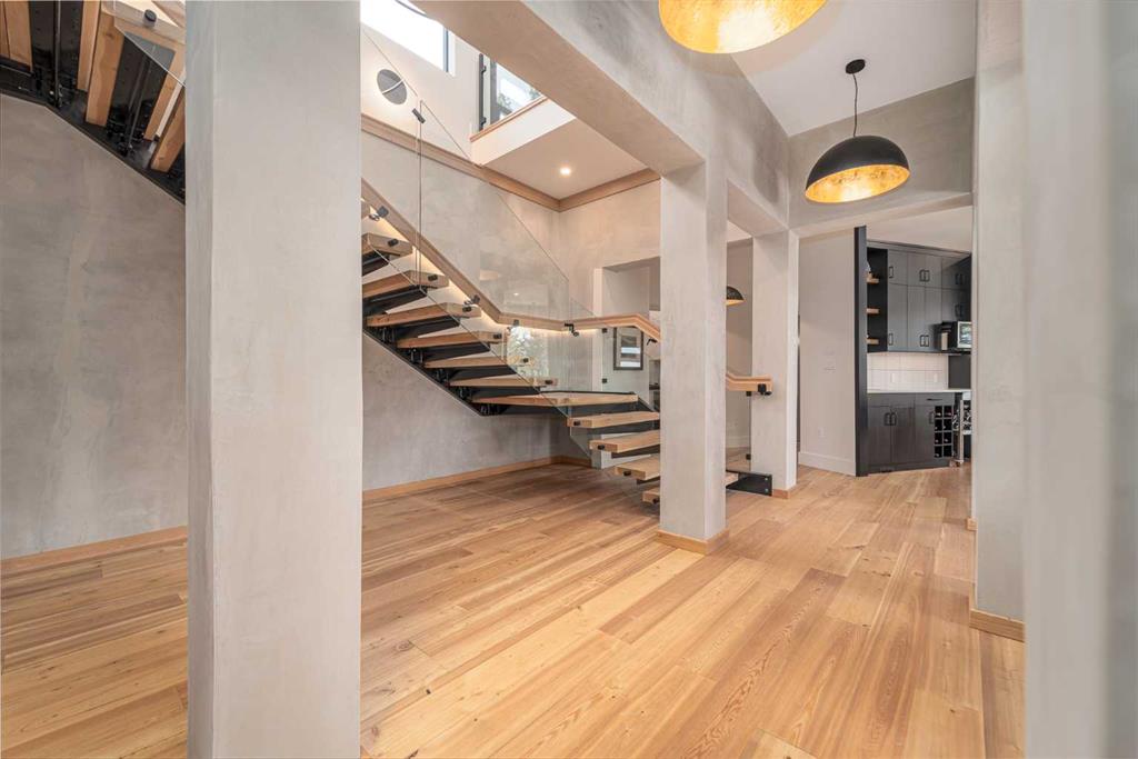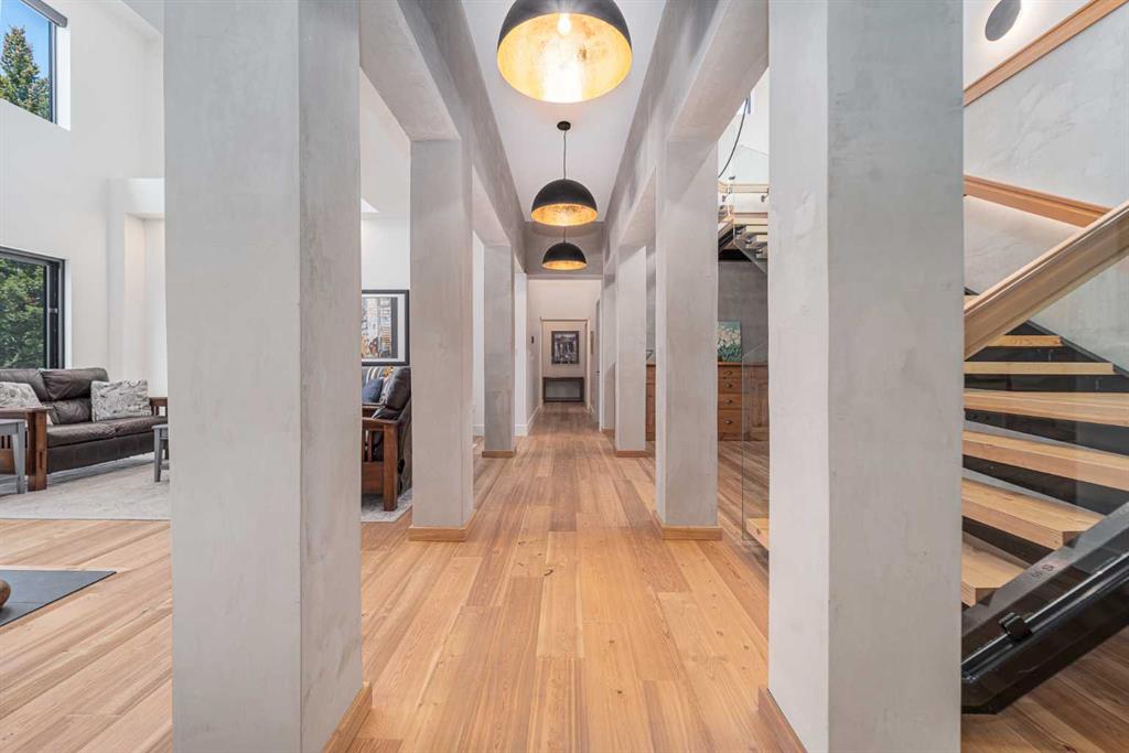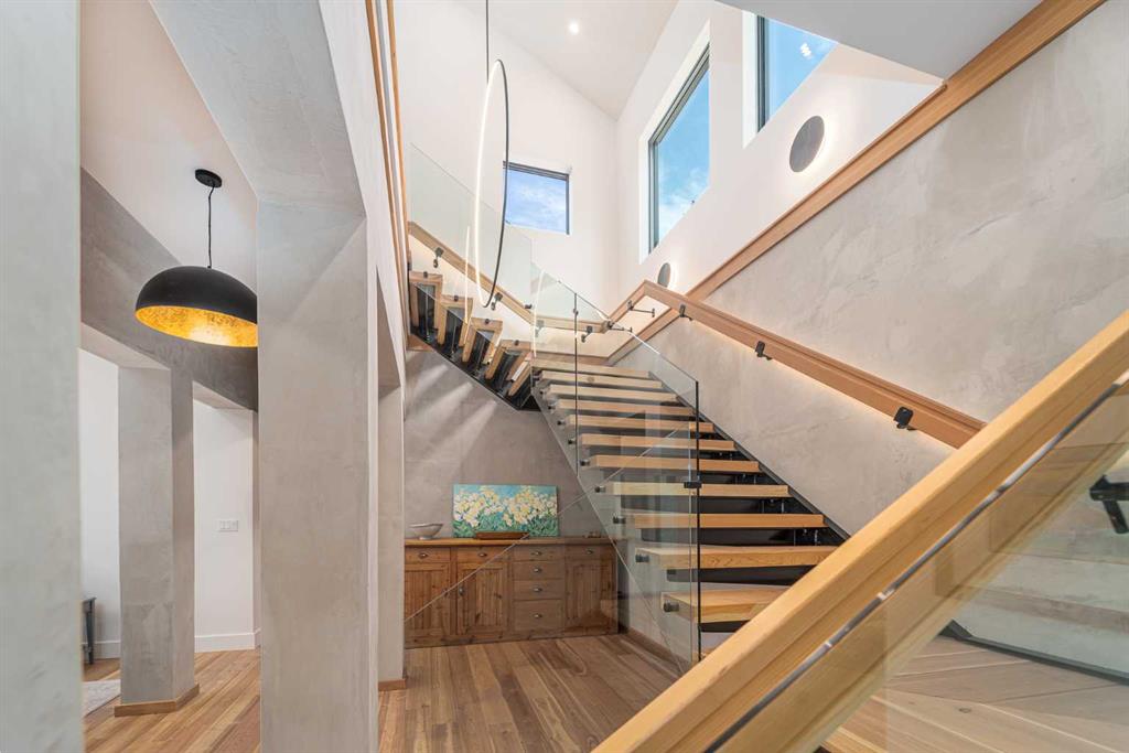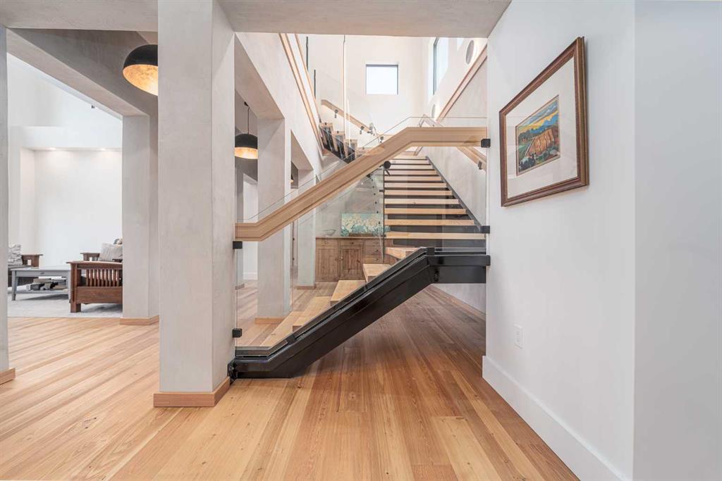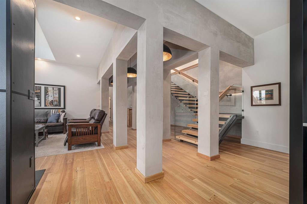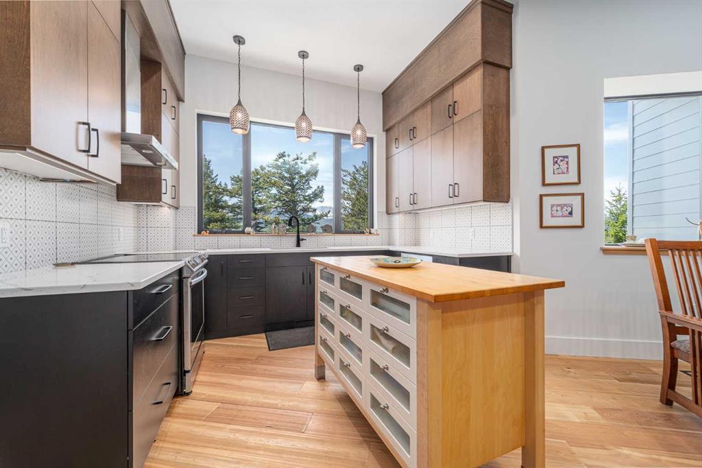 A Modern Masterpiece in the Heart of the Rockies. Set within the untouched beauty of Coleman, Alberta, this extraordinary custom-built residence redefines mountain luxury. Spanning over 3,600 square feet, this architectural showpiece is arguably the most modern and uniquely crafted home in the entire Crowsnest Pass. Designed for those who appreciate refined craftsmanship, natural serenity, and contemporary elegance, every detail of this home speaks to high design and timeless sophistication. The main level welcomes you with an awe-inspiring open-to-above living room, anchored by a striking two-sided wood-burning fireplace and framed by dual sliding glass doors that open onto one of four outdoor living spaces. Just beyond, a hallway and staircase command attention—straight out of an architectural design magazine. Venetian plaster walls, a sculptural open-tread staircase, glass railings, and softly illuminated lighting create a breathtaking transition between levels. The open-concept kitchen and dining area is flooded with natural light and overlooks your private, tree-lined acreage. The kitchen is a chef’s dream, adorned with luxurious quartz countertops, a custom tile backsplash, and an intuitive layout that combines beauty and functionality. Adjacent is access to your oversized heated garage, complete with soaring ceilings, built-in storage, and even a custom dog wash station. The main level also hosts the sumptuous primary suite—generously sized and elegantly appointed with its own secluded patio for morning coffee. The spa-inspired ensuite features dual vanities, a walk-in glass shower, a private water closet, and a spacious walk-in wardrobe, offering both comfort and tranquility. Two additional bedrooms are located on this level—one with its own private four-piece ensuite—alongside a beautifully designed main-floor laundry room. Upstairs, a light-filled lounge area overlooks the living room below and creates a stunning second-level retreat, perfect for relaxing or entertaining. A quiet office and elegant two-piece powder room are tucked thoughtfully into this space. From this level, you’ll access two distinct outdoor entertaining terraces. The first—a covered deck with a second wood-burning fireplace—boasts panoramic views of the Crowsnest Pass. It also leads to a tucked-away second office or potential guest bedroom, offering rare peace and privacy. The second outdoor terrace is located at the rear of the home, perfectly sheltered from the elements and opening onto a private trail that leads to your very own lookout—ideal for secluded camping or evening campfires. Completing this exceptional estate is a beautifully finished, insulated, and heated guest house at the front of the property—perfect for guests' hobbies or additional storage.