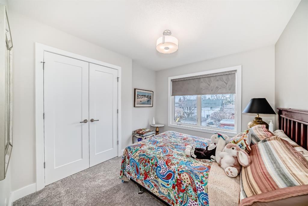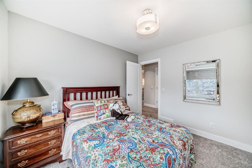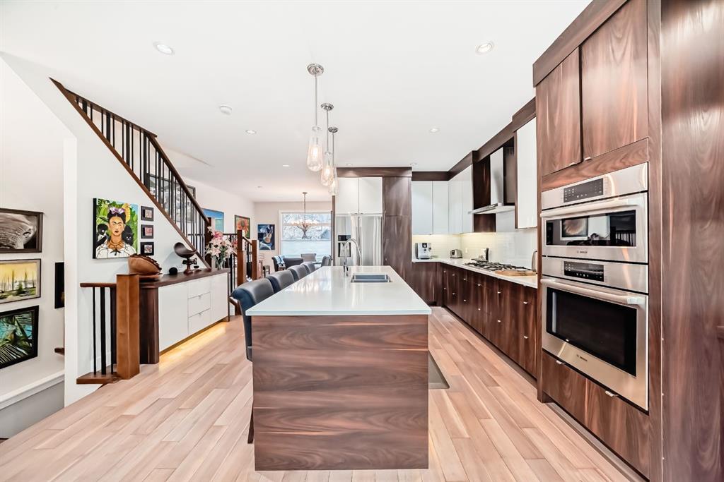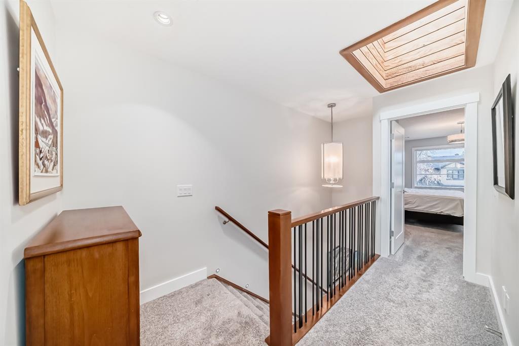 Welcome to this stunning four-bedroom, 3.5-bathroom home in the sought-after inner-city community of Spruce Cliff. Perfectly positioned mid-block on a quiet street, this beautifully designed property offers a sunny south-facing backyard and is just a 10-minute commute to downtown, with easy access to Westbrook amenities, the C-Train, shopping, and nearby golf courses. Offering over 2,300 sq. ft. of developed living space, the open-concept main floor features 9-foot ceilings, wide-plank hardwood flooring, and an abundance of natural light from large windows. The modern kitchen is a true showpiece, complete with a large quartz island, floor-to-ceiling cabinetry, and stainless steel appliances. The inviting great room includes custom built-ins and a gas fireplace, while the functional mudroom leads out to a spacious deck—perfect for entertaining. Upstairs, the luxurious primary suite offers a spa-inspired ensuite with a stunning walk-in shower (roughed-in for steam), a soaker tub, and double vanity. Heated floors are featured in all full bathrooms, adding an extra touch of comfort. The upper level also includes a beautiful skylight that enhances the bright and airy feel. The fully finished basement is designed for both relaxation and entertainment, featuring in-floor heating, a built-in wet bar, roughed in home theatre system, a large bedroom, and an additional four-piece bathroom. Additional highlights include two decks, a double detached garage, roughed-in A/C, landscaped yard, and exceptional curb appeal. Ideally located near Edworthy Park with access to scenic walking and biking paths, this home offers the perfect blend of modern luxury and inner-city convenience.