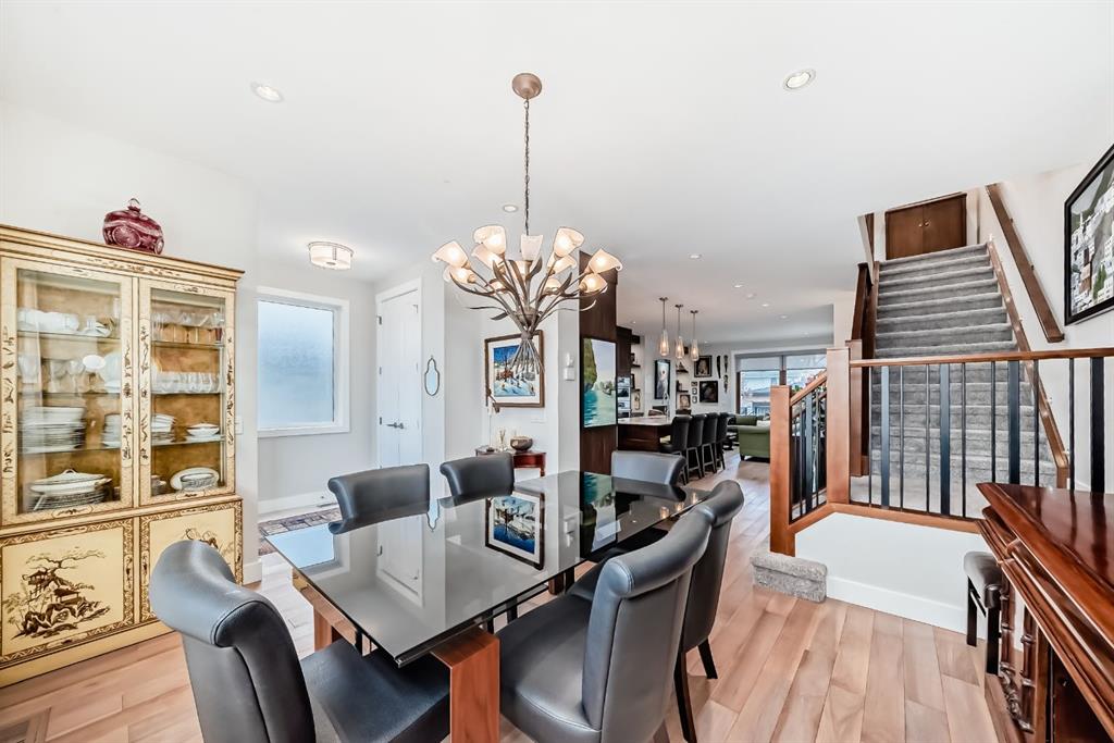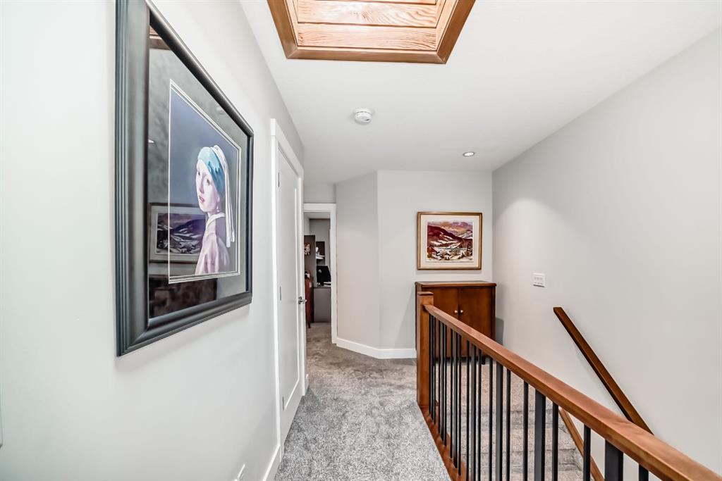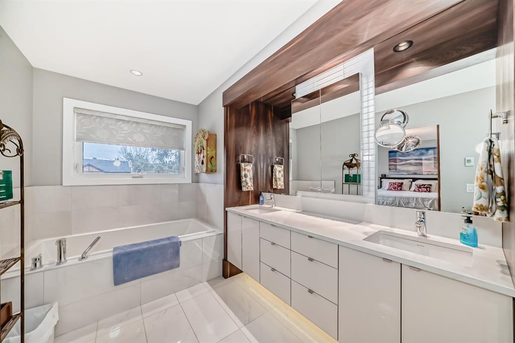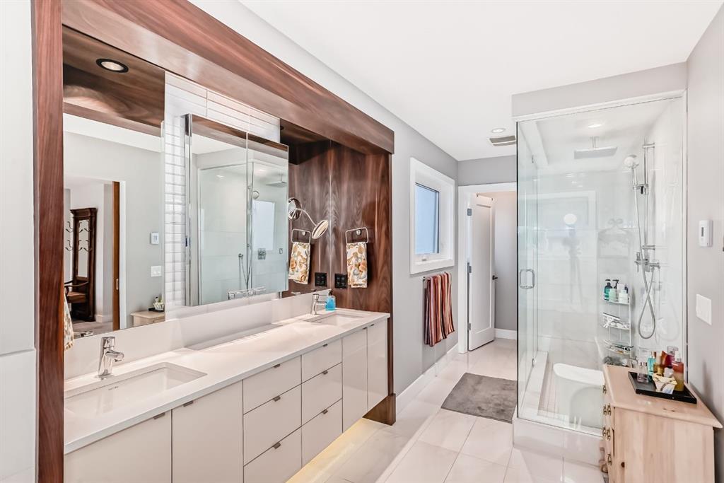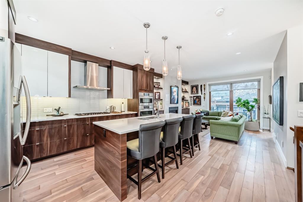 Welcome to this stunning four-bedroom, 3.5-bathroom home in the sought-after inner-city community of Spruce Cliff. Perfectly positioned mid-block on a quiet street, this beautifully designed property offers a sunny south-facing backyard and is just a 10-minute commute to downtown, with easy access to Westbrook amenities, the C-Train, shopping, and nearby golf courses. Offering over 2,300 sq. ft. of developed living space, the open-concept main floor features 9-foot ceilings, wide-plank hardwood flooring, and an abundance of natural light from large windows. The modern kitchen is a true showpiece, complete with a large quartz island, floor-to-ceiling cabinetry, and stainless steel appliances. The inviting great room includes custom built-ins and a gas fireplace, while the functional mudroom leads out to a spacious deck—perfect for entertaining. Upstairs, the luxurious primary suite offers a spa-inspired ensuite with a stunning walk-in shower (roughed-in for steam), a soaker tub, and double vanity. Heated floors are featured in all full bathrooms, adding an extra touch of comfort. The upper level also includes a beautiful skylight that enhances the bright and airy feel. The fully finished basement is designed for both relaxation and entertainment, featuring in-floor heating, a built-in wet bar, roughed in home theatre system, a large bedroom, and an additional four-piece bathroom. Additional highlights include two decks, a double detached garage, roughed-in A/C, landscaped yard, and exceptional curb appeal. Ideally located near Edworthy Park with access to scenic walking and biking paths, this home offers the perfect blend of modern luxury and inner-city convenience.