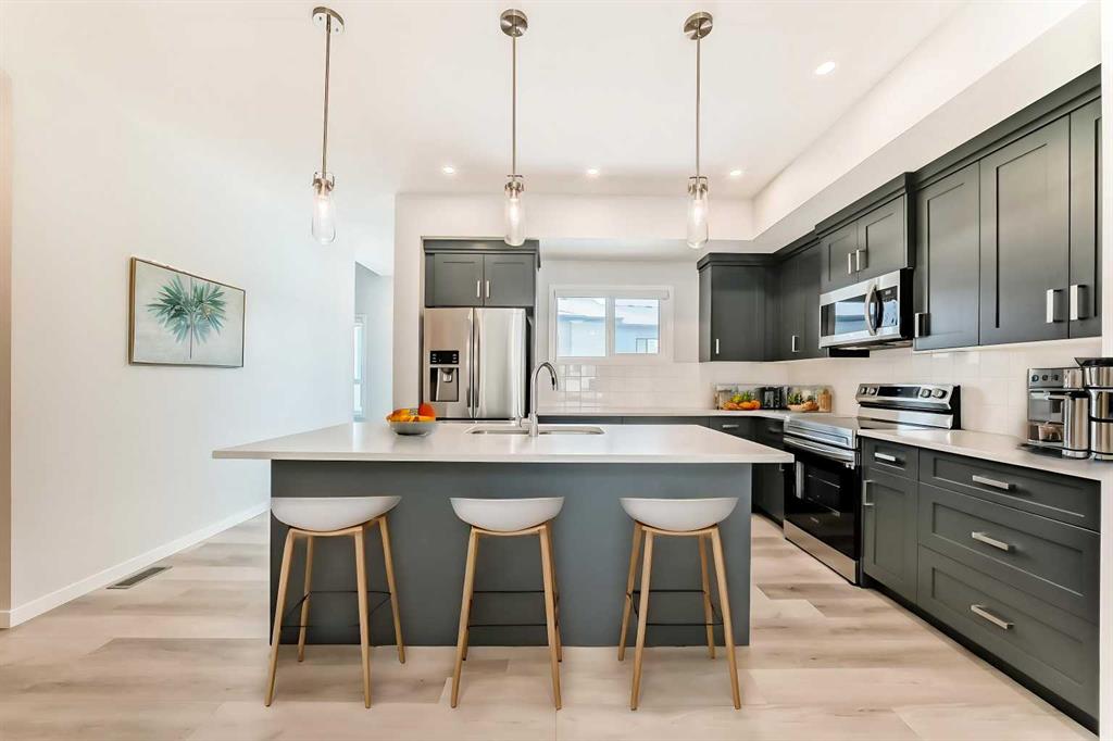 Fronting onto a beautifully landscaped courtyard, this exceptional 3-bedroom + 2-den townhome by award winning Cedarglen Living offers a refined blend of modern design, premium upgrades and effortless everyday living. Perfectly positioned within a pet friendly complex surrounded by tranquil ponds and scenic pathways, this home delivers a rare balance of serenity and connectivity. From the moment you enter, you’ll appreciate the thoughtful design and upgraded finishes throughout. The entry level features a versatile flex space with upgraded LVP flooring. Ideal for a private office, fitness area or stylish lounge alongside an insulated double attached garage complete with a water bib for added convenience. The main floor is a showpiece of contemporary living, flooded with natural light. Designed for both entertaining and daily comfort, the open concept layout seamlessly connects the living and dining areas to a beautifully upgraded chef inspired kitchen. Here, you’ll find quartz countertops, full height cabinetry, a premium stainless steel appliance package and a timeless tile backsplash. Elevated further by thoughtful enhancements including pot and pan drawers, a built in recycling centre and expanded storage, the large central island becomes the true heart of the home. Perfect for gathering and hosting. Step out onto the glass railed balcony with a gas line and enjoy peaceful courtyard views. An ideal setting for summer evenings. A bright, fully enclosed den offers a quiet and sophisticated workspace, complemented by a sleek powder room and custom roller blinds that add both style and function. Upstairs, retreat to a serene primary suite designed with comfort in mind, featuring a spacious walk in closet and a spa inspired ensuite complete with dual vanities, quartz surfaces, enhanced cabinetry with additional drawers and an oversized shower with full height tile for a polished, upscale finish. Two additional generously sized bedrooms, a full bathroom and convenient upper laundry complete the level. This home is further enhanced by over $15,000 in builder upgrades, including upgraded stone throughout, cabinetry enhancements, designer finishes, and A/C offering both immediate comfort and long term value. Residents enjoy exclusive access to a private clubhouse featuring sports courts, a spray park, skating rink, and more, while being just minutes from Fish Creek Park, Seton’s vibrant amenities, restaurants, shopping, and the world class YMCA. Move in ready and meticulously upgraded, this is an elevated townhome offering where design, lifestyle and location come together seamlessly.