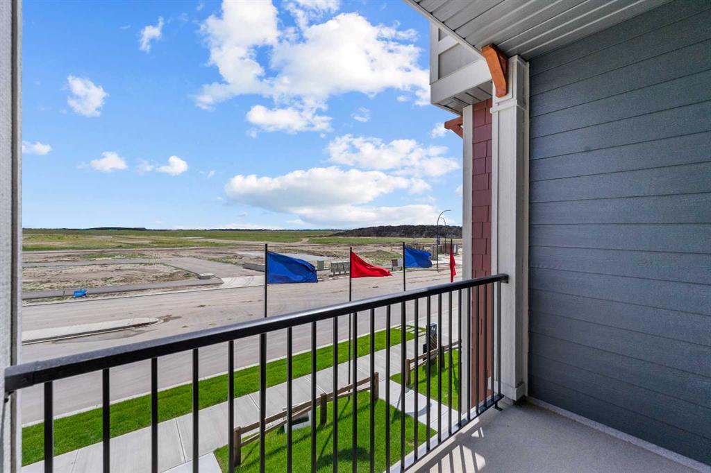 ** Brand New No Condo Fee Townhome Built by Genesis Homes ** Theo Model | Ready for Summer 2026 | 3 Beds | 2.5 Baths | Double Attached Garage | Main Level Den/Office | Incredible Open Floor Plan | Top of the Line Finishes | Quartz Countertops | Designer Curated Backsplash | Full Height Cabinets | Builder Package Stainless Steel Appliances | Gas Line to Range | Walk-in Pantry | Wide Plank LVP Flooring | Sizeable Bedrooms | Upper Level Hall Laundry | Smart Automated Home | Balcony | BBQ Gas Line | Double Attached Garage | James Hardie Siding. This stunning Theo model by Genesis boasts 1,687 SqFt, 3 bedrooms, 2.5 bathrooms and a spacious open floor plan layout that’s perfect for families, professionals, or anyone who loves extra space. The front door opens to a main level foyer with closet space and a flex den. With large windows and high ceilings this space is space has the versatility to be an office space with a peaceful retreat for work or creativity. Head upstairs to the 2nd level to a grand floor plan both open and functional. The kitchen is outfitted with sparkling quartz countertops, ample cabinet storage, a gas line and a stainless steel builders appliance package. The centre island in the kitchen is equipped with a barstool seating area making it the perfect space to enjoy small meals and socialize while you cook. The walk-in pantry is a bonus to your dry good storage. The dining room paired with the kitchen makes for an easy stove to table transition. The spacious living room is the perfect area to unwind with your family in the evenings and is ideal for hosting guests. Just off the living room is a door to your private balcony with a gas BBQ line for those summer cook outs! The uppermost level is paired with 3 bedrooms, 2 full bathrooms and hall laundry. The primary bedroom is a personal retreat with a deep walk-in closet and private 4pc ensuite bath with a deep tub/shower combo. Bedrooms 2 & 3 share the main 4pc bath with a single vanity and tub/shower combo. The upper level laundry is a treat as its located near all the bedrooms. The double attached garage secures you 2 year round secured parking and space for seasonal storage. Located just moments from essential amenities and nestled close to a picturesque park, you’ll enjoy easy access to shops, dining, and outdoor activities. Take in breathtaking mountain views and sunsets as you stroll by the serene pond. Hurry and book your showing at this gorgeous Genesis home today! Genesis Builders Group follows the First-Time Home Buyer GST/HST Rebate to eliminate the 5% GST on qualifying new homes (up to $1 million) for qualifying first time home buyers.*Photos & iguide are of 153 Wild Rose Way, THEO Model. Colors and finishes may differ at the time of completion, discuss with Builder Directly for final pallets.
