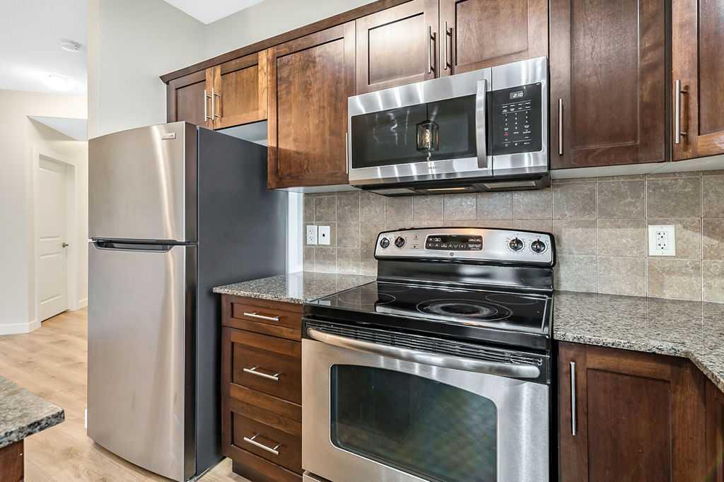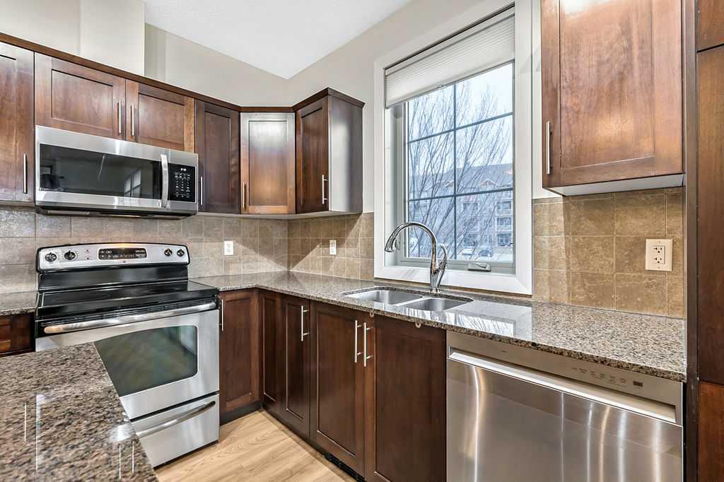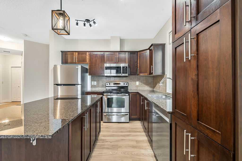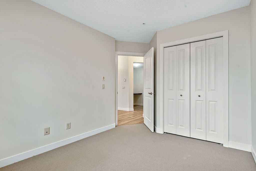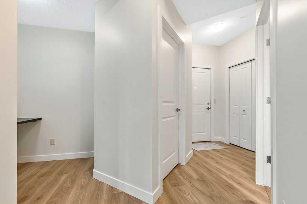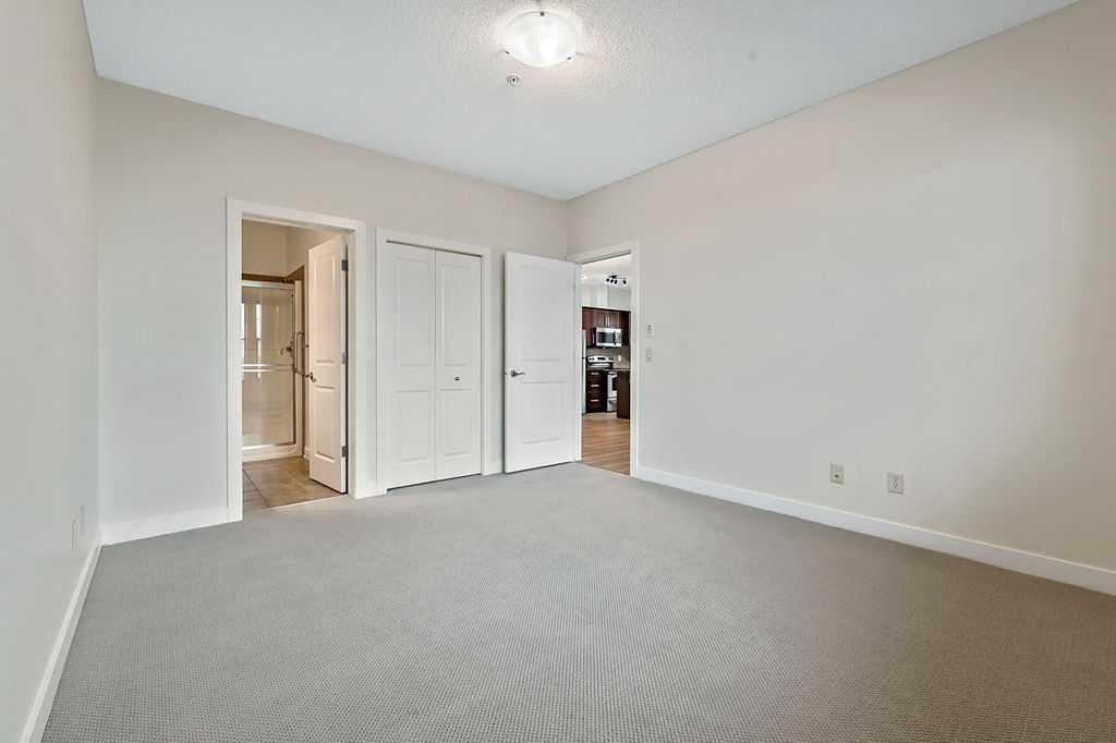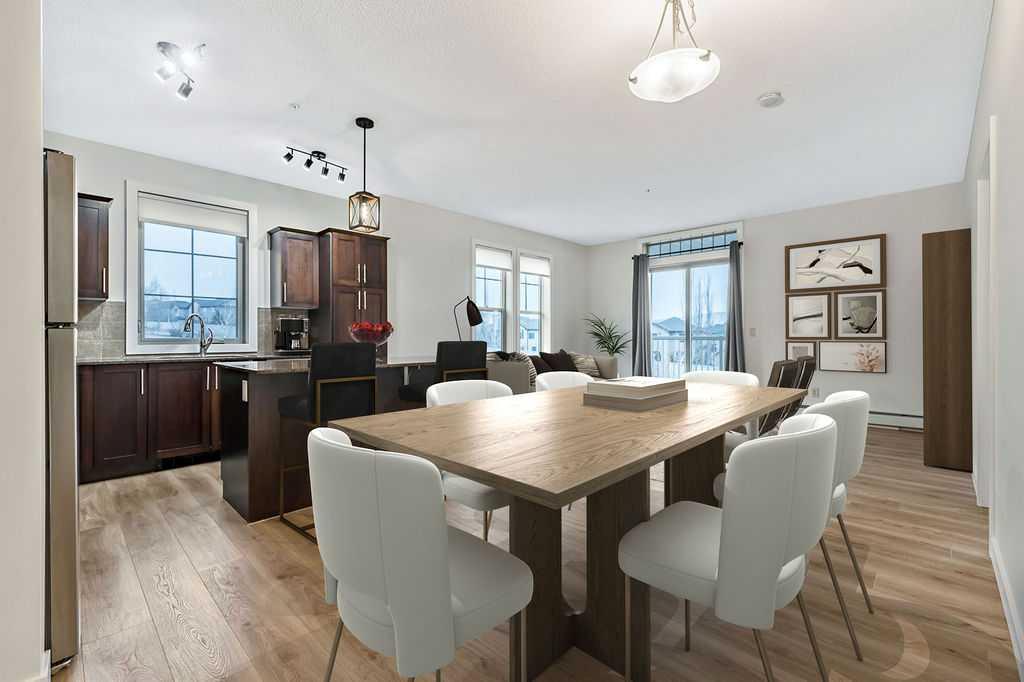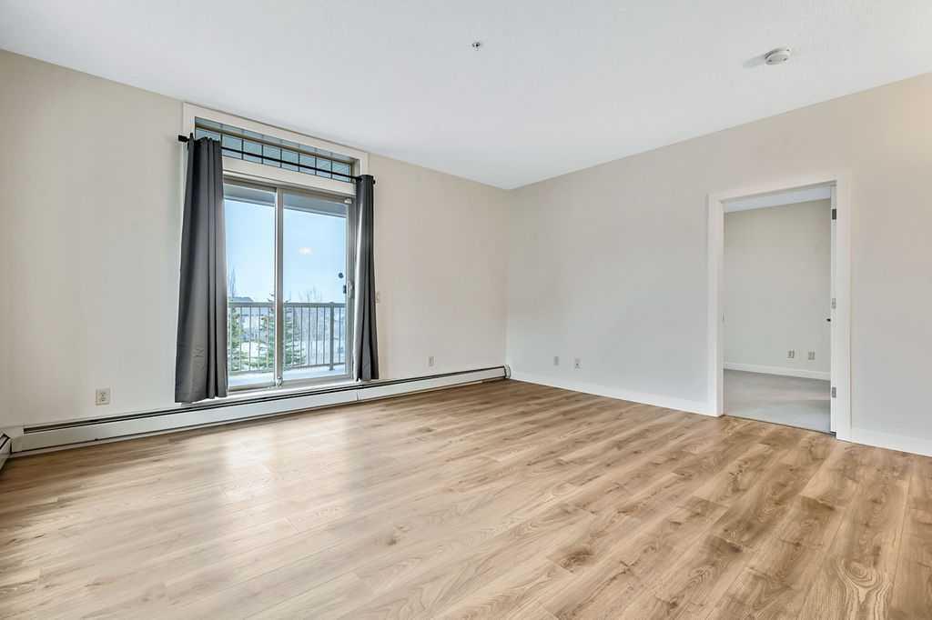 Bright corner unit at 'Alora at Sunset Ridge' — rare and ready to enjoy! This recently updated 2 bedroom + den condo is situated at the end of the floor, next to the stairwell, so it actually has no common walls! This lovely unit offers 2 full baths, in-suite laundry, brand new laminate floors, fresh paint throughout and a recently replaced dishwasher. The open-plan living area is bright and spacious, filled with natural light thanks to the corner placement, and flows seamlessly to a very large southwest facing deck with stunning mountain views on a clear day — perfect for morning coffee or evening sunsets. The primary bedroom includes a walk-in closet and private ensuite for added comfort and convenience. The second bedroom is ideally situated on the opposite side of the unit, next to the second bathroom. You’ll also appreciate two parking stalls and a large storage locker. Alora is well managed and maintained, with an active social club, fitness facility, and a guest suite for visiting family and friends. Cochrane is a vibrant, growing centre that still feels like small-town living — close-knit, friendly, and full of amenities. If you’re looking for a bright, move-in ready home with great facilities and spectacular views, this one’s worth a look — contact your Realtor to arrange a showing.