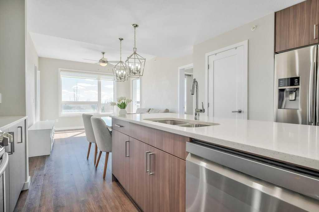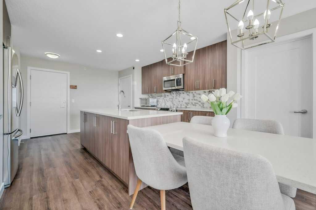 Welcome to the top tier of city living with this CORNER UNIT listing at Vivace! This beautifully designed condo is ideal for anyone aspiring to dwell on the TOP FLOOR with unbeatable views, offering a bright and airy east-facing exposure. Step inside to discover an open floor plan accentuated by high-end laminate flooring that adds a touch of elegance to the living areas. The kitchen is a culinary dream featuring rich, dark cabinetry paired with light-coloured countertops and a sizable island that seamlessly incorporates a built-in quartz dining bar – perfect for serving up morning pancakes or evening cocktails. The condo comprises two spacious bedrooms updated with new luxury vinyl plank flooring, offering vast space for relaxation and rejuvenation. The primary bedroom not only provides ample room but also boasts an ensuite designed for ultimate pampering, equipped with an expansive shower adorned with exquisite tile work and complementary quartz counters. Elevate your morning routine on one of the two balconies, where breathtaking sunrise views establish an enchanting backdrop for your early coffee moments. These balconies are sanctuaries for either embracing the calm morning rays or enjoying a tranquil book-reading session as dusk falls, each offering a serene green space outlook. The convenience doesn’t stop there; the unit includes a tandem parking stall for two vehicles and a separate storage locker to keep your space organized and clutter-free. Situated close to premier shopping centers, frequent transit options, and the newly inaugurated segment of the ring road, this condo provides a seamless and efficient lifestyle. Whether you are a professional desiring a peaceful yet connected habitat, or a small family in pursuit of comfort and convenience, this property meets all your needs. Don’t let this unique opportunity slip by to own this impeccable condo and elevate your lifestyle. It's more than a mere residence; it’s a step up in life. Call today for more information!!