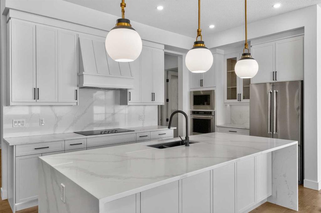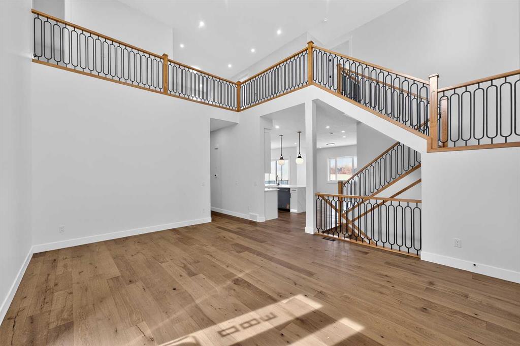 This exceptional, newly constructed two-storey residence is located in the prestigious Waterford Estates community in Chestermere, offering thoughtfully designed living space that perfectly balances luxury, functionality, and modern elegance. Ideal for families seeking both comfort and sophistication, this home features five generously sized bedrooms and four full bathrooms, all finished with high-quality materials and attention to detail. The main floor is designed with an open-concept layout and showcases impressive proportions throughout. A spacious family room and an expansive formal living room provide multiple areas for relaxation and entertaining, while the dining area seamlessly connects to the well-appointed kitchen. The chef-inspired kitchen is complemented by a dedicated servery, offering added convenience for hosting and everyday use. A main-floor bedroom with its own private 3-piece ensuite enhances flexibility for guests or multi-generational living, while an additional 2-piece bathroom completes the level. The oversized garage ensures ample space for vehicles and storage. Upstairs, the home continues to impress with a thoughtfully planned layout featuring four additional bedrooms. The primary suite serves as a private retreat, complete with a luxurious 5-piece ensuite. Additional bedrooms are generously sized and well-served by a combination of private and shared bathrooms, including a 3-piece ensuite and a 4-piece bath. A versatile den provides the perfect space for a home office, study, or lounge area, while the dedicated laundry room adds everyday practicality. The expansive unfinished basement offers incredible potential for future development, allowing homeowners to customize the space to suit their lifestyle—whether as additional living space, a recreation area, or a home gym. Situated on a spacious lot, the property provides ample outdoor space for gardening, recreation, or relaxation. Located in a highly desirable and family-friendly neighborhood, residents enjoy convenient access to schools, shopping, and recreational amenities. This home represents a rare opportunity to own a refined and spacious property in one of Chestermere’s most sought-after communities.