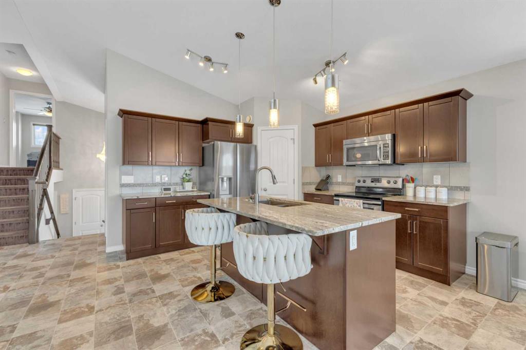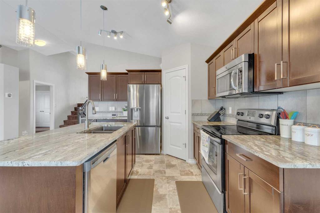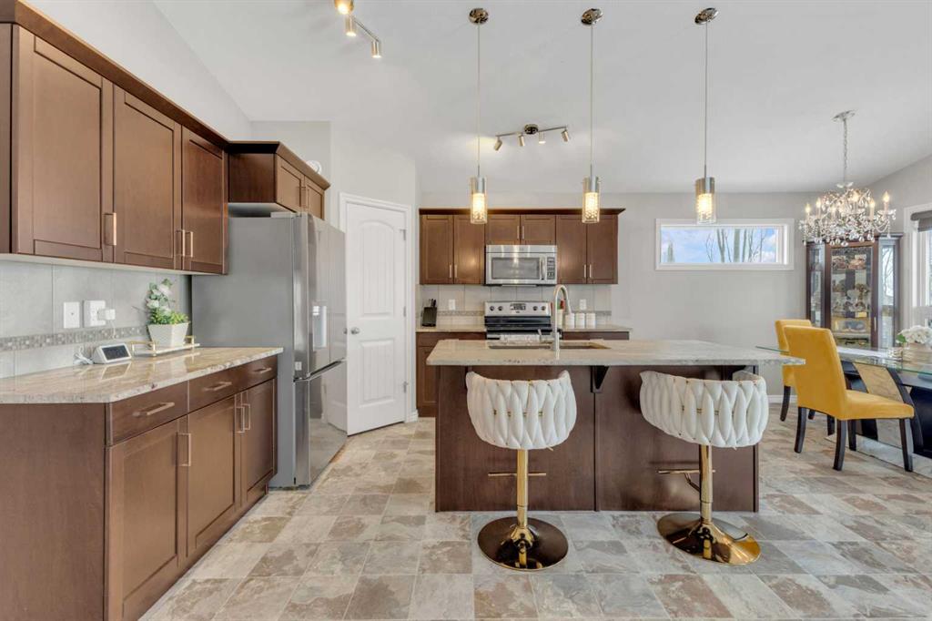 Located in Elizabeth Park with easy access to Highway 12 and 2A, this home offers a practical layout and a good amount of space for a growing family. Inside, the main level is bright and functional. The kitchen features granite countertops, a corner pantry, and oak cabinetry, with a large island that ties the space together. It opens into the living room where you’ve got a gas fireplace and plenty of natural light coming through the windows. There are also two bedrooms and a full bathroom on this level. Upstairs is the primary bedroom with a walk-in closet and a 3-piece ensuite, giving it some separation from the rest of the home. The basement is fully finished with a large family room, wet bar, two additional bedrooms, and in-floor heating. With 9-foot ceilings and larger windows, it feels open and usable. Outside, the yard is fully fenced and landscaped, with a 20x20 concrete pad that works well for a number of uses, including a great spot for the kids to play basketball. The double garage is insulated and also has a side entrance. This is a solid, well-kept home in a good area with a layout that makes sense for day-to-day living.