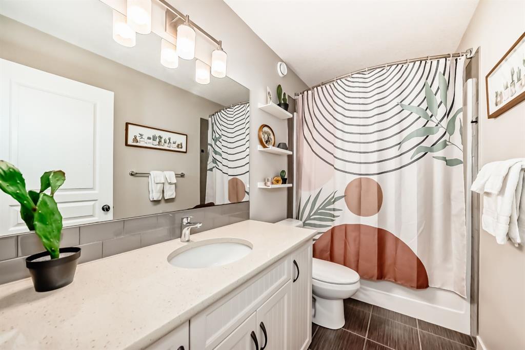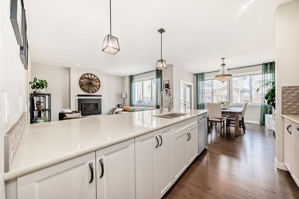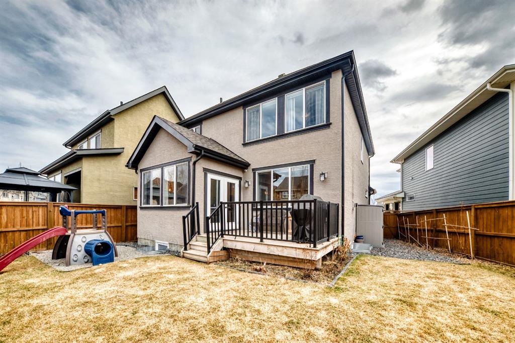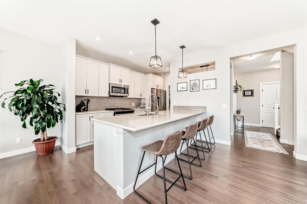 Welcome to this meticulously maintained, like-new home in the highly sought-after lake community of Mahogany. Offering exceptional comfort, thoughtful upgrades, and a functional family-friendly layout, this home is move-in ready and sure to impress. The main floor showcases a bright and airy open-concept design, enhanced by extra windows in the dining nook that flood the space with natural light. The elegant kitchen features quartz countertops, off-white shaker cabinetry, an upgraded backsplash, and stainless steel appliances including a gas stove—perfect for both everyday living and entertaining. The kitchen also features an 8-stage filtration reverse osmosis Waterdrop undersink filter.The kitchen also features a new (2026) custom-built walk-through butler's pantry. A brand new (2026) custom mudroom was also completed to provide even more function and organization for the family. Just off the kitchen, a versatile office nook provides the ideal space for working from home, helping with homework, or staying organized while keeping an eye on the family room. Upgraded hardwood flooring adds warmth and sophistication throughout the main level. Upstairs, you’ll find a thoughtfully designed layout with a spacious bonus room separating the primary retreat from the two additional bedrooms—offering both privacy and functionality. The bonus room has two pocket doors which allow the space to be used as a guest space. The primary suite features a luxurious 5-piece ensuite, while the convenient upper-floor laundry room includes extra storage space. The brand new, professionally finished basement expands your living space with a large recreation area, an additional bedroom with a large walk-in closet, a stylish 3-piece bathroom, and a roughed-in wet bar—perfect for future entertaining or multi-generational living. Additional features include central air conditioning for year-round comfort, upgraded lighting, a water softener, HRV system, and a built-in sprinkler system for easy lawn care. The yard also includes a large shed convenient for all your landscaping needs. Step outside to enjoy a generously sized yard and a spacious deck—ideal for summer gatherings. Your backyard retreat also features 8 columnar birch trees, a Japanese lilac tree, a hot wing maple tree, 2 large huckleberry bushes and multiple white and red raspberry bushes. Location is everything, and this home delivers. Enjoy being just a short walk to multiple playgrounds (2 minutes to the Red Playground, 4 minutes to the Blue Playground), scenic ponds, and pathways. Families will appreciate the safe, convenient access to nearby schools—just a 15-minute walk or 5-minute bike ride with no road crossings. The Mahogany Lake and Beach Club are only a 10-minute walk away, offering year-round activities for all ages. This is your opportunity to enjoy the best of lake community living—don’t miss it!