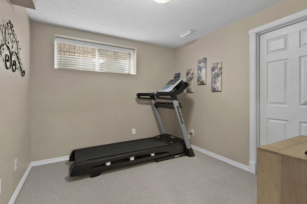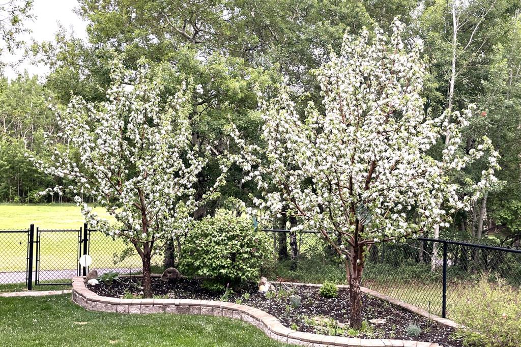 There's a rhythm to this home that reveals itself through the back windows - the kids running through the gate to the park, unhurried evening walks, and in winter, a skating rink the neighbours maintain themselves. The original owners raised their children here, and they'll tell you the greenspace wasn't an amenity. It was part of daily life. Siding and backing directly onto the park and playground, this setting is increasingly hard to find. The yard is well tended, complete with an underground irrigation system and mature apple trees that produce enough for homemade pies. Inside, the home has been thoughtfully designed and well cared for. A main floor den sits behind double French doors - a quiet workspace or flex room with windows overlooking the front yard. The kitchen features maple cabinetry, granite counters, a generous island, and a most of the appliances, including a five-burner gas range, are newer. The adjacent dining nook captures the view of the green-space, and the family room opens off the kitchen, wrapped in big windows. Hardwood flooring runs throughout the main level. Upstairs, the layout is well considered: the bonus room, anchored by a fireplace, is set apart from the bedrooms by the staircase - keeping the sound of movie nights at a comfortable distance from sleeping little ones. Three bedrooms share this floor, including a spacious primary with lovely views and an ensuite featuring dual sinks, an oval jetted tub, and a separate shower. The fully developed lower level adds a large rec and games room ready to become a theatre space, a fourth bedroom with walk-in closet, a full bathroom, and a generous storage room. Additional features include central air conditioning, a finished and heated garage, a newer hot water tank, and newer hail-proof asphalt shingles. First-time to market from the original owners, and ready for its next family.