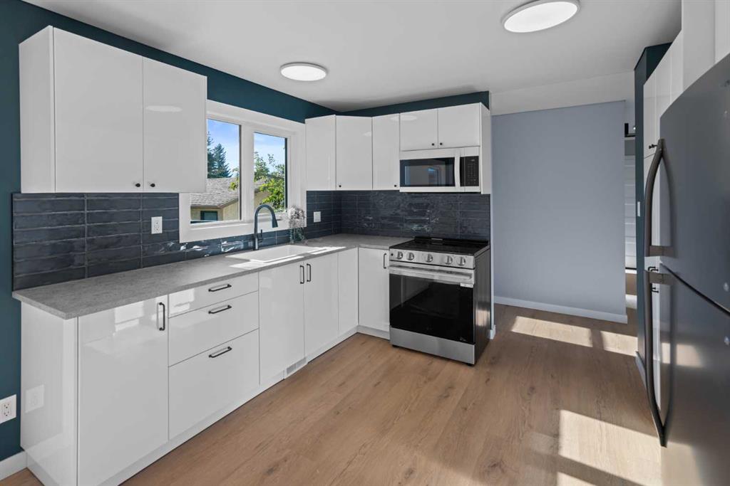Feels like brand new! If you are looking for an extensively upgraded, move-in-ready home on an oversized (beautifully landscaped!!) lot, in an awesome location - look no further. This beautiful four-bedroom home feels like a new build, some of the extensive upgrade include vinyl ceiling, new windows, floors, kitchen, furnace, upgraded bathrooms, paint, appliances, new deck with Dec-tec vinyl, all new electrical outlets and substantial landscaping including new 6-foot fence, walkways and new sod. The main floor of the home features are very private concept kitchen/dining area and a beautiful new kitchen, as well as two good size bedrooms and a beautiful four-piece bathroom. Downstairs you will find two large bedrooms, a three-piece bathroom and beautiful rec room with bar area. The very private and spacious backyard offers a huge brand-new deck, new 6-foot fence, lots of mature trees, an oversized single car garage and additional parking. This one really offers the full package. And all this in a Sought-after very quiet neighborhood close to schools.