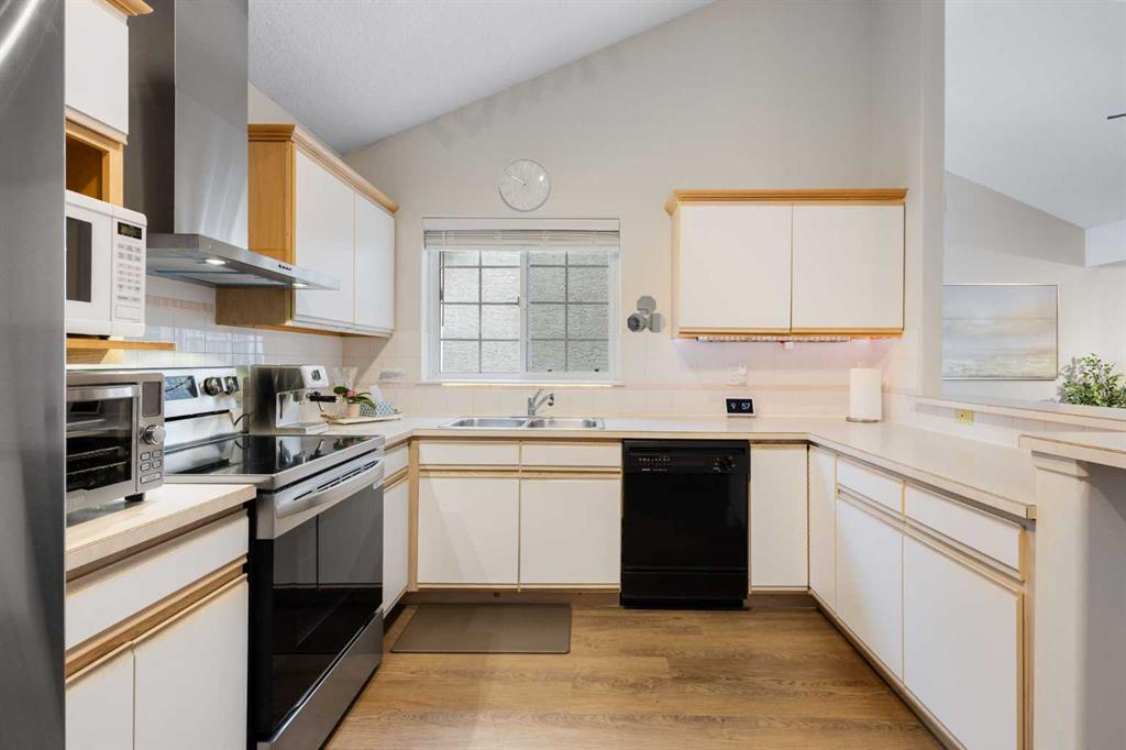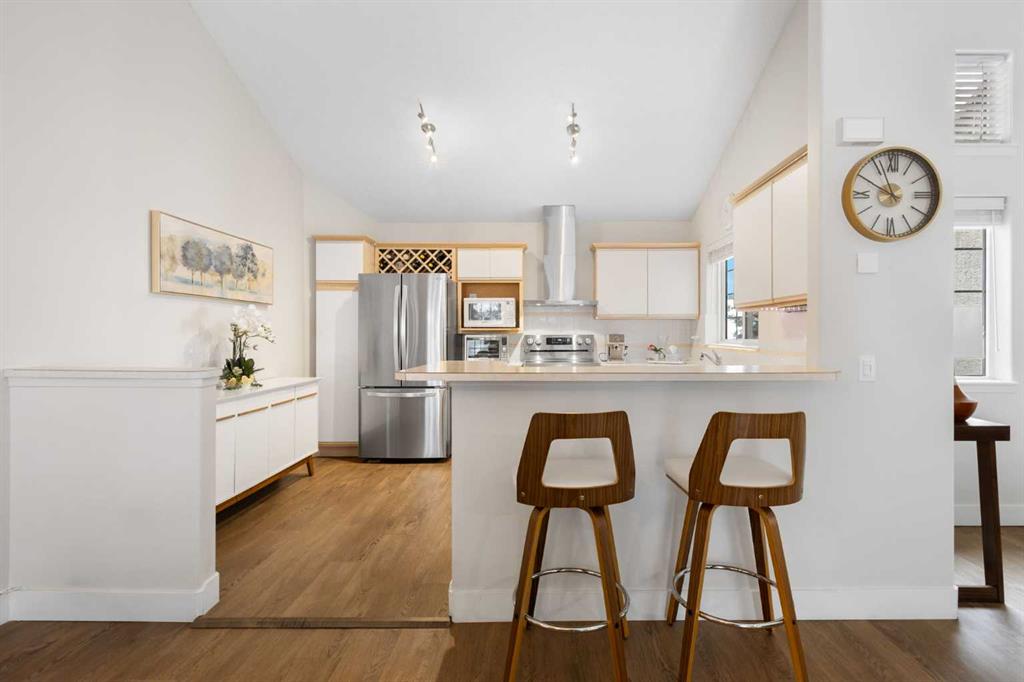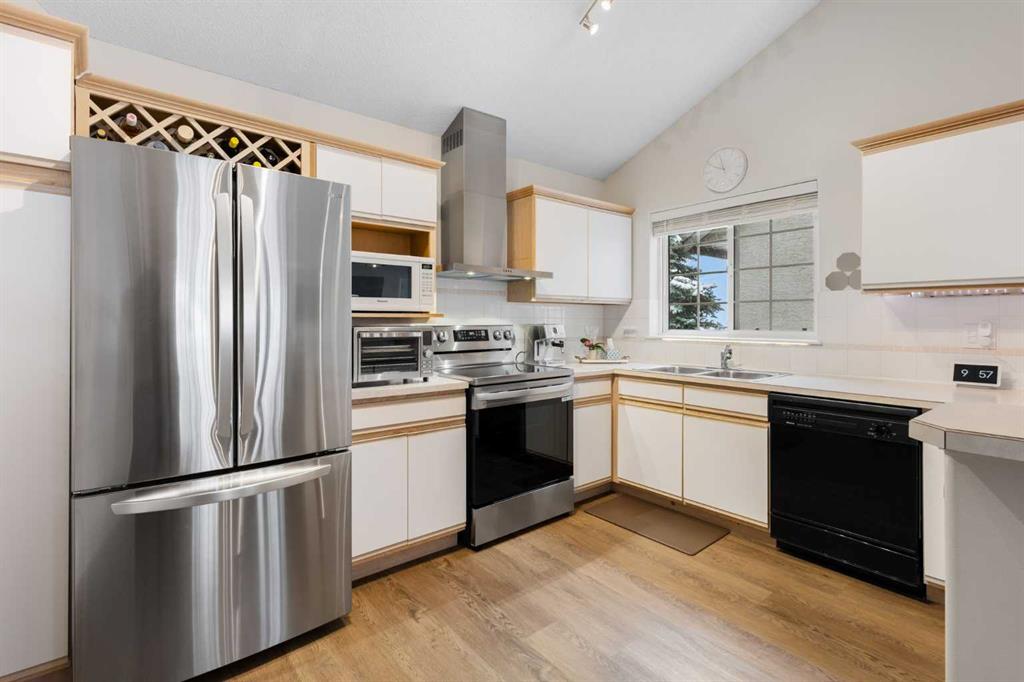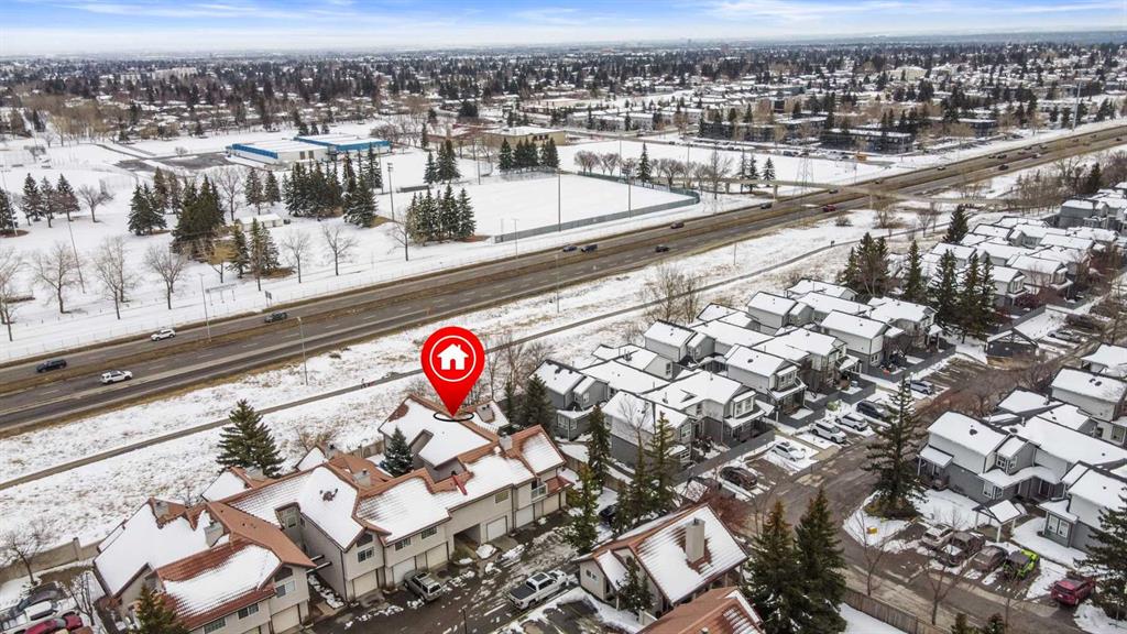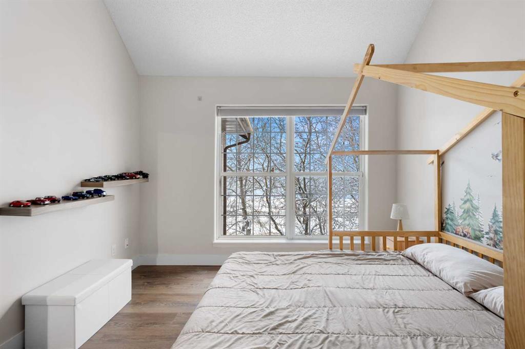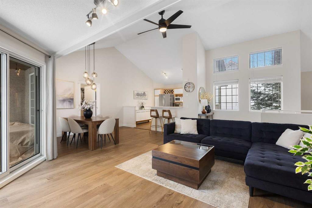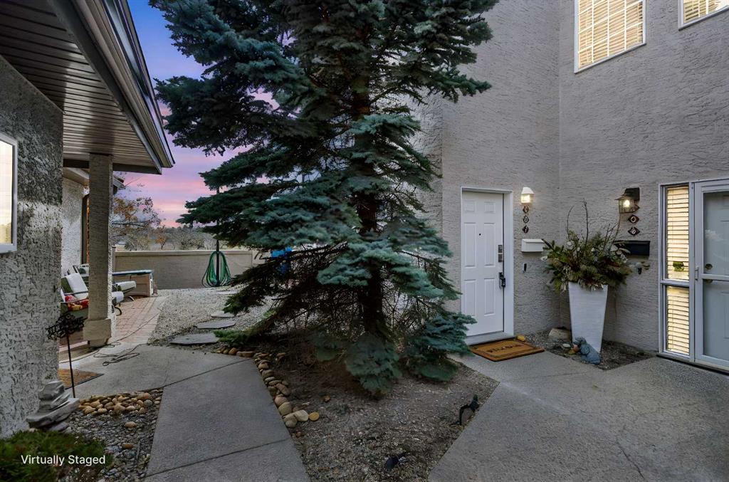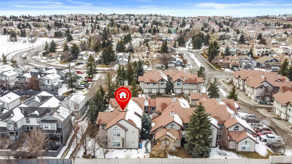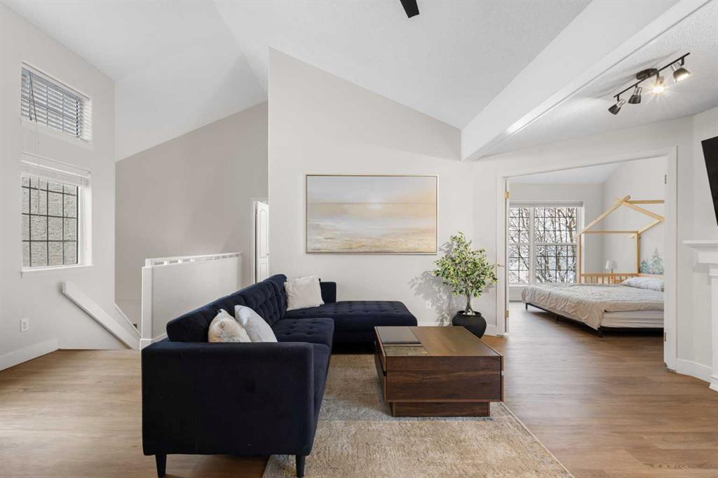 Wake up in Cactus Ridge and the first thing you notice is the light. Vaulted ceilings and oversized windows pull sun straight through the main floor — the kind of quiet, bright space that makes a Saturday morning coffee last twice as long. This upper-level stacked townhouse in Signal Hill overlooks Optimistic Park instead of a neighbour's window. That view is one of the reasons the current owners bought it. A wood-burning fireplace anchors the living room, and the whole space opens to a private balcony with a 25 sq ft storage room tucked off to the side. 1,221 sq ft, two bedrooms, two full bathrooms, and a floor plan that separates the primary from the second bed — the setup works for a dedicated home office, a guest room, or in-laws who stay a weekend. The primary has a 4-piece ensuite, walk-in closet, and a replaced bedroom window. The second bedroom sits across the plan with its own 3-piece bath. Underfloor heating runs through the entire home and into the attached garage. Warm floors from November through April, a low-dust, low-allergen environment, and a car you don't have to scrape at 7 a.m. in February. Recent updates from the sellers: full kitchen appliance package, washer and dryer, keypad front entry, security cameras at the door, balcony, and garage, a camera doorbell, new faucets and showerheads in both baths, LED stair lighting, digital thermostat, and new blinds on every window. Both bedroom windows have also been replaced. The home is pet-free and smoke-free — something allergy-sensitive buyers notice the moment they walk in. Outside the door: Sunterra Market, Starbucks, West Market Square, medical, dental, pharmacies, and the Bow River pathways are all inside a five-minute walk. Signal Hill and West Hills Shopping Centres are seven minutes by car. The complex has a private clubhouse residents actually use for gatherings, plus assigned parking directly beside the unit and ample visitor stalls. Move-in ready, with all furniture and décor available for separate purchase. Book a private showing or catch the open house.