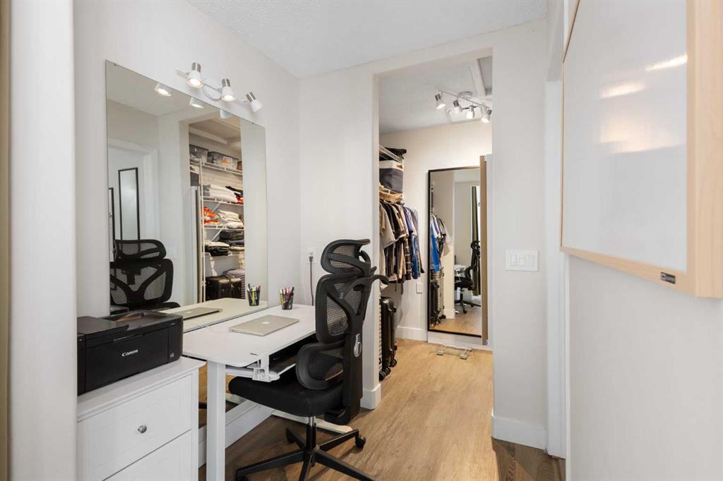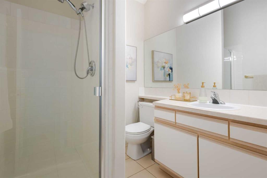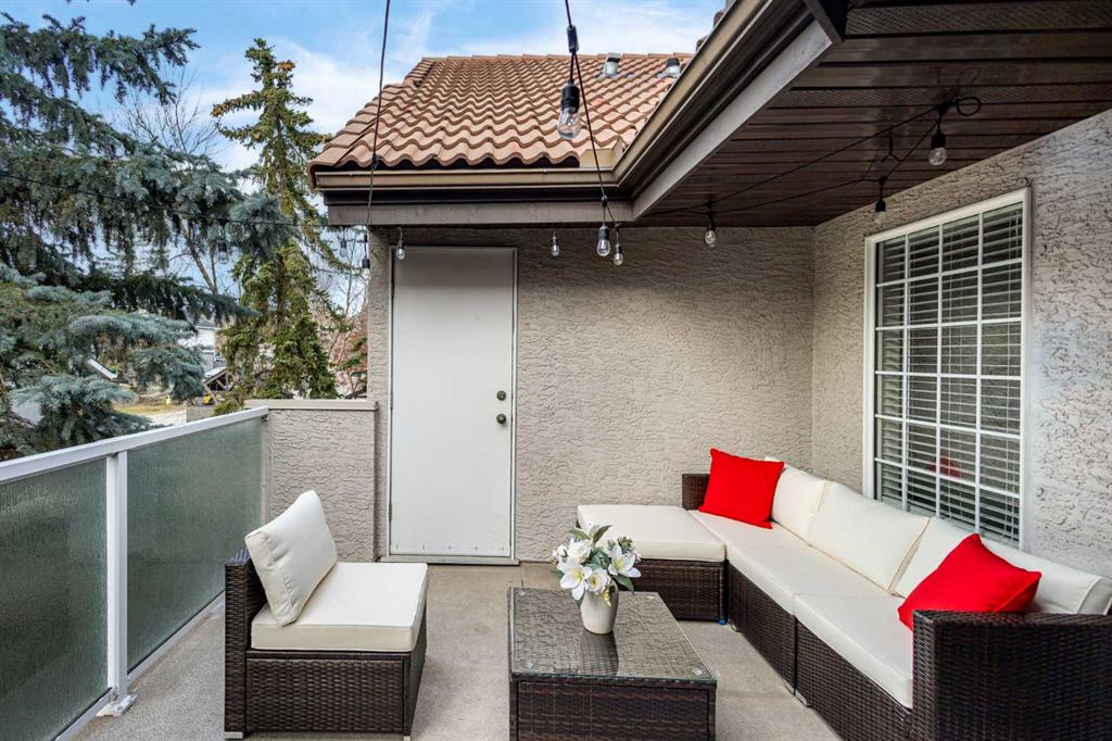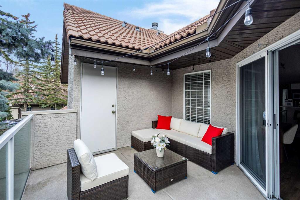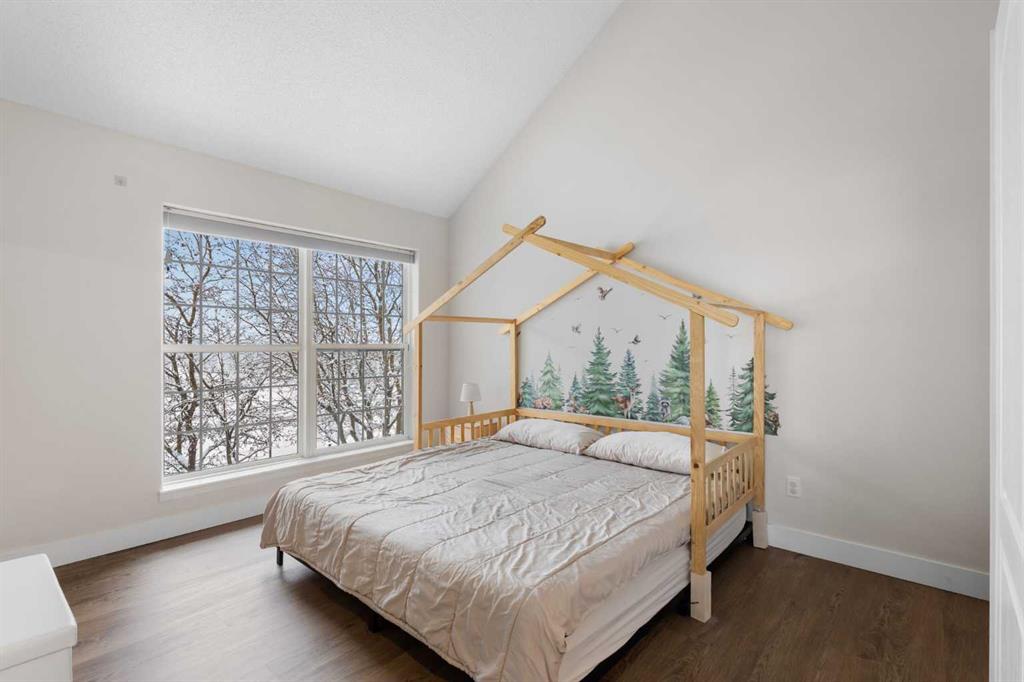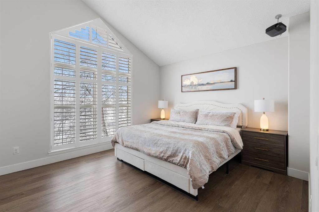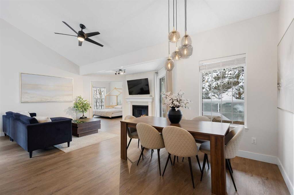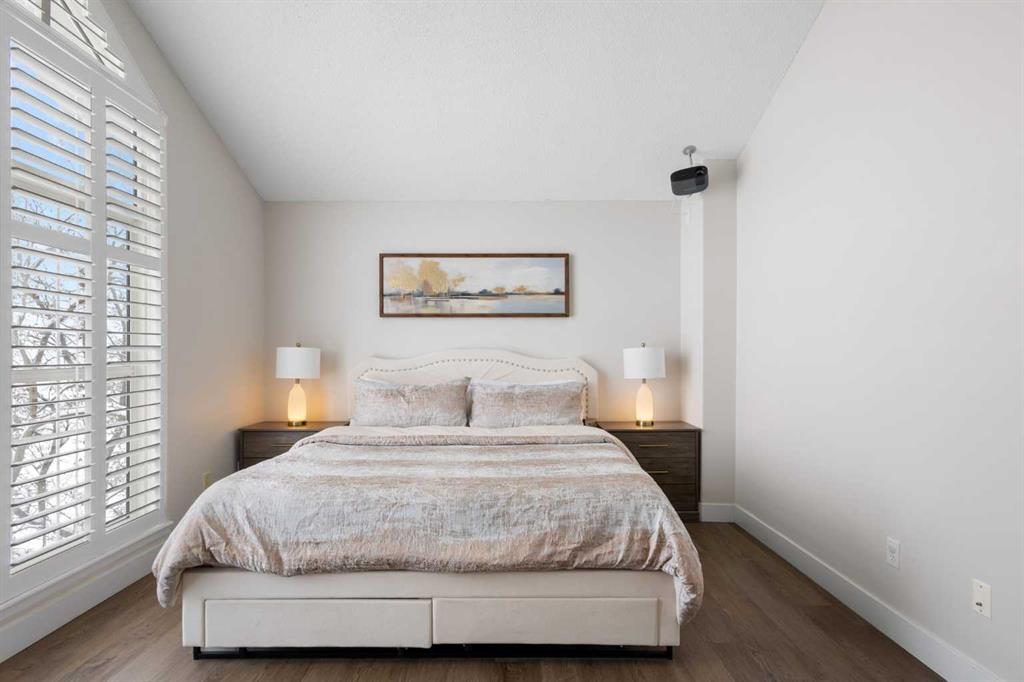 Wake up in Cactus Ridge and the first thing you notice is the light. Vaulted ceilings and oversized windows pull sun straight through the main floor — the kind of quiet, bright space that makes a Saturday morning coffee last twice as long. This upper-level stacked townhouse in Signal Hill overlooks Optimistic Park instead of a neighbour's window. That view is one of the reasons the current owners bought it. A wood-burning fireplace anchors the living room, and the whole space opens to a private balcony with a 25 sq ft storage room tucked off to the side. 1,221 sq ft, two bedrooms, two full bathrooms, and a floor plan that separates the primary from the second bed — the setup works for a dedicated home office, a guest room, or in-laws who stay a weekend. The primary has a 4-piece ensuite, walk-in closet, and a replaced bedroom window. The second bedroom sits across the plan with its own 3-piece bath. Underfloor heating runs through the entire home and into the attached garage. Warm floors from November through April, a low-dust, low-allergen environment, and a car you don't have to scrape at 7 a.m. in February. Recent updates from the sellers: full kitchen appliance package, washer and dryer, keypad front entry, security cameras at the door, balcony, and garage, a camera doorbell, new faucets and showerheads in both baths, LED stair lighting, digital thermostat, and new blinds on every window. Both bedroom windows have also been replaced. The home is pet-free and smoke-free — something allergy-sensitive buyers notice the moment they walk in. Outside the door: Sunterra Market, Starbucks, West Market Square, medical, dental, pharmacies, and the Bow River pathways are all inside a five-minute walk. Signal Hill and West Hills Shopping Centres are seven minutes by car. The complex has a private clubhouse residents actually use for gatherings, plus assigned parking directly beside the unit and ample visitor stalls. Move-in ready, with all furniture and décor available for separate purchase. Book a private showing or catch the open house.