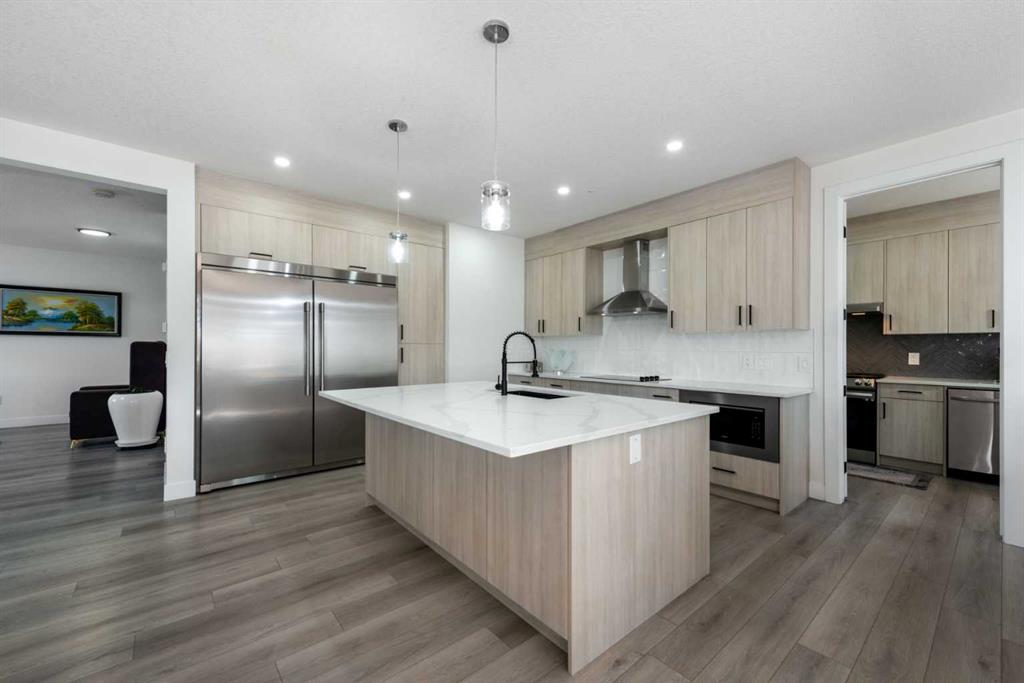 Open House April 25: 12-2pm, April 26 1-3pm | TRIPLE ATTACHED GARAGE | CORNER LOT | 56 FT WIDE LOT | 2024 BUILT | 3150 SQFT ABOVE GRADE | 4500+ SQFT TOTAL LIVING SPACE | 8 BEDS | 6 FULL BATHS | MAIN FLOOR BED & BATH | SPICE KITCHEN | 2 LIVING ROOMS | OPEN TO BELOW | 2 MASTER BEDROOMS | ILLEGAL SUITE + SECOND BASEMENT SECTION | SEPARATE ENTRANCES | STUCCO EXTERIOR | 9FT CEILINGS | LVP FLOORING | LOW MAINTENANCE LANDSCAPING | 5 MINS TO CHESTERMERE LAKE | Welcome to this stunning 2024-built estate home in the sought-after community of Waterford, Chestermere, offering 3149 sqft above grade and more than 4500 sqft of total living space. Perfectly positioned on a premium corner lot, this home features a striking stucco exterior, triple attached garage, and a thoughtfully designed layout ideal for large families and investors alike. The main floor showcases 9ft ceilings, durable LVP flooring, a spacious open-to-below living room filled with natural light, a second living area for added flexibility, and a modern kitchen complemented by a fully equipped spice kitchen. A convenient main floor bedroom and full bathroom complete this level. Upstairs, you’ll find generously sized bedrooms including two luxurious primary suites, each with their own ensuite bathrooms, offering comfort and privacy for multi-generational living. The basement is uniquely designed with two separate sections, both with their own entrances—one side featuring a 2-bedroom illegal suite, and the other offering a 1-bedroom setup with its own ensuite bath—providing excellent income potential or space for extended family. The exterior is fully landscaped with a low-maintenance design, perfect for easy upkeep year-round. Located just 5 minutes from Chestermere Lake, with quick access to amenities, schools, and major routes, this home is a rare opportunity to own a high-end, income-generating property in a prime location.