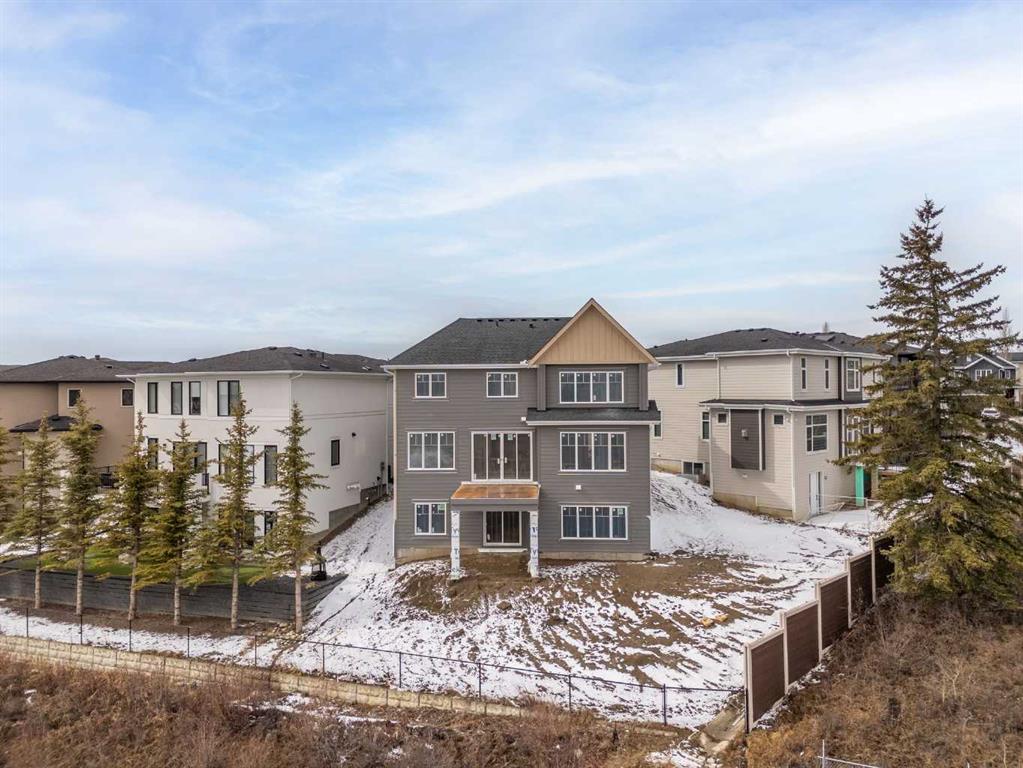 Thoughtfully designed and beautifully finished, this brand-new home in Discovery Ridge offers a refined blend of modern style and everyday functionality. Featuring 4 bedrooms and 2.5 bathrooms, with over 3,000 sq ft of developed living space across the main and upper levels, the layout is both spacious and practical, ideal for growing families or those who love to entertain. The main floor is bright and open, anchored by a stunning kitchen featuring custom cabinetry, quartz countertops, a large central island with eating bar, and a full stainless steel appliance package including a gas range. The adjoining dining and great room flow seamlessly together, creating an inviting space for gatherings, while a dedicated main floor study adds flexibility for work or quiet retreat. A generous mudroom with built-ins connects to the triple car garage with 8’ steel insulated overhead doors, keeping everyday life organized and functional. Upstairs, the home continues to impress with a well-designed layout that includes four bedrooms, a vaulted bonus room, and convenient upper-level laundry. The primary suite is a true retreat, complete with a spacious walk-in closet and a beautifully finished ensuite featuring a custom tiled shower and a deep soaker tub. Quality finishes are evident throughout, including luxury vinyl plank flooring, designer lighting, and a gas fireplace that adds warmth and character to the main living space. Built with comfort and efficiency in mind, the home includes a high-efficiency furnace, tankless hot water system, and heat recovery ventilation. The walkout lower level offers excellent potential for future development, while the exterior is equally impressive with Hardie board siding, stone accents, triple-pane windows, and a vinyl rear deck with aluminum railing overlooking the yard. Final grading and loam will be included, offering a clean starting point for future landscaping. Located in the sought-after community of Discovery Ridge, this home offers a rare opportunity to own a brand-new property in a well-established setting surrounded by natural pathways, green space, and just minutes from Griffith Park and the Bow River valley. Estimated completion: Early Summer 2026