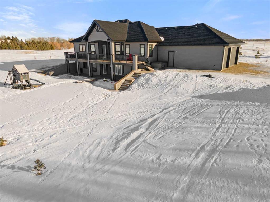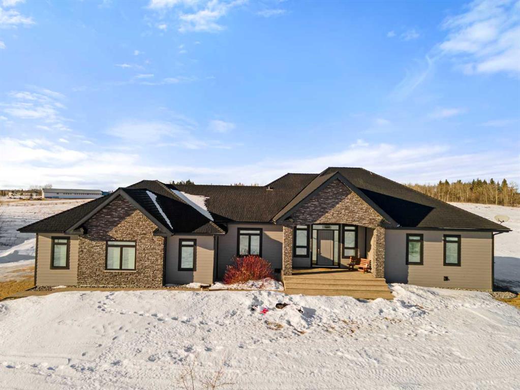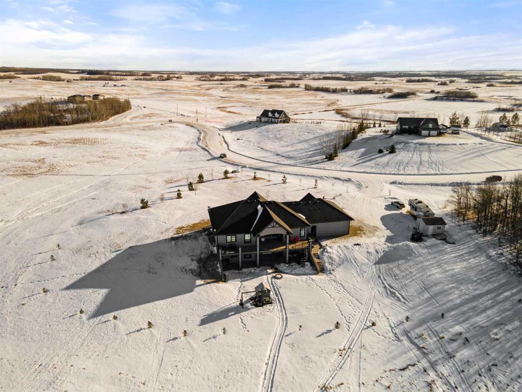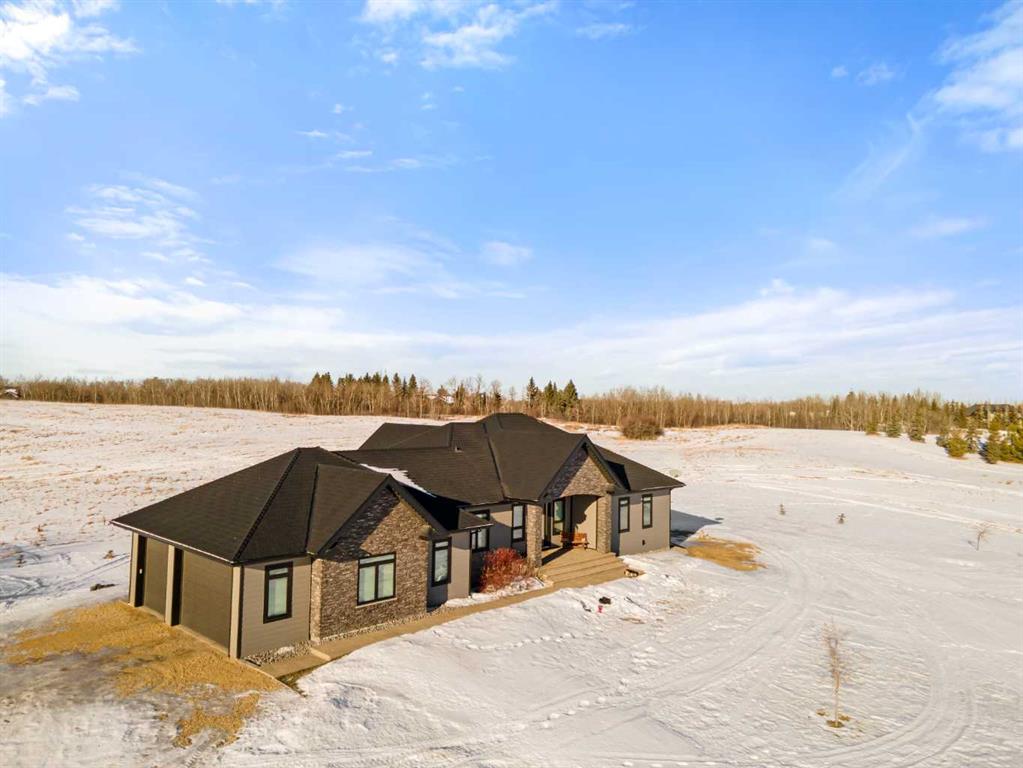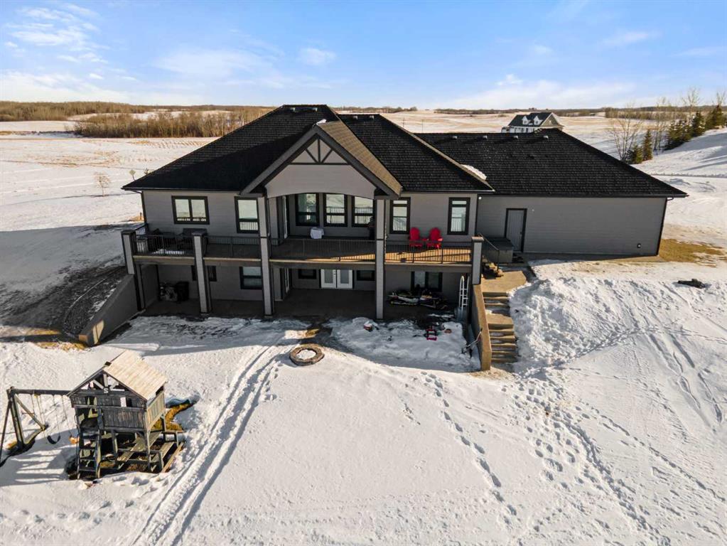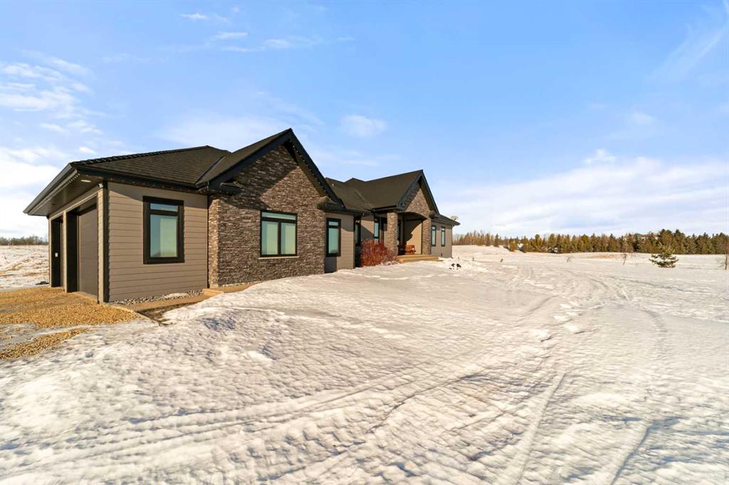 Tucked away in McNary Estates just 10 minutes from Camrose, this one-of-a-kind custom-built home offers the perfect blend of luxury, efficiency, and peaceful country living on 1.45 acres. Built with quality and longevity in mind, this property features an ICF foundation from basement to roof, durable Hardie board siding, and a 50-year Euroshield rubber roof. Inside, you’ll find an expansive open-concept layout with soaring 12’ ceilings, triple pane windows, and in-floor heating throughout the entire home and garage, powered by a new boiler (October 2025) and supported by an HRV system for year-round comfort. The chef-inspired kitchen is truly the heart of the home, complete with an industrial-sized fridge/freezer, gas cooktop, oven, and a massive walk-in pantry with a built-in coffee bar. The living room offers custom built-in storage and a warm, inviting atmosphere perfect for entertaining or relaxing with family. The main floor features a spacious primary retreat with a walk-in closet and a luxurious ensuite boasting dual shower heads. Two additional bedrooms (both with walk-in closets), a full 4-piece bathroom and convenient main floor laundry with built-in shelving complete this level. Downstairs, the fully developed basement offers exceptional versatility, including a large family room with wet bar, a bedroom with walk-in closet and a home gym (also with walk-in closet). The basement also features a full second kitchen. Step outside and enjoy the privacy of country living with a maintenance-free deck, outdoor fireplace, hot tub and play set. The property is serviced by a great well and septic mound system. This thoughtfully designed, energy-efficient home checks all the boxes and offers a rare opportunity to own a truly unique property in a desirable location.