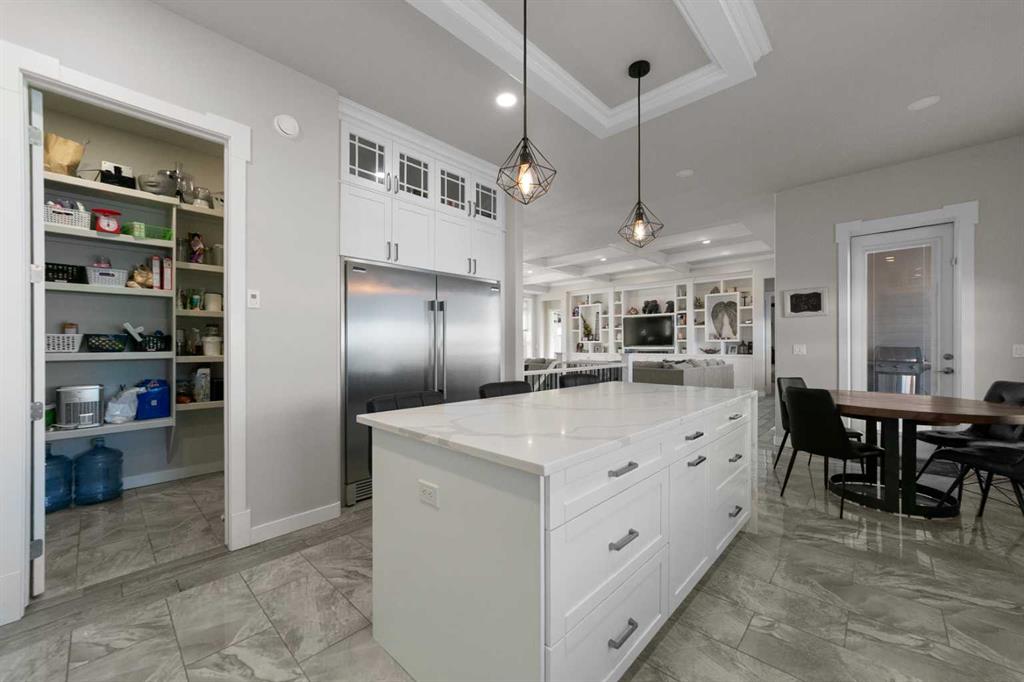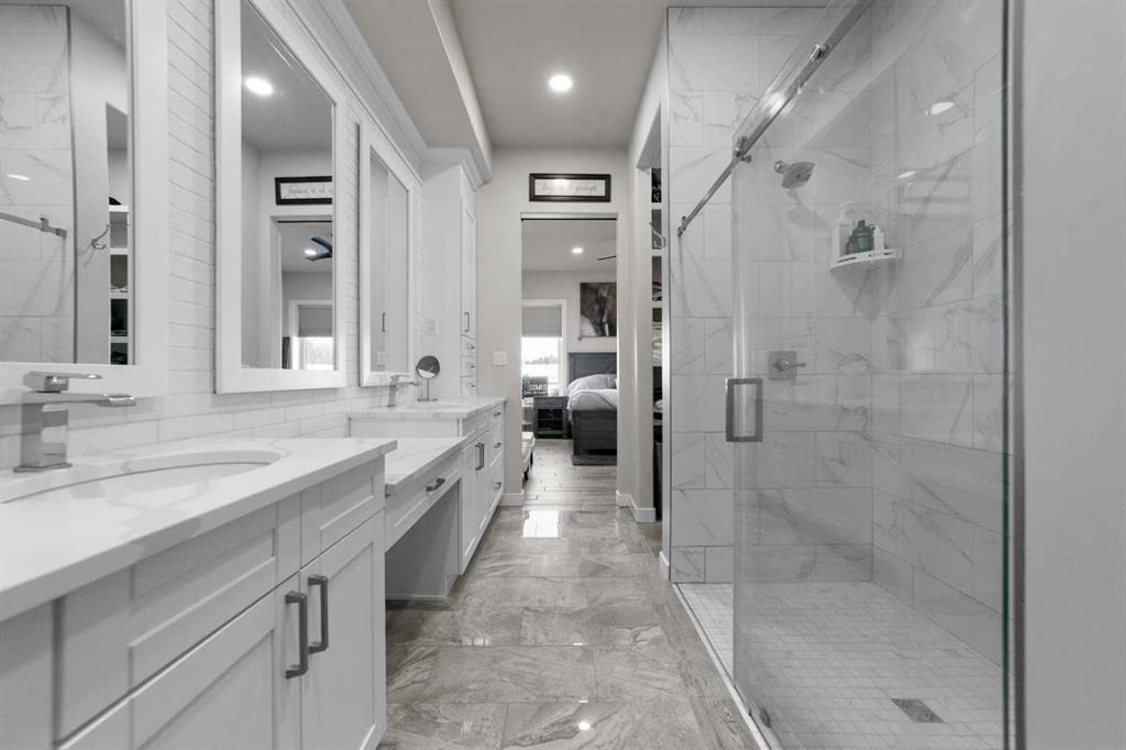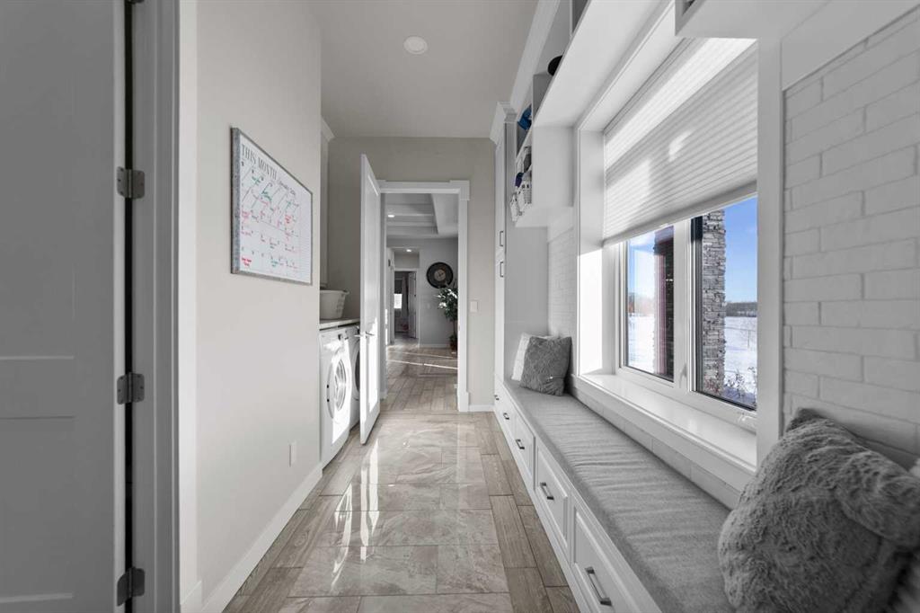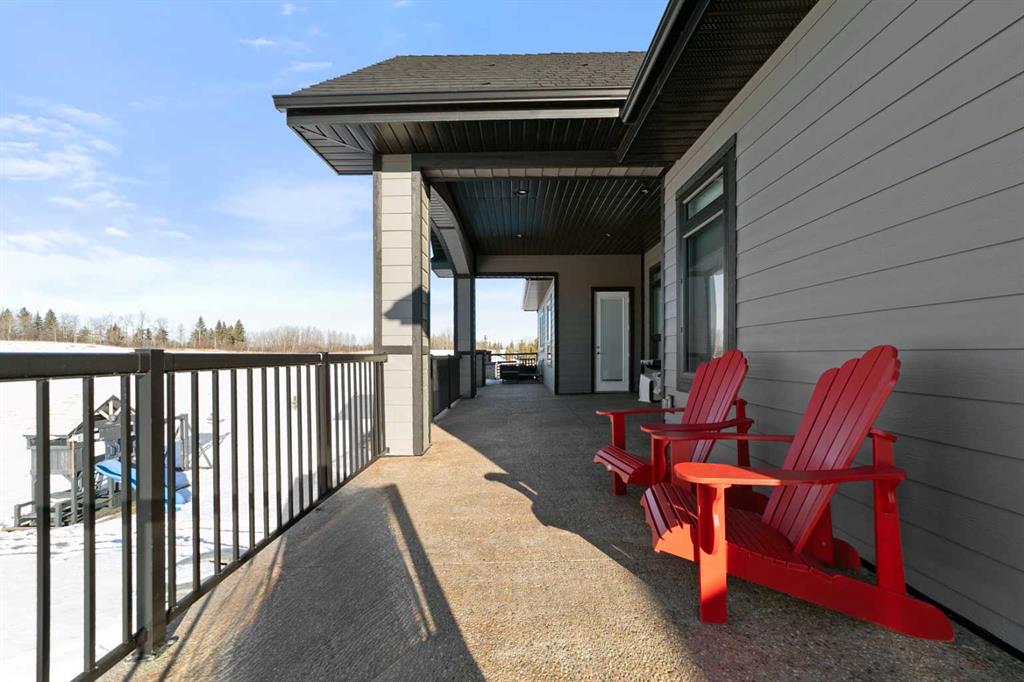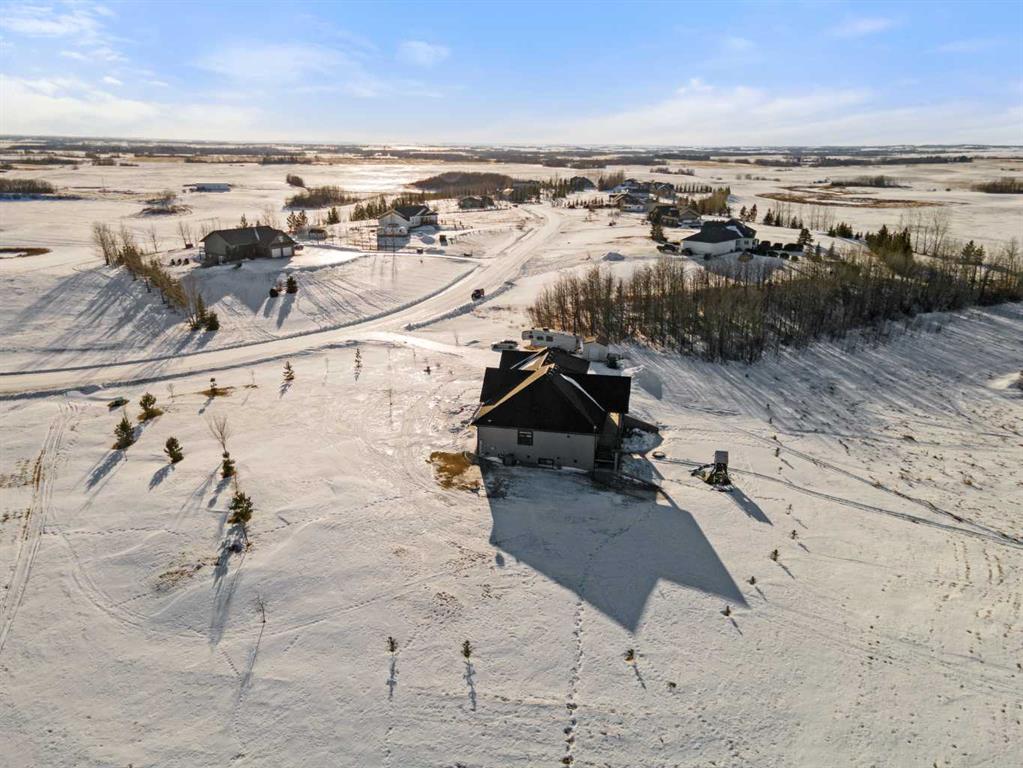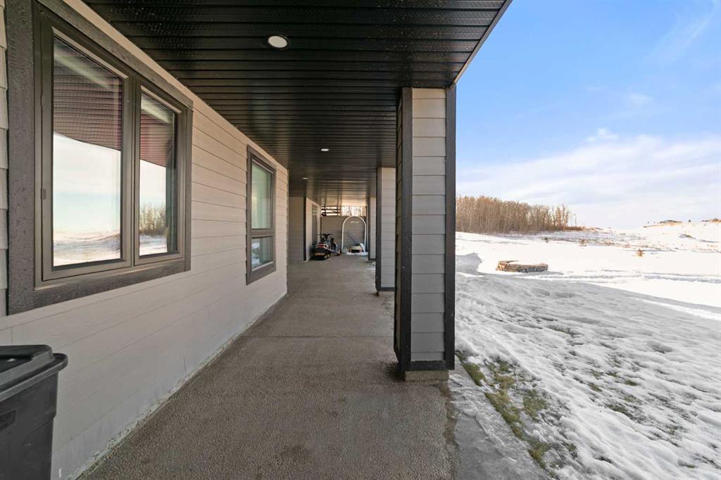 Tucked away in McNary Estates just 10 minutes from Camrose, this one-of-a-kind custom-built home offers the perfect blend of luxury, efficiency, and peaceful country living on 1.45 acres. Built with quality and longevity in mind, this property features an ICF foundation from basement to roof, durable Hardie board siding, and a 50-year Euroshield rubber roof. Inside, you’ll find an expansive open-concept layout with soaring 12’ ceilings, triple pane windows, and in-floor heating throughout the entire home and garage, powered by a new boiler (October 2025) and supported by an HRV system for year-round comfort. The chef-inspired kitchen is truly the heart of the home, complete with an industrial-sized fridge/freezer, gas cooktop, oven, and a massive walk-in pantry with a built-in coffee bar. The living room offers custom built-in storage and a warm, inviting atmosphere perfect for entertaining or relaxing with family. The main floor features a spacious primary retreat with a walk-in closet and a luxurious ensuite boasting dual shower heads. Two additional bedrooms (both with walk-in closets), a full 4-piece bathroom and convenient main floor laundry with built-in shelving complete this level. Downstairs, the fully developed basement offers exceptional versatility, including a large family room with wet bar, a bedroom with walk-in closet and a home gym (also with walk-in closet). The basement also features a full second kitchen. Step outside and enjoy the privacy of country living with a maintenance-free deck, outdoor fireplace, hot tub and play set. The property is serviced by a great well and septic mound system. This thoughtfully designed, energy-efficient home checks all the boxes and offers a rare opportunity to own a truly unique property in a desirable location.