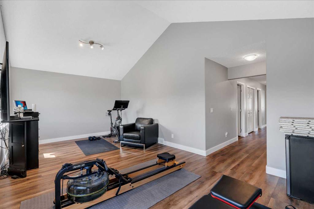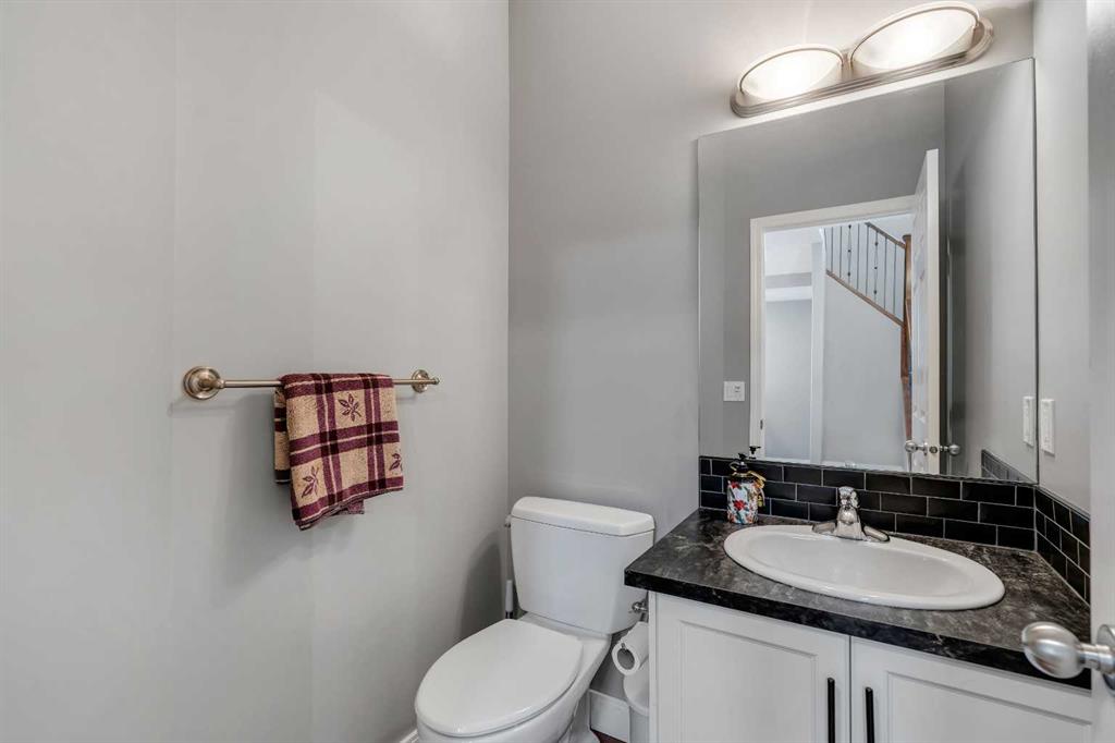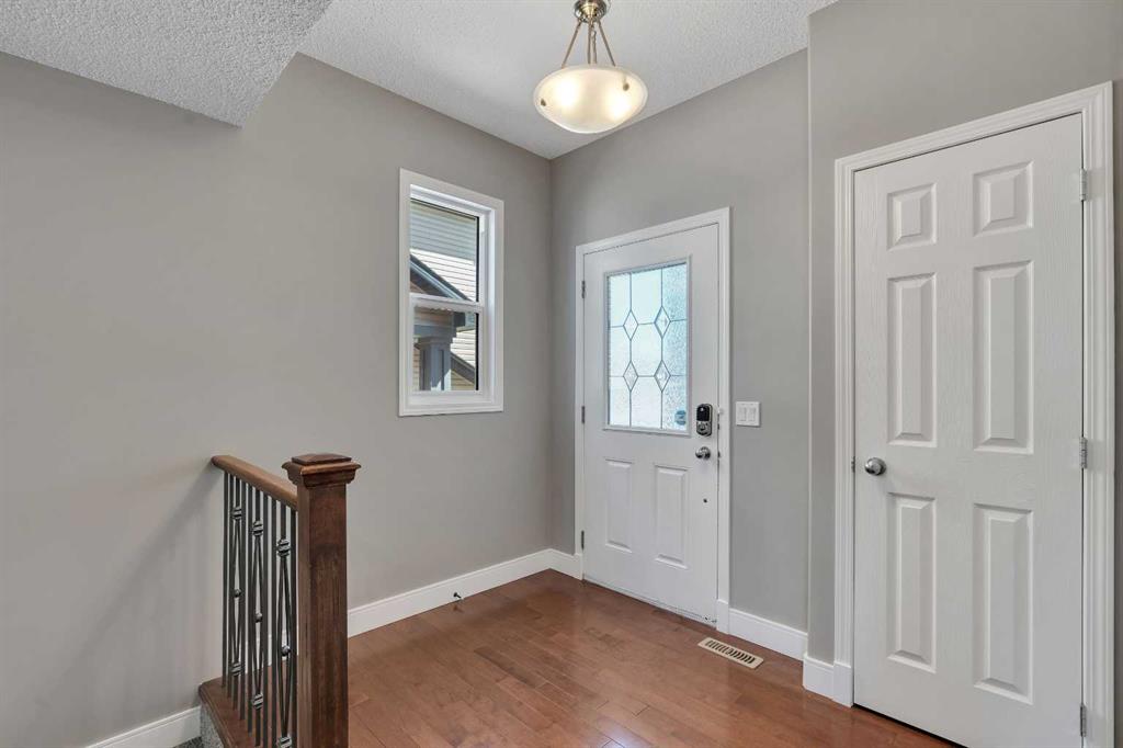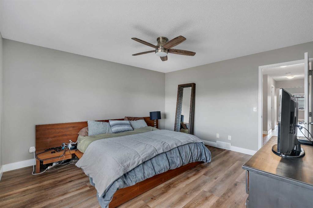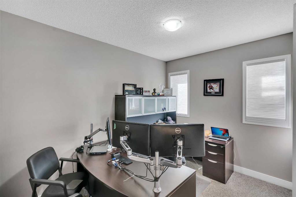 Welcome to 18 Silverado Skies Drive SW. Backing directly onto a green space and a walking path with, this fully updated Silverado home offers over 2,300 sq ft of developed living space with 4 bedrooms, a main floor office, and 3.5 bathrooms. The main floor is built for both everyday living and entertaining, featuring an open-concept layout with durable hardwood flooring throughout and a cozy gas fireplace anchoring the living room. The kitchen has been tastefully refreshed with crisp white cabinetry, modern black hardware, granite countertops, a central island with eating bar, corner pantry, and stainless steel appliances including a dual oven. A dedicated main floor office and laundry add function without sacrificing space. Upstairs, the vaulted bonus room creates an impressive second living area filled with natural light. The primary suite is spacious and well-designed, featuring a walk-in closet with added custom shelving and a 5-piece ensuite complete with dual sinks, a corner soaker tub, separate shower, and a private water closet. Two additional bedrooms and a full 4-piece bath and laundry room complete the upper level that has recently upgraded luxury vinyl plank flooring throughout. The fully developed basement (2020) expands your living space with a dry bar, electric fireplace, custom built-ins, a large bedroom with legal egress window, and a smart pass-through bathroom with heated floors. This home has seen major exterior and mechanical upgrades, including Hardie siding (2021), all new windows, and a hot water tank (2020). Out back, enjoy an expanded deck overlooking uninterrupted green space and direct access to walking paths. Finished with a double attached garage and located close to schools, parks, and shopping.