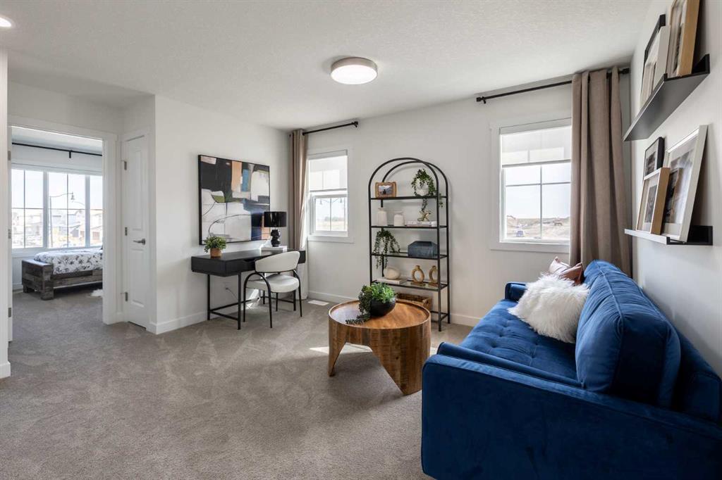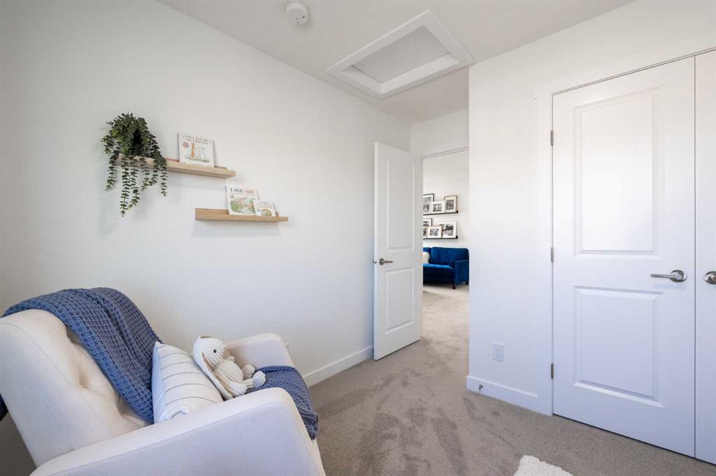 MODERN DOUGLAS WITH BONUS ROOM, SIDE ENTRY & BELMONT CONVENIENCE! Welcome to Belmont, a growing SW Calgary community known for its family-friendly vibe, scenic walking paths, nearby shopping, and easy access to major routes, perfect for balancing lifestyle and convenience. This Douglas-Z model zero lot line home features over 1800 sqft of a bright open-concept main floor with 9’ ceilings and beautiful French-imported laminate flooring, creating a warm and cohesive living space. The modern kitchen is complete with quartz countertops, ample cabinetry, and a seamless connection to the dining and living areas—ideal for both daily living and entertaining. Durable vinyl tile flooring in all wet areas adds practicality where it matters most. Upstairs, you’ll find three spacious bedrooms, a versatile bonus room perfect for family time or a home office, and the convenience of second-floor laundry. The layout is designed to grow with you, offering both comfort and flexibility for busy households. Additional highlights include a separate side entrance for future potential and a rear parking pad for convenient off-street parking. A well-balanced home that blends modern finishes, smart design, and a welcoming community, this is Belmont living at its best. PICTURES ARE OF SHOW HOME; ACTUAL HOME, FIXTURES, FINISHES, ETC. MAY VARY AND ARE SUBJECT TO AVAILABILITY/CHANGE WITHOUT NOTICE