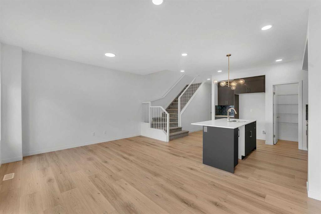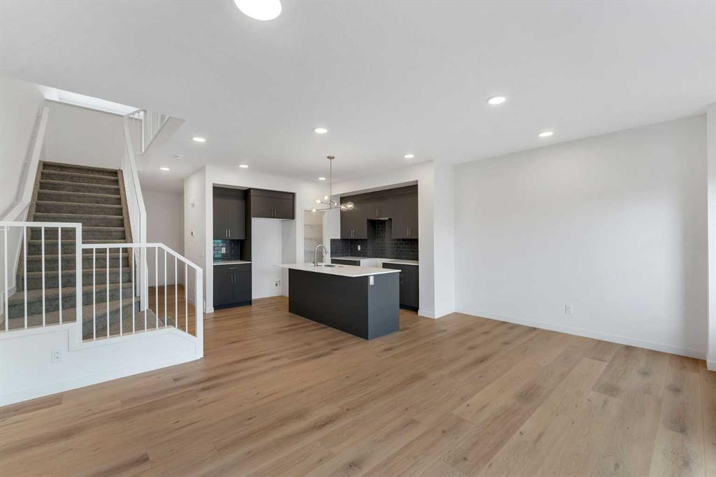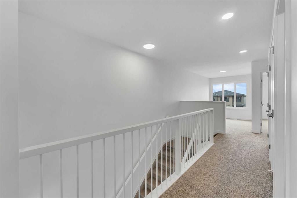 Immediate possession is available for the Metro Duplex 20 by award-winning Cantiro Homes. Situated on a desirable lot backing onto a walking path in the scenic hilltop community of West Hawk, Cochrane, this home is ideal for first-time buyers, investors, or those seeking to right-size. Step inside to the open-concept main floor, which features a spacious kitchen with a large island, stylish slate cabinetry, quartz countertops and a sleek stainless steel appliance package. The kitchen seamlessly connects to the living room and dining room, where bright windows flood the space with natural light. Step outside to your back deck and enjoy those summer evenings. Rounding out the main floor is a mudroom off the double-attached garage and a powder room. Upstairs, the efficient layout includes a comfortable primary bedroom with a dedicated ensuite bathroom. Two additional well-sized bedrooms, a bonus room, and a full bathroom with convenient upstairs laundry complete the upper level. The unfinished basement is a blank canvas waiting for your design ideas. West Hawk is a new, 110-acre master-planned community in northwest Cochrane, Alberta, designed for nature-inspired living with 27 acres of environmental reserve, scenic Rocky Mountain views, and 5 km of pathways. Situated along Highway 1A, it offers quick mountain access and proximity to Calgary, making it a great place to call home.