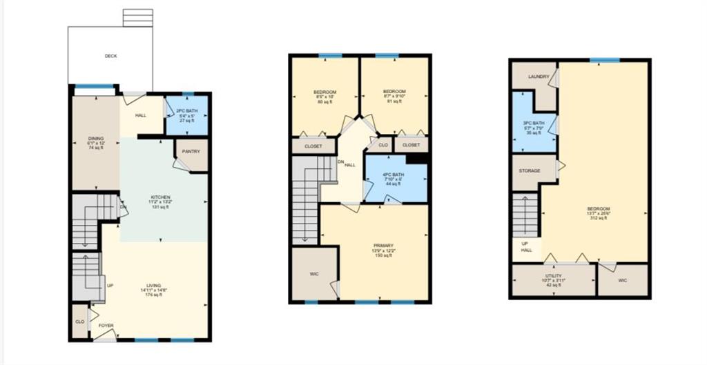 Exceptional value in this stylish and well-maintained townhome offering 1,749 sq ft of total finished living space, including a fully finished basement. The bright and open main floor features large windows that bring in plenty of natural light, creating a warm and inviting atmosphere. The spacious living room flows nicely through the main level, making it ideal for everyday living and entertaining. The kitchen offers plenty of counter space, stainless steel appliances, shaker-style cabinetry, and a walk-in pantry for extra storage. The adjoining dining area is perfect for family meals and gatherings, while a convenient 2-piece bathroom completes the main floor. Step outside to the back deck, perfect for summer barbecues and outdoor relaxation. Upstairs you will find a spacious primary bedroom with a large closet, along with two additional bedrooms and a 4-piece bathroom. The finished basement adds great extra space with a recreation room, 3-piece bathroom, and laundry area, making it ideal for kids, guests, or a media room. The complex offers one assigned parking stall plus additional common stalls available on a first-come, first-serve basis. A Club House is also available for gatherings and resident use. Located in the desirable community of Williamstown, you are just a 12-minute walk to Heron’s Cross Elementary School and steps from the 60-acre Williamstown environmental reserve with parks, ponds, playgrounds, pedestrian bridges, and scenic walking trails along Nose Creek. Well-managed and pet-friendly complex allowing up to two pets per unit, offering comfortable low-maintenance living.