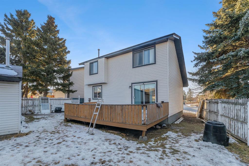 FULLY RENOVATED | NEW ROOF & EXTERIOR | FINISHED BASEMENT | HEATED DOUBLE GARAGE | PARK TO THE LEFT - NO NEIGHBOURS | QUIET CUL-DE-SAC | 3 BED | 1.5 BATH | 1,800 SQFT DEVELOPED AREA | Welcome to this beautifully renovated home located on a quiet cul-de-sac in the community of Falconridge, offering just under 1,800 square feet of developed living space along with exceptional privacy, functionality, and modern design. This home has been extensively renovated, featuring new exterior siding and fascia, a modern kitchen, updated flooring and baseboards, fresh paint throughout, modern lighting fixtures, and a brand-new roof, gutters, and downspouts. With no neighbours to the left, a park steps away, alley access at the rear, and easy access to public transit, this property provides a rare sense of space and everyday convenience. Upon entry, you are welcomed by a foyer with a convenient closet, opening to a massive living area on the left featuring an oversized window that floods the space with natural light and a large screen door leading to an expansive backyard and deck, perfect for entertaining or relaxing outdoors. To the right, the modern kitchen showcases stainless steel appliances, quartz countertops, and sleek contemporary finishes, complemented by a dedicated dining area with built-in cabinetry offering ample storage and an additional separate entry for added functionality. The main floor is finished with a blend of luxury vinyl plank and hardwood flooring, creating a refined balance of modern style and timeless character, and is completed by a stylish 2-piece bathroom. Upstairs, the spacious primary bedroom features both front and rear windows, while two additional bedrooms and a modern 4-piece bathroom with a window allow for natural light and added ventilation. The fully developed basement offers a versatile open concept recreational space that can easily be converted into an additional bedroom, home office, gym, or entertainment area, along with a dedicated laundry room. Outside, enjoy a detached heated double garage with alley access, featuring two windows for added natural light, and outstanding parking options including ample cul-de-sac parking, two garage spaces, and an additional parking area beside the garage ideal for an RV or extra vehicle. An excellent opportunity for investors, with potential rental income of up to $2,500 per month. Families will appreciate the nearby schools such as Falconridge School (K–6), Grant MacEwan School (K–6), St. John XXIII School (K–9), Terry Fox School (Junior High), and Bishop McNally High School, along with close proximity to parks, shopping, major roadways, and convenient transit routes. This move-in-ready home offers privacy, flexibility, and exceptional value in a well-connected, family-friendly community. Book a showing with your favourite realtor today!