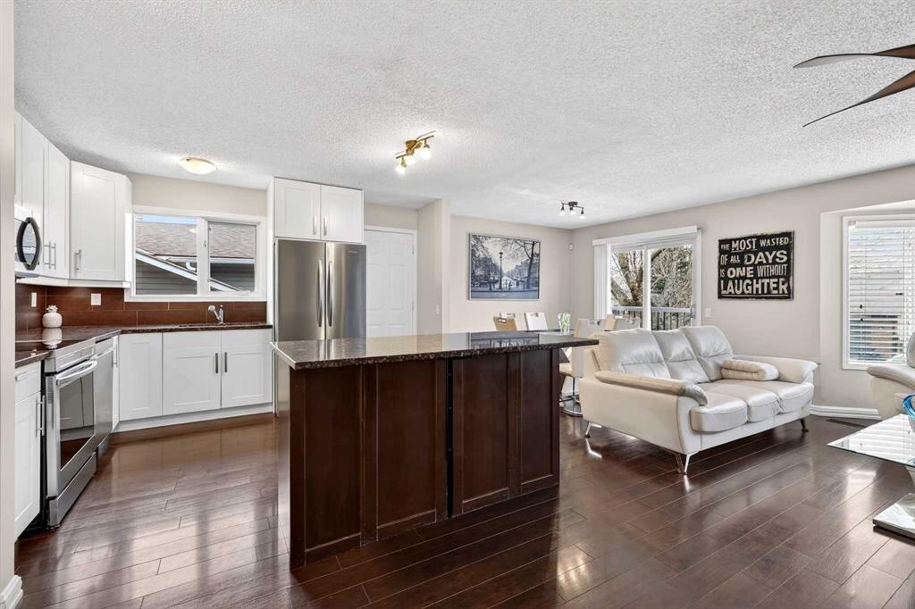 This beautifully maintained home is set on a quiet, tree-lined street in the highly desirable community of Sandstone Valley. Offering four bedrooms, three full bathrooms, and a large finished double attached garage with private access to the lower level, it provides exceptional value for first-time buyers, families, and investors looking for a well-cared-for property in a mature, convenient neighbourhood. The main level features a bright open-concept layout finished in light contemporary colours and complemented by hardwood flooring throughout. The spacious kitchen offers ample white cabinetry, granite-topped island, counters and stainless steel appliances, opening onto a dining area surrounded by large windows that fill the space with natural light. The adjoining living room, complete with two white leather couches, creates a comfortable and inviting setting for everyday living. Three generously sized bedrooms complete this level, including a primary suite with a walk-in closet and a four-piece ensuite, along with an additional full bathroom. A privacy door at the main entrance leads to the fully finished lower level, providing excellent flexibility for extended family, guests, or potential development into an illegal suite with minor modifications. This warm and welcoming space features plush carpeting, large windows, and a spacious family room anchored by a wood-burning fireplace with log lighter, mantle, and tile surround. The included sectional couch, entertainment unit, and piano make the room feel complete and ready to enjoy. A fourth bedroom with a large window and closet, along with a Jack and Jill four-piece bathroom, adds to the functionality and comfort of the lower level. The west-facing backyard is a standout feature, offering abundant sunshine and plenty of room for children to play, gardening, or hosting summer gatherings with family and friends. It’s a generous outdoor space that enhances the home’s overall appeal and livability. Located in one of Calgary’s most established and family-friendly communities, this property provides easy access to schools, parks, playgrounds, pathways, shopping, and public transit, with quick connections to Stoney Trail and major routes. This is a wonderful opportunity to own a well-loved home in a fantastic location. Welcome home.