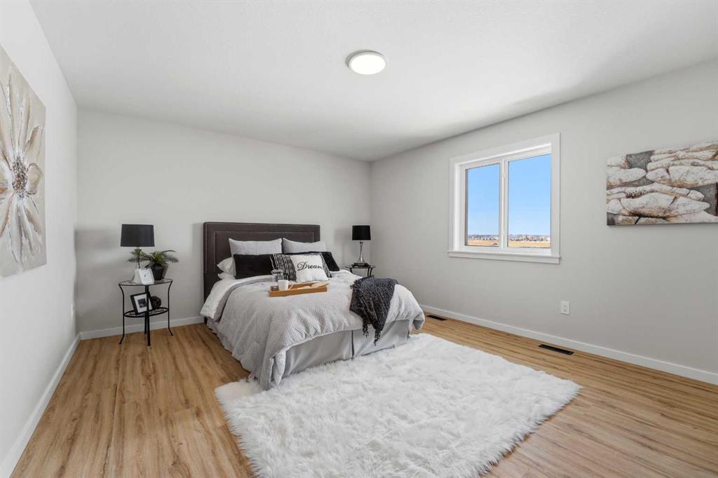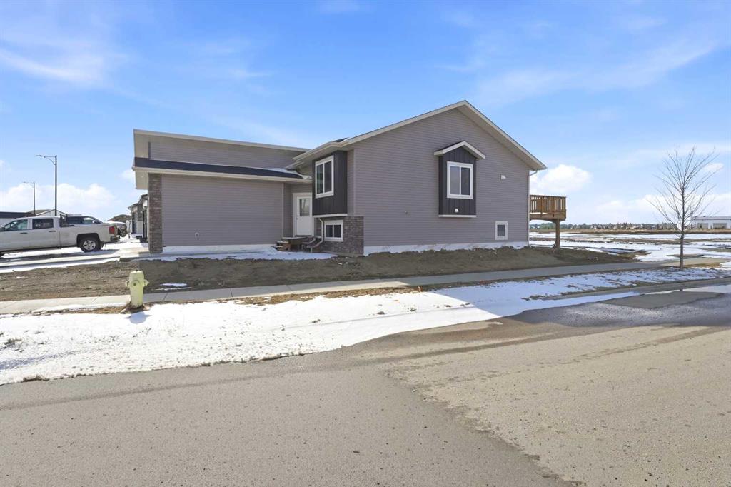 ~JUST WOW~A very thoughtful design by WOLOWSKI HOMES. This quality-built home has a family in mind, situated in a quiet new SUBDIVISION right across the road from a children's playground. In the WOLOWSKI HOMES you'll be impressed with the ICF (INSULATED CONCRETE FORM) Foundation, commercial grade 50 gallon Hot Water Tank, and HIGH EFFECIENCY FURNACE! Vaulted whitewash pine ceilings with beautiful white beams compliment the main floor, giving an airy bright OPEN CONCEPT. Quartz countertops throughout, white soft close cabinets, and stainless appliances. A wall pantry in the spacious kitchen provides ample room for all the groceries, crock pots and air fryers too! Eat up peninsula, and spacious dining allows for comfort and functionality, a lovely and welcoming atmosphere for dining and entertaining. There are three generous size bedrooms on the main floor, the primary featuring a large walk-in closet and spa inspired four-piece bath!! White oak LUXURY VINYL PLANK on the main floor is waterproof and family friendly for children and pets. The basement features a FINISHED four-piece bathroom for added convenience. A SUMP PUMP, roughed in IN FLOOR HEAT, room for two additional bedrooms, and a massive family/rec room. Easy and inexpensive to complete, ask builder for details. A wonderful two car garage has been drywalled with two garage soft close doors, a drain and roughed in for gas heater. The curb appeal speaks for itself, a spacious CORNER LOT offers additional parking for guests, lots of natural exterior stone and warm NEUTRAL colors keep this home looking timeless year after year. A one-year builder warranty, and ten-year NEW HOME WARRANTY, providing peace of mind.