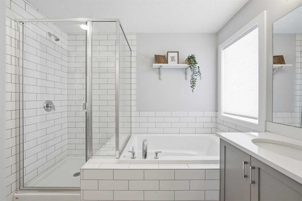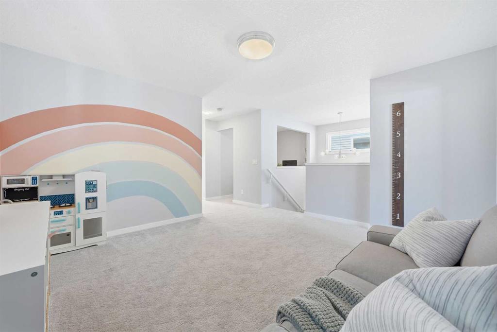 Welcome to this beautifully maintained, move-in ready family home, ideally situated in a quiet location just steps from a playground in one of Cochrane’s most sought-after neighbourhoods! With the convenience of K–Grade 8 at nearby Ranchview School, this is the perfect setting for growing families. Step inside to a warm and inviting main floor featuring rich wood-tone vinyl plank flooring and bright, modern finishes that create a calm and welcoming atmosphere. The stunning kitchen is the heart of the home, showcasing upgraded appliances including a gas stove and ceiling hood fan, quartz countertops, and a large island—perfect for gathering, entertaining, and everyday meal preparation. A spacious walkthrough pantry connects seamlessly to the mudroom, complete with built-in lockers to keep the family organized, along with convenient access to the main floor powder room and the garage, which has been insulated, drywalled, and finished with textured white walls. The open-concept living and dining areas provide a comfortable space for both daily living and hosting guests. Sliding glass doors lead to the spacious backyard and deck, complete with a gas line rough-in for your BBQ—perfect for summer entertaining while the kids play and you relax in the sunny outdoor space. Upstairs, a centrally located bonus room offers excellent flexibility and is currently set up as a children’s play space but could easily function as a media room or additional family lounge. Just off the bonus room is a cozy office nook—an ideal tucked-away workspace. The primary suite offers a peaceful retreat, complete with a spacious walk-in closet and a beautifully finished five-piece ensuite featuring dual sinks, quartz countertops, a deep soaker tub, and a separate tiled shower—the perfect place to unwind at the end of the day. Two additional bedrooms, each with their own walk-in closets, a full bathroom with quartz countertops, and a generously sized laundry room with extra storage complete the upper level. The unfinished lower level is ready for your future plans, already equipped with a bathroom rough-in and ample space for additional living areas. Located in a vibrant community known for its pathways, parks, schools, and central pond, you’ll also enjoy convenient access to nearby amenities including restaurants, pharmacy services, and medical clinics. Families will especially appreciate that the nearby park serves as a convenient school bus stop—just a short stroll away for easy, stress-free mornings. An exceptional home offering comfort, function, and a quiet, family-friendly location—book your showing today!