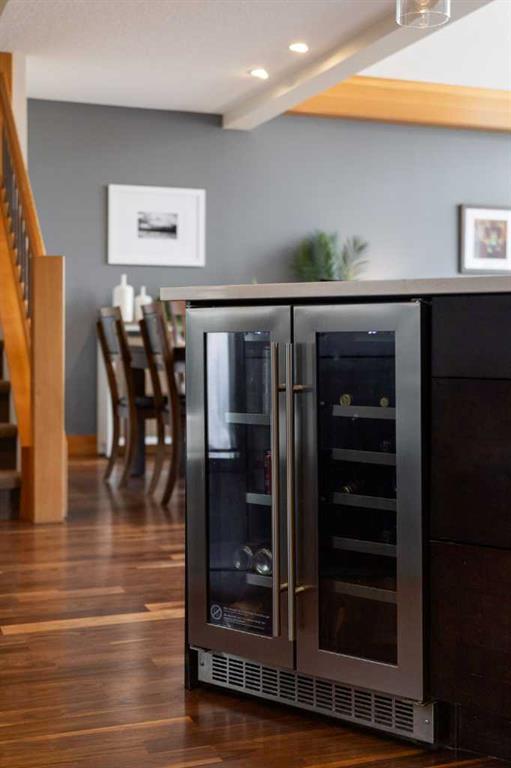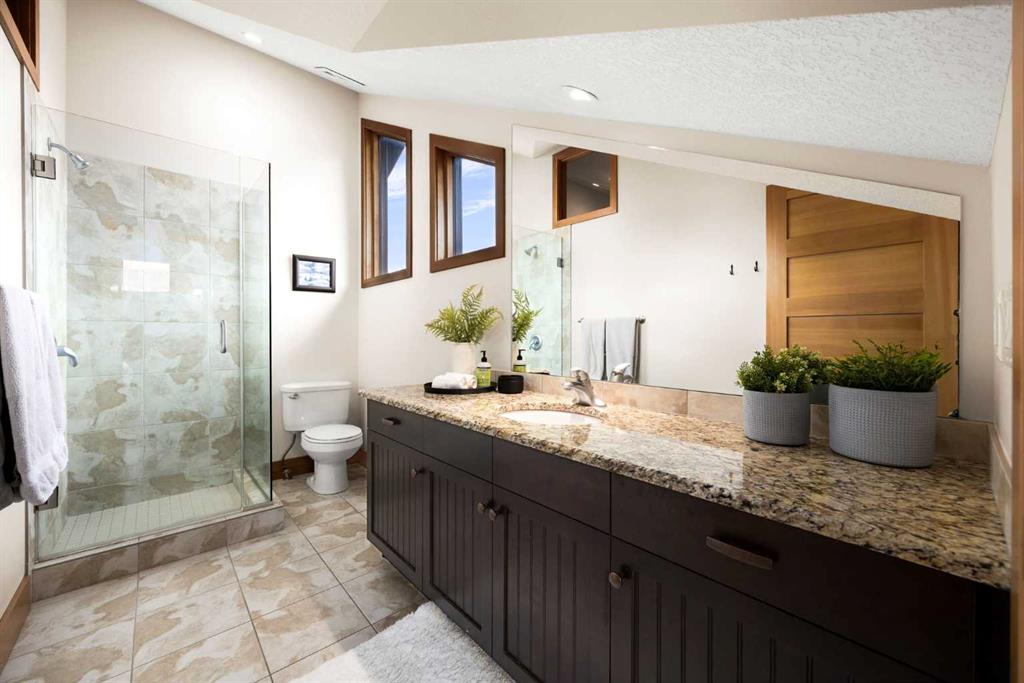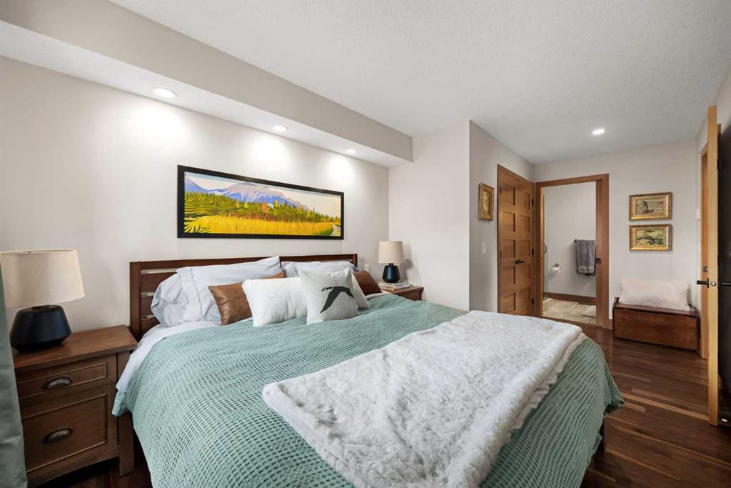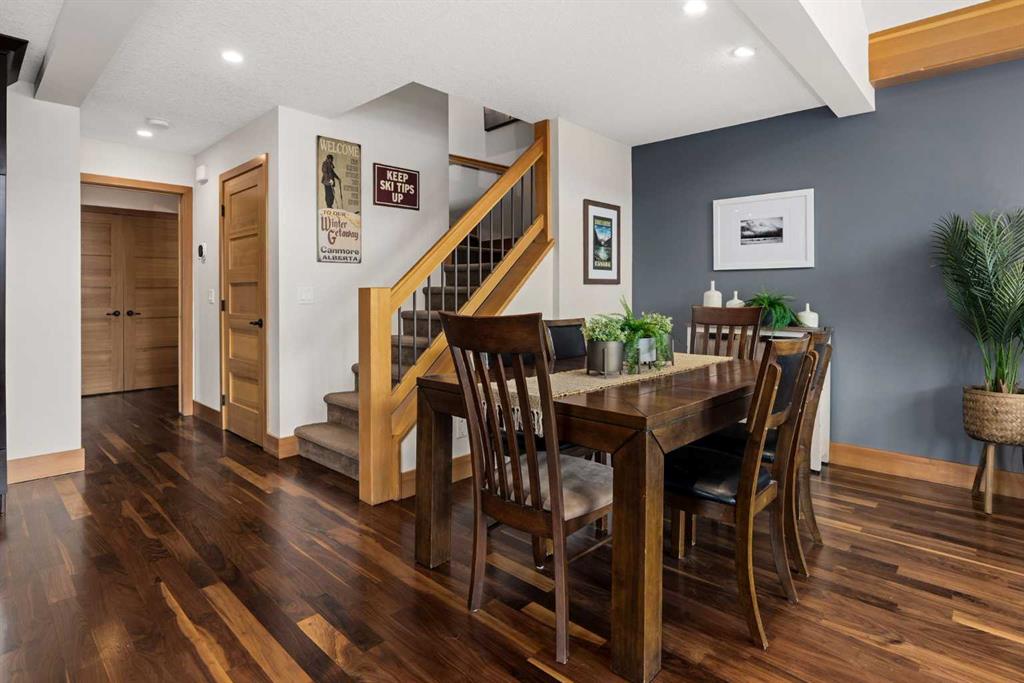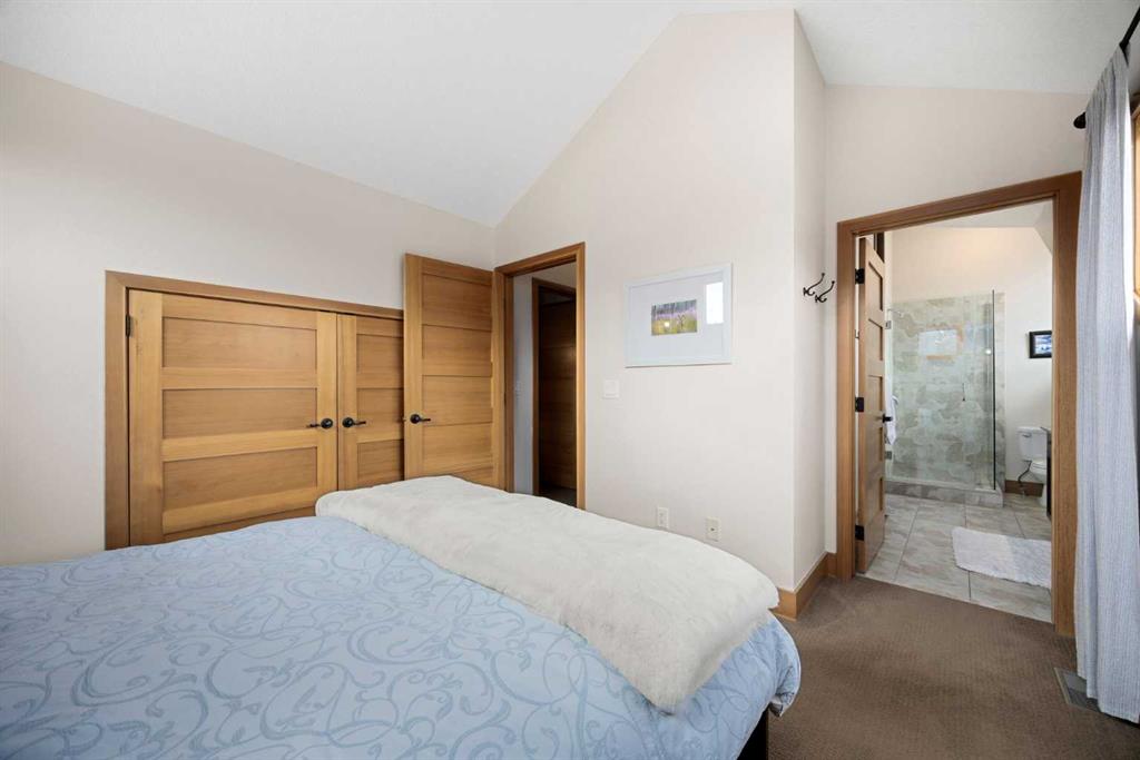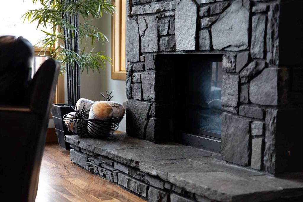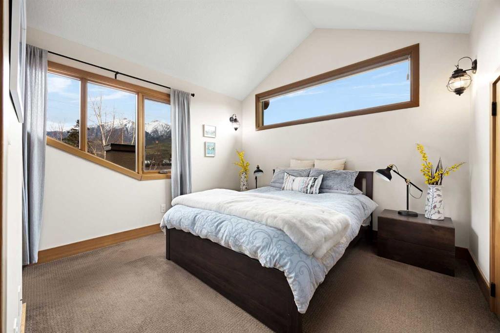 If you've been searching for the idyllic Canmore vacation property or a full-time mountain home that truly has it all, your search ends here. Nestled in the heart of South Canmore just a short walk from Main Street and the river valley, this 3-bedroom, 4-bathroom townhome is one of the finest examples of mountain residential craftsmanship you will find in the Bow Valley. Masterfully built by Fournier Construction, the interior is timeless and elegantly finished throughout. Rich Douglas Fir trim and doors, pristine Walnut hardwood floors, and a heated tile foyer set the tone from the moment you step inside. The dream living room commands your attention with soaring vaulted ceilings centered by a bold Rundle Stone fireplace, oversized view windows that frame the mountains in every direction, and a large wrap-around sundeck that invites you outside to take it all in. The kitchen is appointed with stainless steel appliances, a gas countertop range, and a built-in oven, bar fridge and wine bar, newly installed Quartz countertops, designed for those who love to cook and entertain. A convenient half bath rounds out the main level as well as a private master suite with ensuite. Upstairs, you will find two generous bedrooms each with their own ensuite, plus the added convenience of upper floor laundry. All bedrooms are complete with ensuites ensuring every guest has their own private retreat. With over 1,600 sq ft of meticulously maintained living space, a single car garage, and a spacious entryway, this property shows like new from top to bottom. You will not find a better maintained home in Canmore. Properties of this caliber, in this location, rarely come to market. Reasonable condo fees of $306/monthly and a healthy condo corporation round out your lifestyle investment in Canmore.