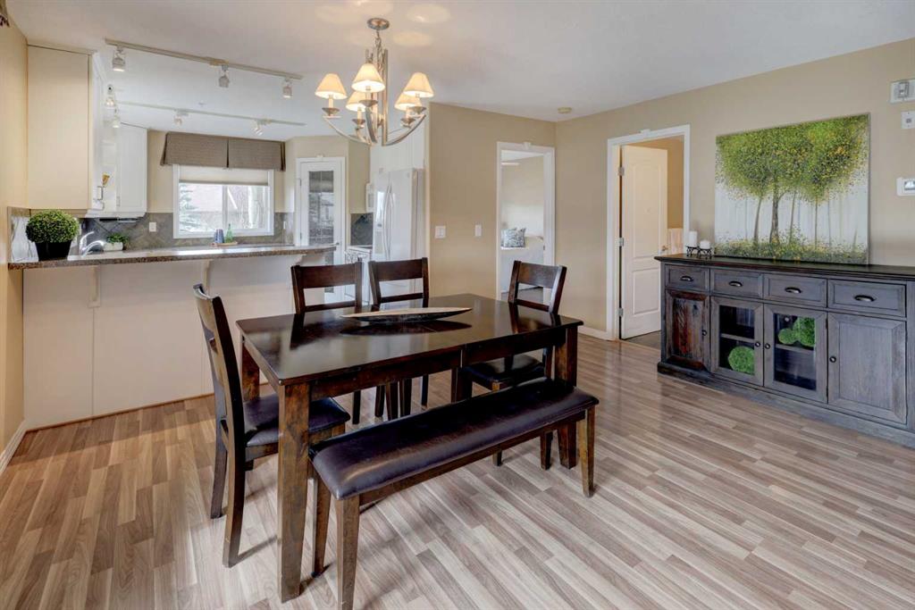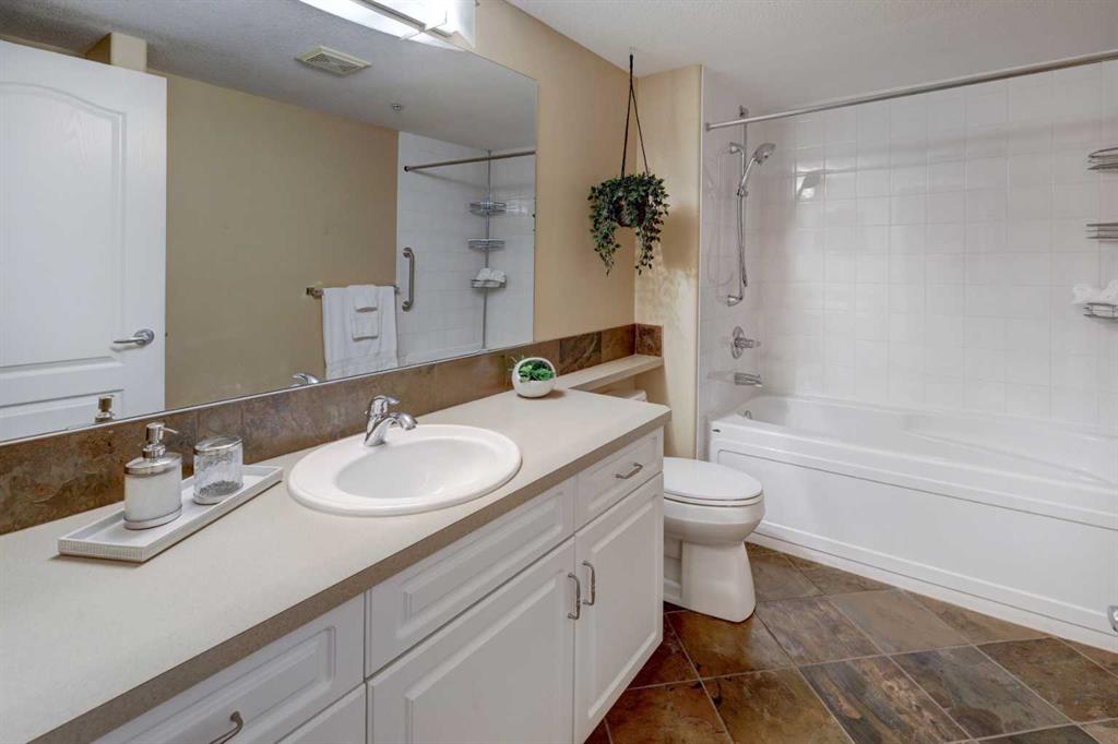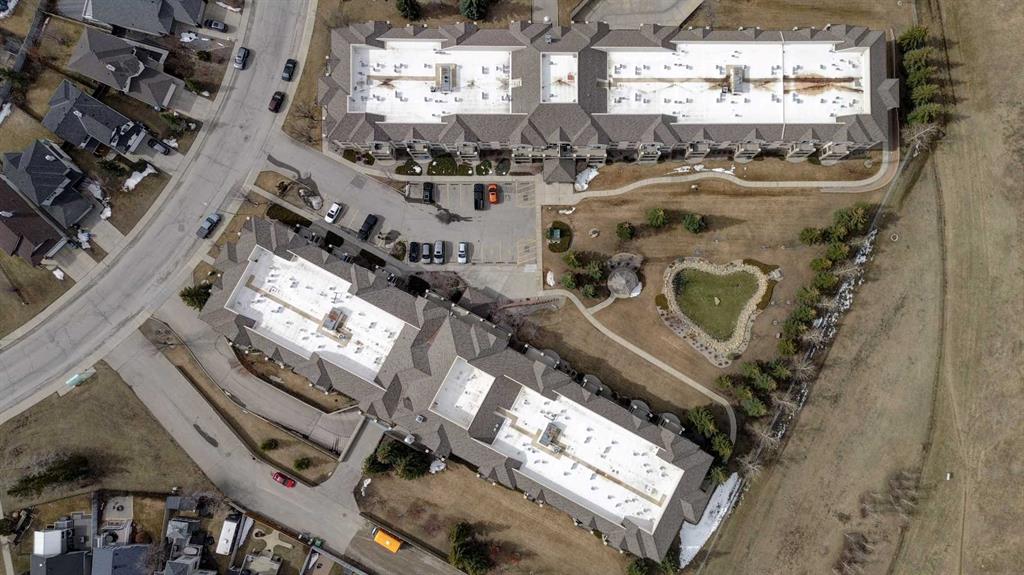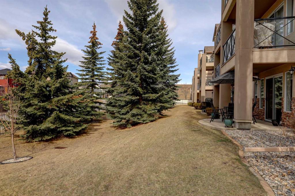 Let the sun shine in and lift your spirits!! You've found the home that is bathed in an abundance of natural light with this corner unit. An 18+ Adult complex, with this 2 bed/2 bath, main floor home featuring 2 patios. One patio enjoys street-side activity perfect for bar-b-quing , while the second patio provides a more peaceful experience overlooking the lush greenspace. You'll appreciate the convenience of a sidewalk off the driveway that leads directly to the patio doors of this unit as well. So many more advantages this unit offers to talk about...The open floor plan invites entertaining and conversation, with an ease for furniture placement due to no awkward baseboards to deal with. Two kitchen windows contribute to the light-filled experience, while one presents a lovely view of the mountains. The thoughtfully designed kitchen offers an excellent capacity for more than one cook at a time. With more than ample counter top, cupboard and pantry space for storage. The primary bedroom is sizeable enough for a king size suite and includes a well sized walk in closet and 4 pc. ensuite. The 3 pc. bath off the main area adds convenience for guests, as does the second bedroom - also with a view of the mountains! In-suite laundry, a titled underground parking stall and an assigned 9'X5' storage locker in front of the parking stall round off the added value you'll find here. Now for the very well managed complex...a games/community room with library, pool table and comfy meet-up area are located in bldg. 2. While bldg. 1 hosts a fitness room with sauna/change room & shower. A car wash bay is steps away from the parking stall. The landscaped courtyard showcases a charming gazebo and lovely pond to enjoy. Easy access with a short drive to a multitude of shopping options, restaurants, professional services, the beautiful lake you'll have priviledges to, the LRT system, Crowchild & Stoney Trails...Need I say more?! You truly need to start your car and view this unit...