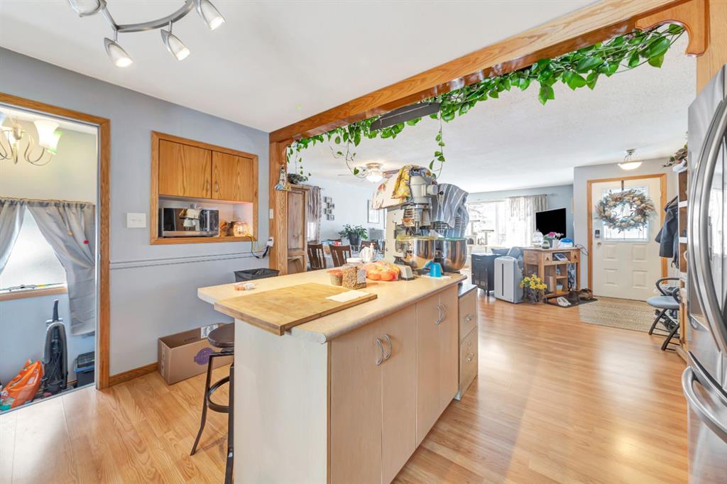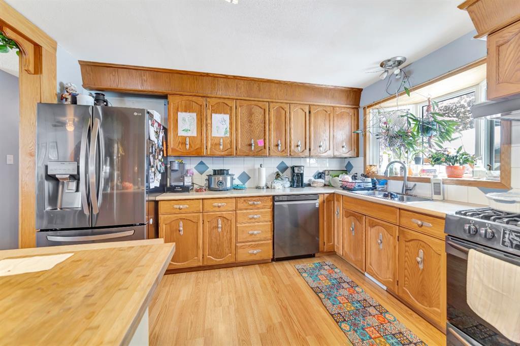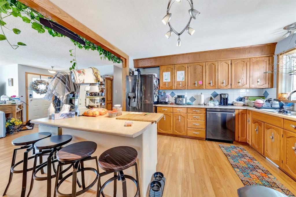 This beautifully updated Southridge bungalow offers a spacious open-concept layout with three bedrooms on the main floor and stylish laminate flooring throughout. The bright, modern kitchen features an island, ample cabinetry, and a new appliance package, while large windows fill the living and dining areas with natural light. The main 4-piece bathroom has been fully renovated with contemporary finishes. Downstairs, you’ll find a generous family room with a bar area, a fourth bedroom, a newly remodeled 4-piece bathroom, and plenty of storage space. Outside, enjoy a nicely landscaped yard with mature trees, a large deck, and a shed, along with an oversized 18’ x 31’ garage that is fully finished, heated, and equipped with a drain and durable tin interior. Additional upgrades include vinyl windows, a new central A/C unit, and a furnace and hot water tank replaced in 2020—making this move-in-ready home one you won’t want to miss.