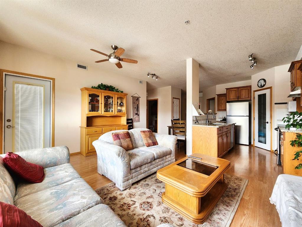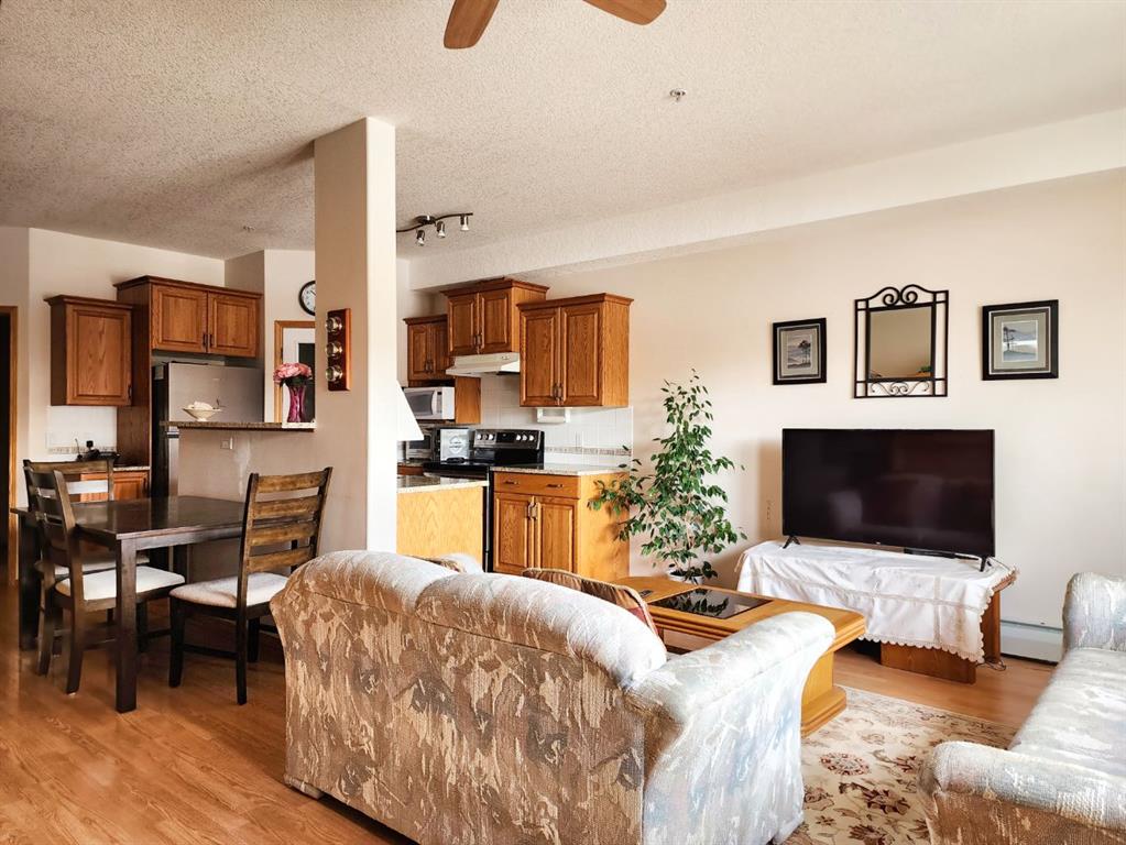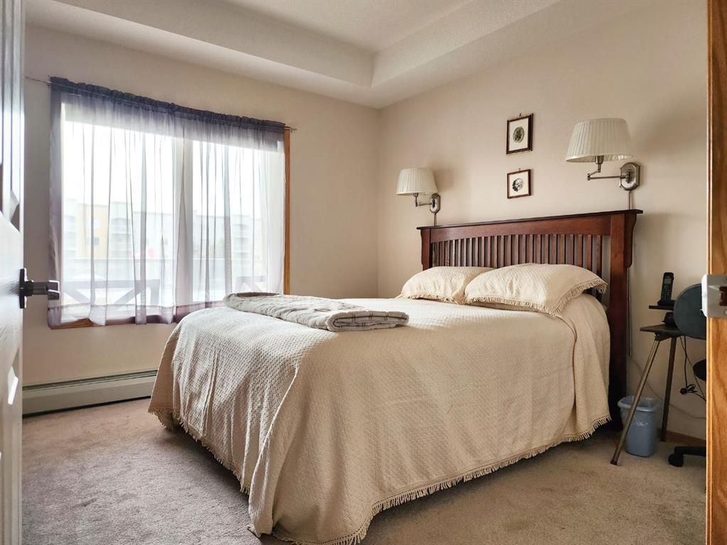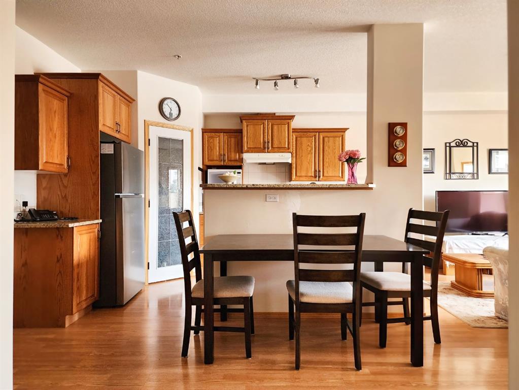 Welcome to the Sierras of Courtyard Terrace. This nicely kept unit is very close to the North entrance and has a sunny South exposure looking onto the courtyard. This one bedroom home has a bright and cheerful living space with a den, granite countertops and stainless appliances with a corner pantry in the kitchen, as well as in suite laundry. Out on the deck you can choose to soak in that sunshine, or lower the remote operated shade if you prefer. The amenities here are outstanding and include a swimming pool, library, pool tables, guest rooms, workshop, car wash bay, and a large common dining area for special functions. The titled parking spot and storage is located very close to the stairs and the car wash bay. This could be just the spot for you if you are wanting to be located close to shopping and the amenities of South Lethbridge while enjoying a lock and go lifestyle.