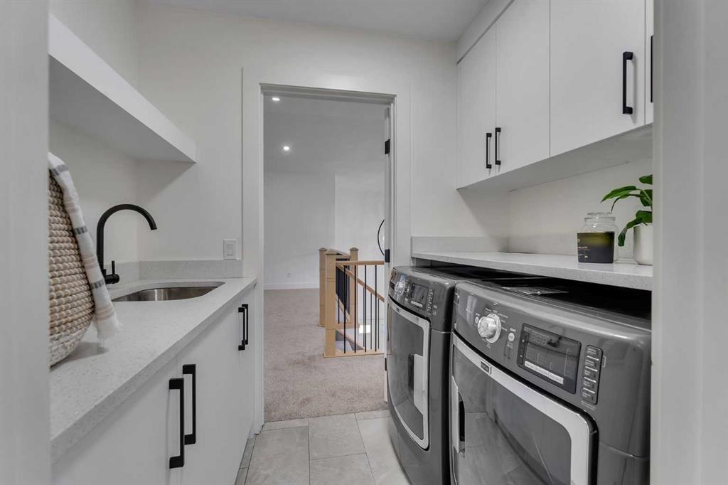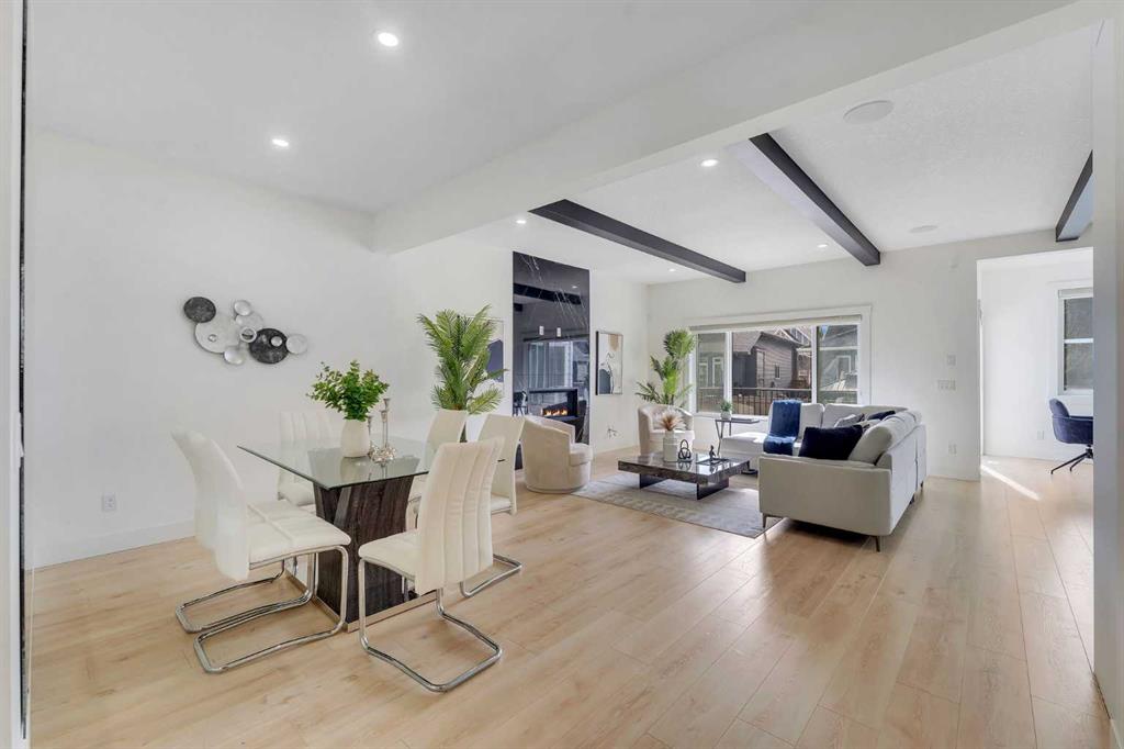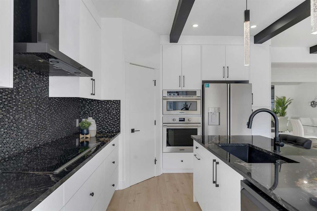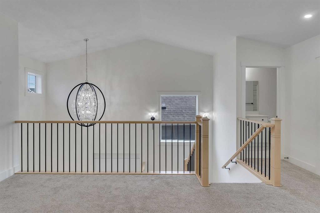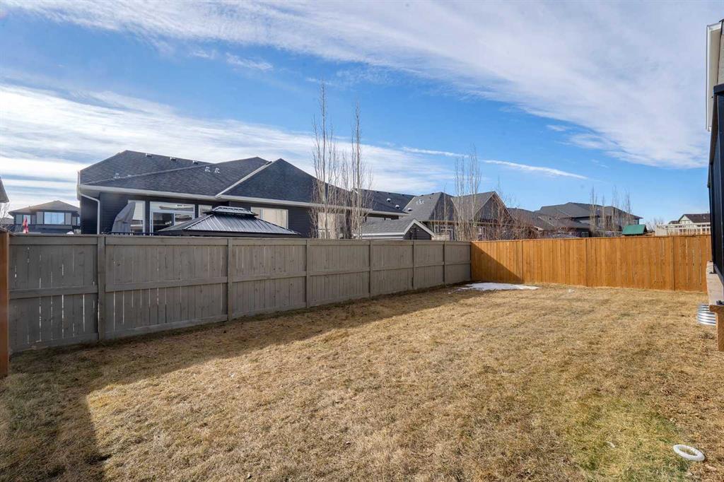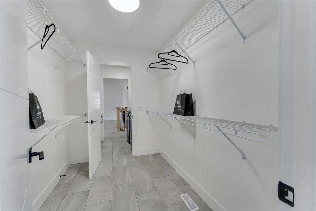 Welcome to this stunning luxury home located in the highly sought-after community of Coopers Crossing. Offering approximately 2,637 sq. ft. of thoughtfully designed living space, this elegant two-storey residence perfectly combines modern upgrades with timeless style. This home features 5 spacious bedrooms and 4 full bathrooms, ideal for growing families or multi-generational living. The main floor boasts a bright and open layout, complete with two dining areas, a full bedroom, and a 3-piece bathroom with a standing shower. The grand double-door entrance creates a welcoming first impression. The chef-inspired kitchen is beautifully upgraded with built-in appliances, a chimney-style hood fan, ceiling-height cabinetry, and sleek black hardware throughout. The living room showcases a striking feature fireplace with bold black tile detailing, adding warmth and sophistication. Large windows across the main floor allow for an abundance of natural light, while the elegant spindle railing enhances the overall design. Upstairs, you will find 4 generously sized bedrooms and 3 full bathrooms, along with a spacious bonus/family room featuring a vaulted ceiling—perfect for relaxation or entertainment. The primary bedroom offers a tray ceiling, a luxurious 5-piece ensuite with a jetted tub, separate glass shower, and a large walk-in closet. The upper-level laundry room is equipped with a sink and additional storage for convenience. All secondary bedrooms are well-proportioned, with access to two additional full bathrooms. Step outside to enjoy a large rear deck and fully fenced backyard—ideal for outdoor living. A side entrance to the basement provides excellent potential for future development. The home is further enhanced with durable and premium James Hardie (Hardie Board) exterior siding and features a Double wide car garage, offering extended parking space or additional storage flexibility. Conveniently located close to schools, parks, playgrounds, and shopping plazas, this home delivers exceptional value in one of Airdrie’s most prestigious neighbourhoods. Don’t miss this incredible opportunity to own a premium home in Coopers Crossing.