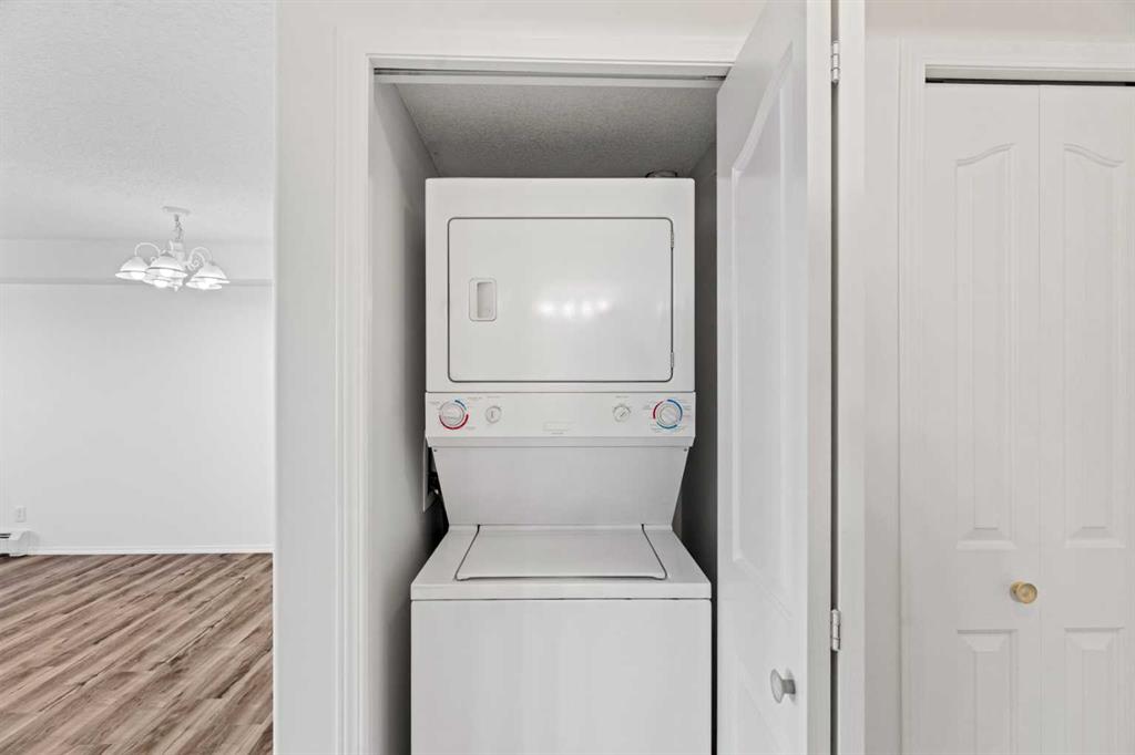 Enjoy a lifestyle focused on ease and connection in this BEAUTIFULLY UPDATED condo located on the top floor in the established community of Pineridge in Legacy Estates. Designed for 55+ LIVING, this residence offers the perfect balance of independence and convenience, all within a welcoming and well-managed building. This 1-bedroom unit has been thoughtfully refreshed with NEW LUXURY VINLY FLOORING, FRESH PAINT, and QUARTZ COUNTERS. The BRIGHT, OPEN layout maximizes the living space, creating a comfortable flow between the living and dining areas. The kitchen is both practical and spacious, featuring ample cabinetry and prep space, while the added benefit of IN-SUITE LAUNDRY enhances everyday convenience. Large windows invite in NATURAL LIGHT, and the living area opens directly onto a PRIVATE PATIO, an ideal setting to relax and unwind. The primary bedroom is GENEROUSLY SIZED, with the SPACIOUS, 4-piece bathroom including support bars, and a layout designed for comfort and safety. Legacy Estates is known for its strong sense of community and impressive list of AMENITIES. Residents enjoy access to shared dining, a fitness centre, games and recreation rooms, a library, craft areas — everything you need, just steps from your door. With condo fees that cover heat, electricity, and water, this is truly worry-free ownership. Ideally situated close to shopping, transit, walking paths, and major routes like Stoney Trail, this home offers both convenience and exceptional value in a sought-after 55+ setting. Don’t miss the opportunity to make this beautiful home yours!