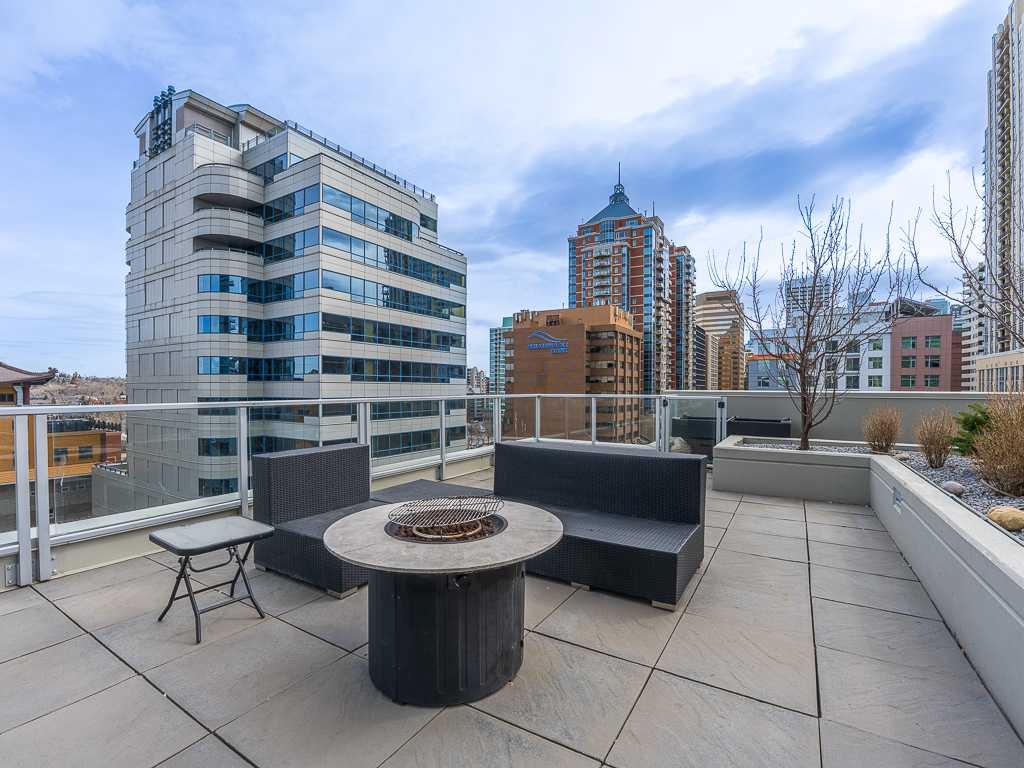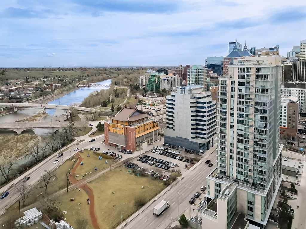 Welcome to this bright and spacious 2-bedroom, 2-bathroom condo in the sought-after Downtown West End. Featuring a massive private patio, this home offers exceptional indoor-outdoor living—perfect for entertaining or relaxing. The upscale interior is complete with rich hardwood flooring, quality carpet, air conditioning, and in-suite laundry. The gourmet kitchen is appointed with premium built-in appliances, including a built-in refrigerator, high-end 5-burner gas stove, built-in microwave, quartz countertops, and sleek modern cabinetry. Enjoy your private outdoor space with panoramic river and city views. The open-concept layout and split-bedroom design provide both functionality and privacy. Steps to the C-Train, Bow River pathways, and Kensington’s shops and restaurants. Full-service building with 24-hour concierge, fitness centre, dog wash, and bicycle workshop. Includes 2 titled side-by-side underground parking spaces, titled storage locker, and heated underground visitor parking. A rare opportunity to own a premium unit in one of Calgary’s upscale downtown buildings.