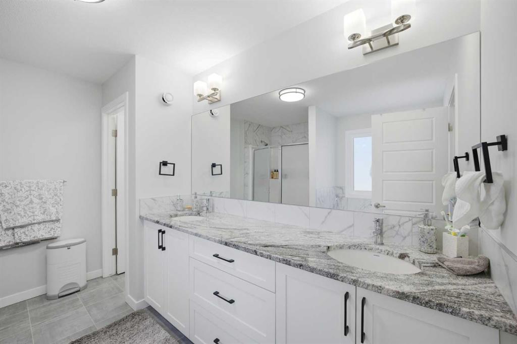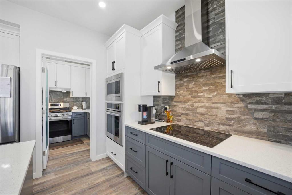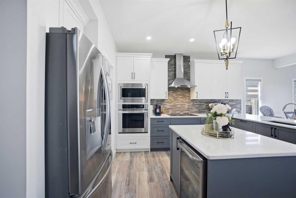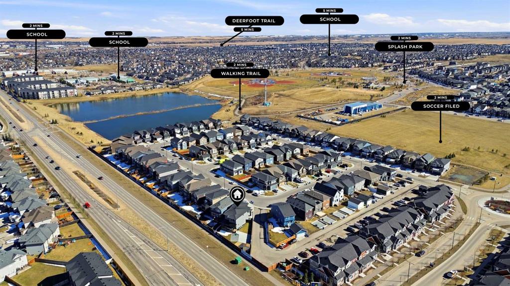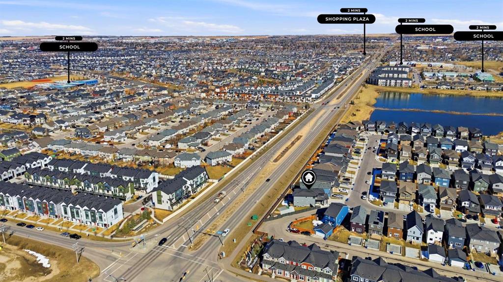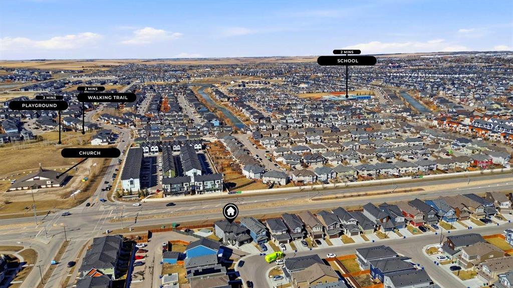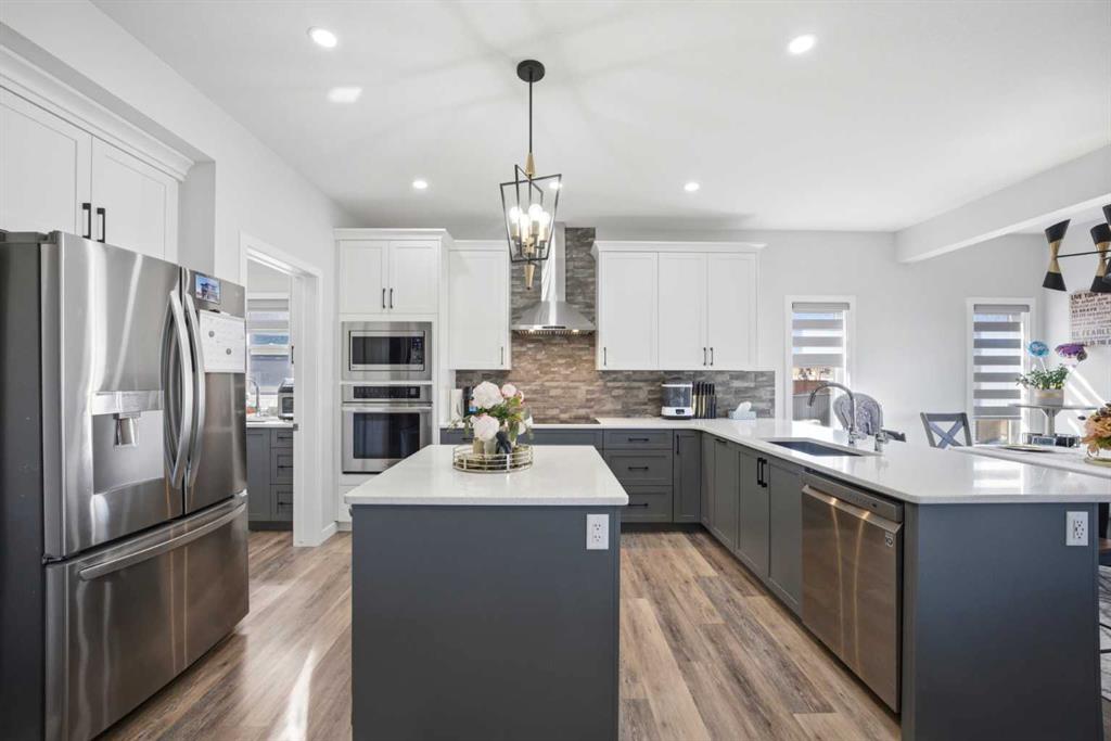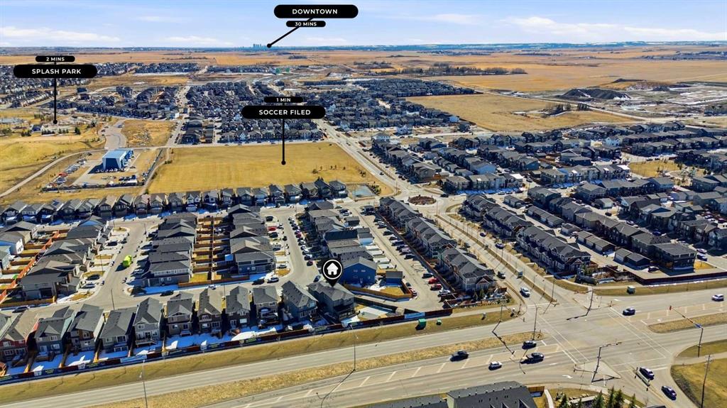 Welcome to this stunning, fully developed 2-storey home located in the sought-after community of Cobblestone SW in Airdrie. Situated on a massive pie-shaped corner lot of approximately 7,200 sq ft, this property offers exceptional space, privacy, and functionality—perfect for growing families or savvy investors. Step inside through the impressive double door entry into a grand, open foyer that sets the tone for the rest of the home. The main floor features a spacious bedroom and a full bathroom, ideal for guests or multi-generational living. The expansive living area is highlighted by a cozy gas fireplace and large windows that flood the space with natural light. The upgraded chef’s kitchen is a true showstopper, complete with built-in stainless steel appliances, a stylish range hood, and a large island countertop—perfect for entertaining. A separate spice kitchen with a gas stove adds extra convenience, while the bright dining area overlooks the backyard. Upstairs, you’ll find a well-designed layout featuring a luxurious primary bedroom with a 5-piece ensuite and walk-in closet. A second primary bedroom includes its own 3-piece ensuite, while two additional bedrooms share a full bathroom. The central bonus room provides extra living space, and a dedicated laundry room adds everyday convenience. The fully developed basement features a separate entrance and includes a legal 3-bedroom suite with 2 full bathrooms, its own kitchen, and laundry—an excellent investment opportunity. Additional upgrades include a water softener , water purification system and 8 feet garage door with tons shelves for extra storage . Enjoy outdoor living in the huge backyard with no rear neighbors, offering beautiful sunset views. The two-tier deck is perfect for entertaining, and there is ample space for RV parking. This exceptional property combines luxury, space, and income potential—all in a prime location close to amenities like schools, shopping plaza, playground, Parks, future recreation arena, church and many more. Don’t miss out on this rare opportunity—book your private showing today!