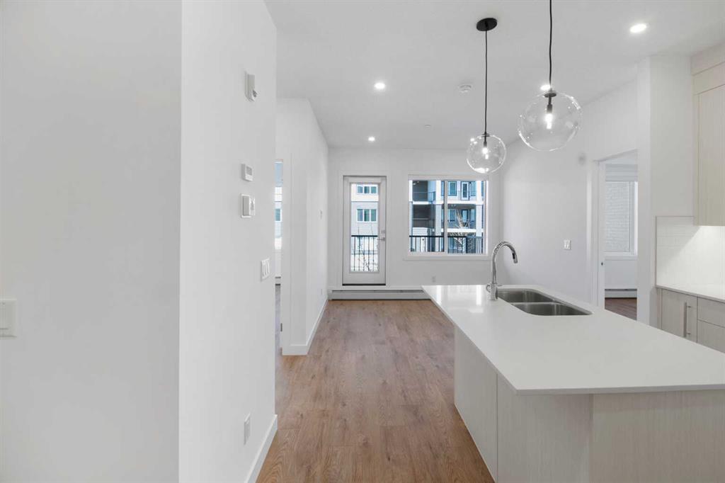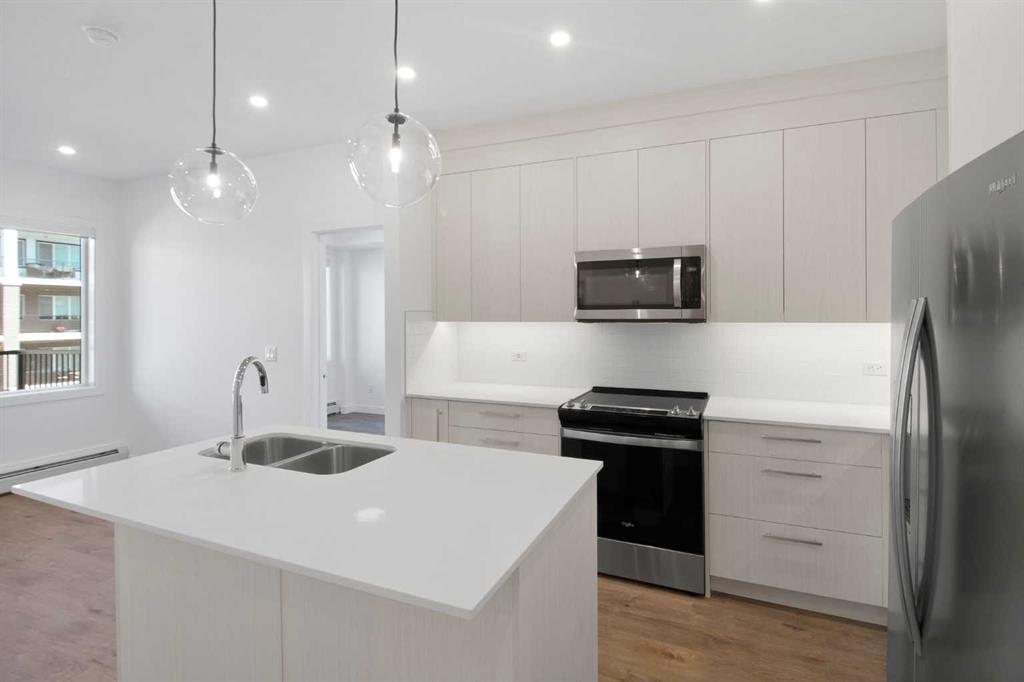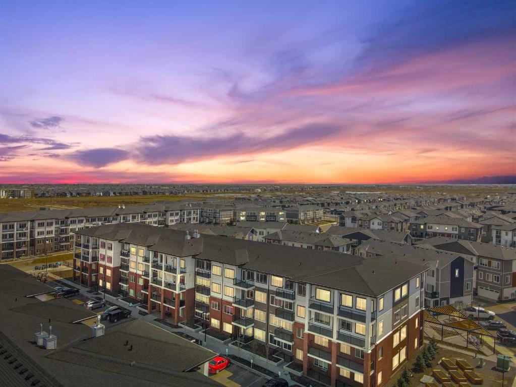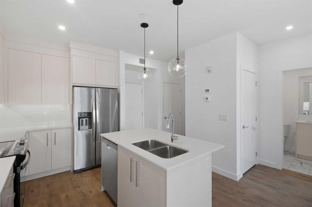 Welcome to this BRAND NEW, never-lived-in 2-bedroom, 2-bathroom condo with a den and 2 TITLED PARKING STALLS, ideally located in the vibrant lake community of Chelsea, Chestermere. Built by TRUMAN, this modern home offers a seamless blend of contemporary design, smart functionality, and everyday comfort—perfect for first-time buyers, downsizers, or investors. Enjoy the lake lifestyle just minutes from Chestermere Lake, featuring beach access, a boat launch, scenic walking paths, parks, and playgrounds. Everyday conveniences are close by, with Chestermere Station and Chestermere Crossing nearby, plus the added benefit of being just a 5-minute drive to EAST HILL Shopping Centre, home to Costco, Walmart, a cinema, and a wide variety of shopping and dining options. Inside, the open-concept layout is bright and inviting, featuring a versatile den ideal for a home office or flex space. Premium finishes include luxury vinyl plank flooring, soaring ceilings, and a chef-inspired kitchen with full-height cabinetry, soft-close drawers, quartz countertops, stainless steel appliances, a pantry, and a large eat-up island—perfect for casual dining or entertaining. The spacious primary bedroom offers a walk-through closet and a private 3-piece ensuite, while a second bedroom, a full 4-piece main bath, and in-suite laundry complete the thoughtfully designed floor plan. Residents of Lockwood enjoy exclusive access to a fully equipped fitness centre, a stylish owners’ lounge, and convenient bike storage—supporting an active and connected lifestyle. Bright, modern, and truly move-in ready, this never-occupied home delivers small-town lake living with big-city convenience—just minutes from Calgary. Live better. Live Chelsea.