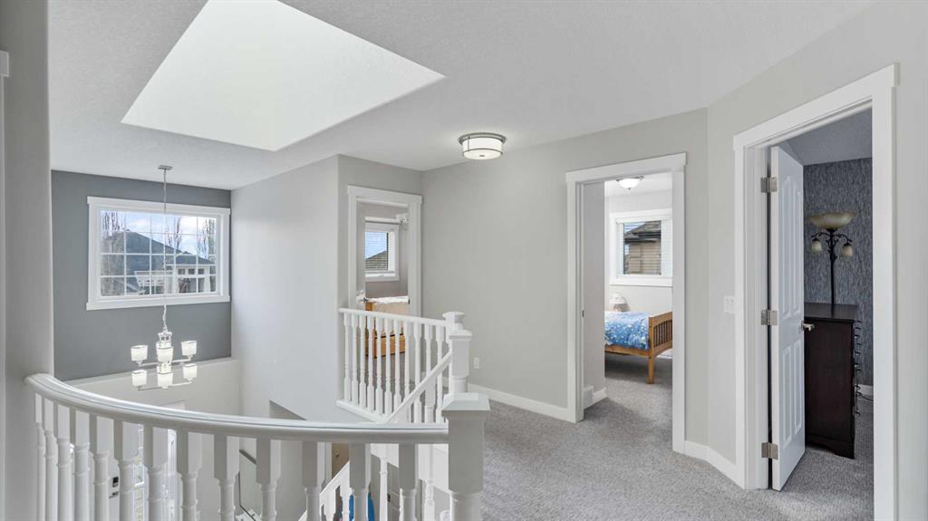 Welcome to this beautifully fully renovated family home in the highly sought-after community of McKenzie Lake. Offering over 3,500 sq. ft. of developed living space and 6 bedrooms, this impressive property perfectly combines modern upgrades, functional design, and an unbeatable location in one of Calgary’s most established and family-friendly neighbourhoods. Perfectly situated on a quiet street backing directly onto a park and playground, this home offers rare privacy with no rear neighbours and peaceful green space views. Step inside to a dramatic open-to-below foyer featuring a curved staircase and skylight, filling the entryway with natural light and creating a grand first impression. The main floor offers a versatile layout with a bright front flex room, a formal dining area with elegant arched openings, and a spacious living room anchored by a gas fireplace with a striking stone surround. The fully renovated kitchen showcases timeless two-tone cabinetry, stone countertops, stainless steel appliances, and a large central island. A sun-filled breakfast nook overlooks the backyard, and the adjacent deck provides the perfect setting for summer barbecues and outdoor entertaining. A main-floor office offers an ideal workspace, study area, or optional guest room. Upstairs, the primary suite serves as a true retreat, featuring dual closets and a spa-inspired ensuite with dual vanities, a fully tiled walk-in shower with 10mm glass, a freestanding soaker tub, and heated floors. Three additional spacious bedrooms and a full bathroom complete the upper level. The fully finished basement expands the home’s living space with a large recreation and entertainment area with a built-in bar, plus two additional bedrooms and a full bathroom, offering excellent flexibility for guests, teenagers, or extended family. Recent upgrades provide added peace of mind, including a new roof and skylight installed in April 2023, new triple-pane windows installed throughout in 2023 and 2024, a hot water tank replaced in 2020, and washer and dryer installed in 2020. Conveniently located with quick access to Deerfoot Trail and Stoney Trail, this home offers easy commuting across the city. Just steps away, enjoy the scenic Bow River pathways and the natural beauty of Fish Creek Provincial Park, along with stunning Rocky Mountain views. Daily conveniences are close at hand with shopping, dining, and services at South Trail Crossing (130th Ave SE). Families will appreciate the nearby schools, including McKenzie Lake School and Mountain Park School. With a double attached garage, over 3,500 sq. ft. of developed space, and a rare park-backing location, this exceptional home offers the perfect balance of comfort, style, and family-friendly living in one of Calgary’s most desirable communities.