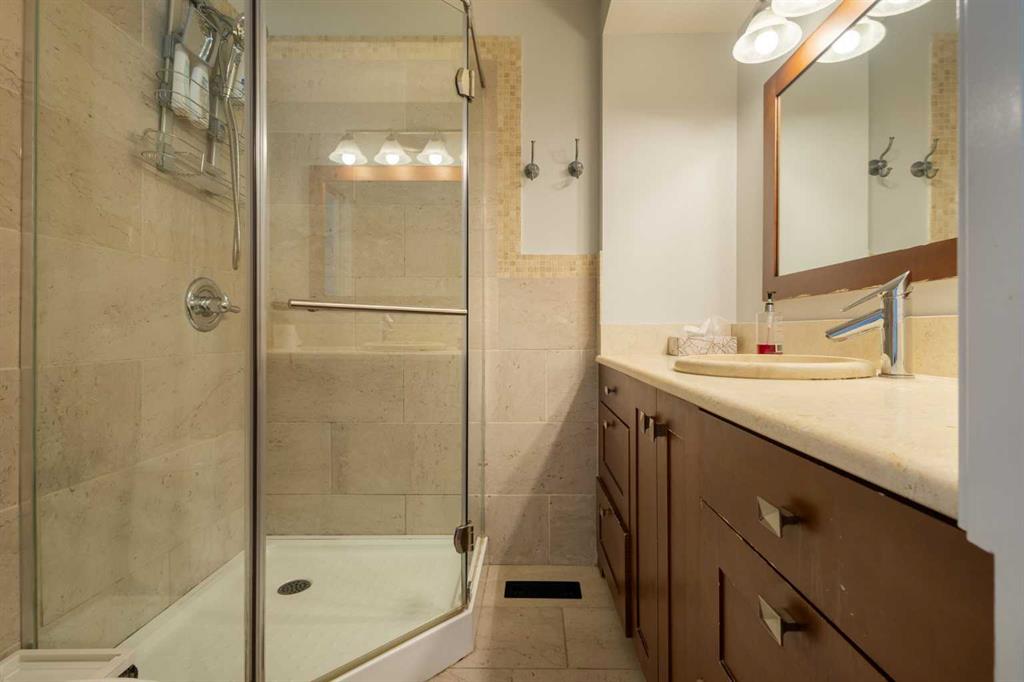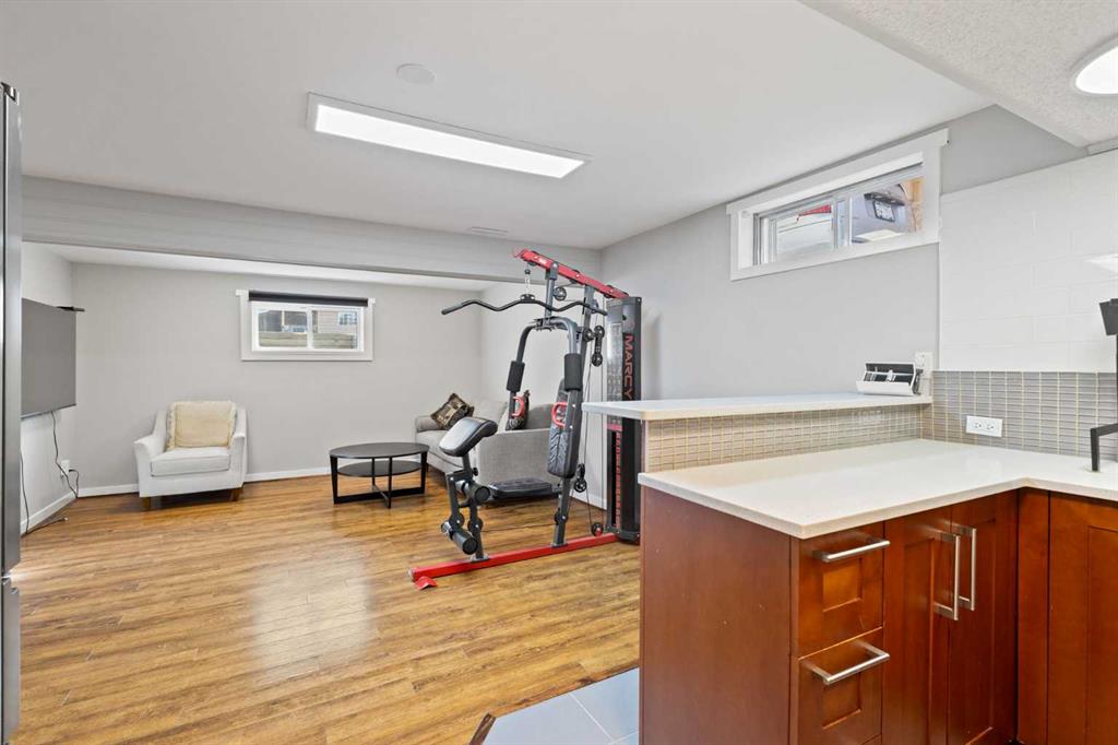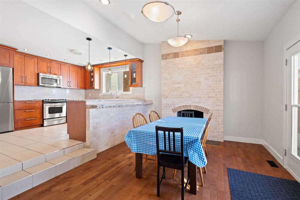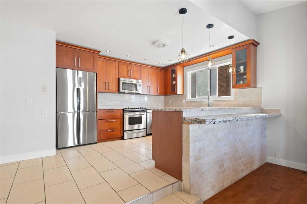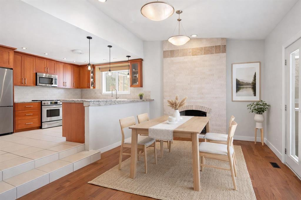 Renovated bungalow on a quiet cul-de-sac with a fully finished basement and an oversized double garage with 220 power. This move-in ready home offers 3 bedrooms up and 2 bedrooms down (non-egress windows) along with 3 full bathrooms, all situated on a large lot surrounded by mature trees. The main floor features hardwood flooring and a bright open living space with large windows that bring in plenty of natural light. The updated kitchen includes granite countertops, stainless steel appliances, modern lighting, and a raised eating bar that opens to the dining area. A wood-burning fireplace adds warmth and character, creating a comfortable space for everyday living or entertaining. The spacious primary bedroom includes a private 3-piece ensuite. Two additional bedrooms and a full bathroom complete the main level. The finished basement adds excellent living space with a large recreation room, two additional bedrooms with non-egress windows, and an updated 3-piece bathroom and a kitchennette with separate entrance and shared laundry. The backyard offers plenty of outdoor space and privacy with mature trees and room to relax or entertain. The oversized detached double garage with 220 power provides excellent storage and workspace. Recent updates include fresh interior and exterior paint, LED lighting upgrades, newer roofing, improved attic insulation, and additional maintenance improvements. Conveniently located close to schools, parks, shopping, and pathways, this property offers a great combination of upgrades, space, and location.