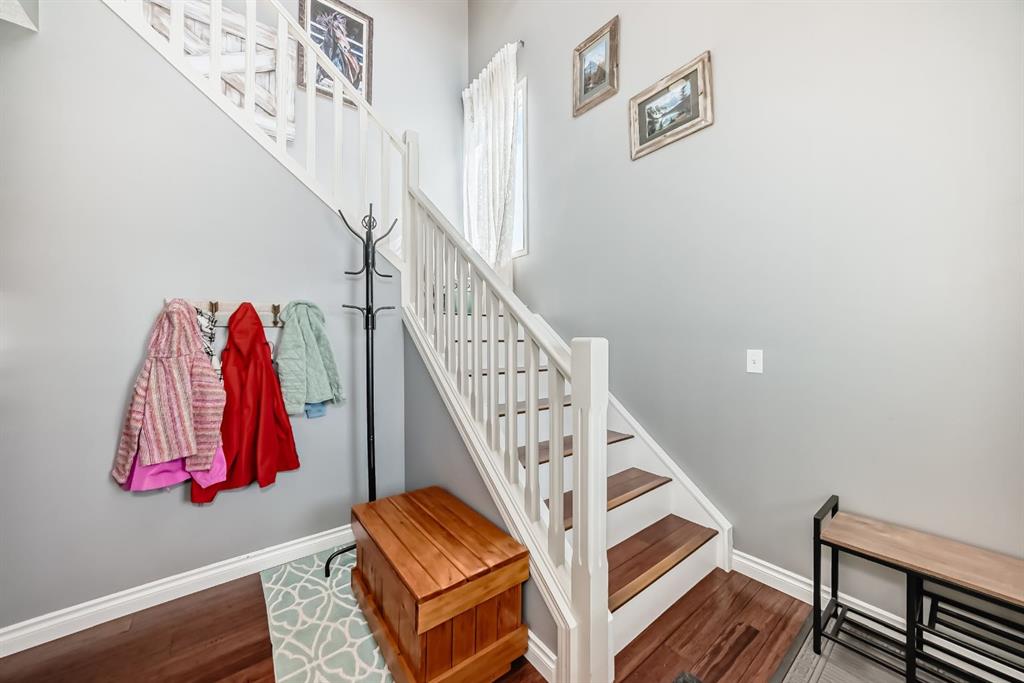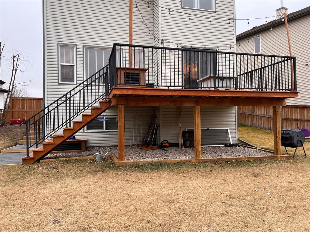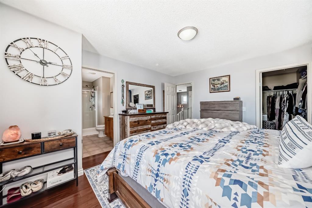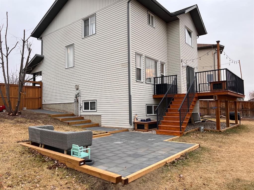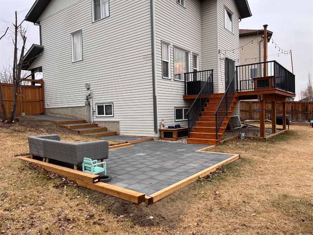 OPEN HOUSE SUNDAY APRIL 26 12:00-3:00!! This home is immaculate. Situated in a quiet cut-de-sac with lovely neighbours and on a MASSIVE PIE LOT!! The home has had many updates. Walking up you will notice the new roof, garage door, exterior lights, some siding, and a few windows. The main floor and up stairs features new HARDWOOD floors that lead you to your open concept floor plan. The living room features a corner natural gas fireplace with bright window overlooking you back yard. The kitchen features mostly newer appliances, a kitchen island, loads of cupboards and counter space, A WALK THROUGH pantry with access to your garage. Completing the main floor is a 2 piece powder room, a lovely laundry area with custom live edge wood shelving and access to your double heated attached garage. The upper floor houses 3 bedrooms, a full 4 piece bathroom, linen closet and tasteful finishings. The primary is large enough for king furniture and has a large walk in closet and generous ensuite. The lower is mostly finished. The drywall is up it is just waiting for flooring paint and bathroom install. This home has one of the most amazing back yards for space. With a new custom built concrete patio and room for so much more!! MUST SEE!!
