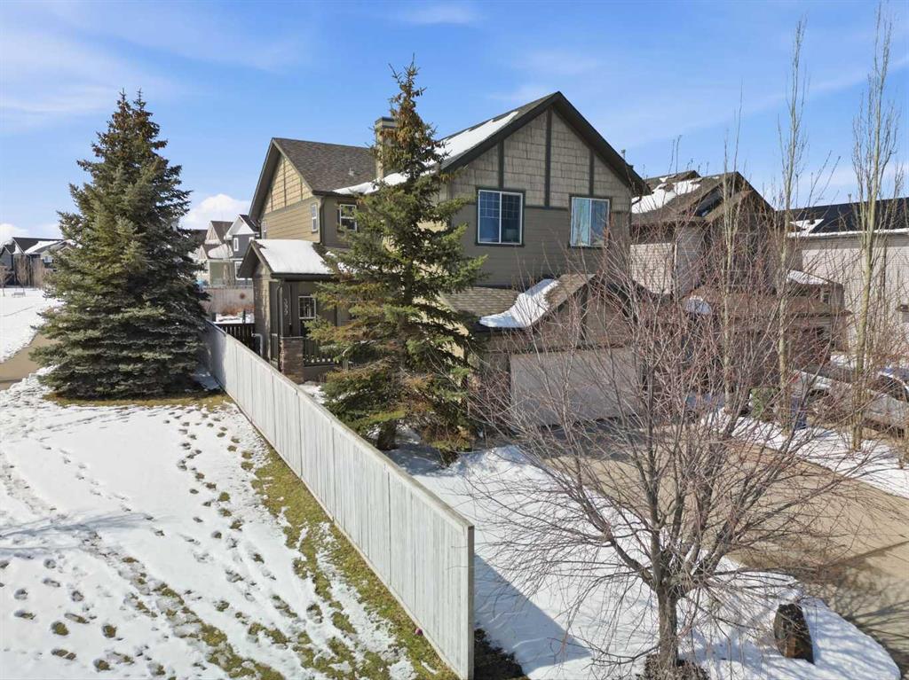 With a west-facing backyard and siding onto green space, 399 Coopers Drive SW delivers over 3,200 sq. ft. of developed living space with a layout that actually works for a busy household. The exterior is finished in durable Hardie board siding, and the backyard is fully fenced with a newer composite deck—perfect for taking advantage of the afternoon and evening sun. Stepping inside the front door, you’re greeted by a spacious front entry with a massive walk-in closet (a rare and genuinely useful feature), plus a dedicated main floor office. The kitchen is functional, featuring stone countertops, a large pantry, and new high-end appliances, all tied together with laminate flooring across the entire level. This home leans into entertaining, with a built-in speaker system that flows from the interior to the backyard deck. Upstairs, you’ll find FOUR generously sized bedrooms, including a primary retreat with a walk-in closet and a five-piece ensuite as well as a BONUS area and a 5-piece bath. The fully developed basement adds real flexibility—complete with a FIFTH bedroom, full bathroom, and a comfortable rec space with a wet bar and second fireplace. Central A/C, two hot water tanks, and a DOUBLE ATTACHED, HEATED garage are already in place. Located close to schools, shopping, playgrounds and pathways, with the added bonus of green space right next door, this is a solid, move-in-ready option in one of Airdrie’s most family-friendly communities.
