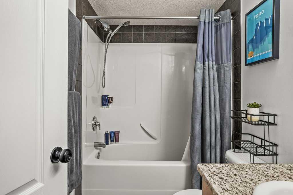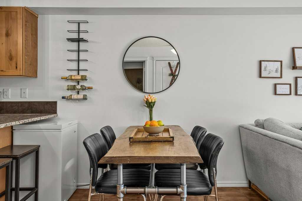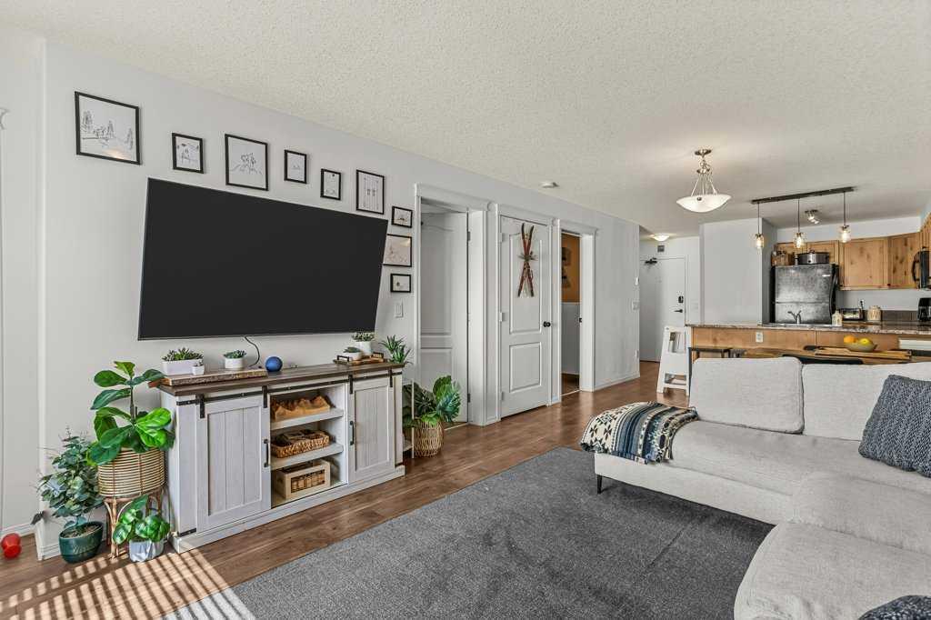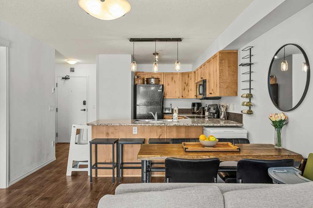 Bright and sunny two bedroom, one bathroom property. Ideally situated in the building with great light and mountain views. A smart and open concept kitchen, dining and living area with access to a sunny patio. Two spacious bedrooms and a full bathroom complete the space. Granite countertops in the kitchen and bathroom. Unit comes with a titled underground parking stall and storage cage and the building has a fitness room. Great location, close to downtown and many of Canmore's favourite attractions.