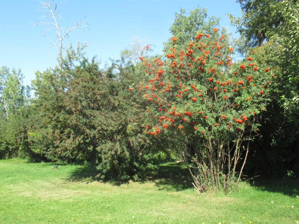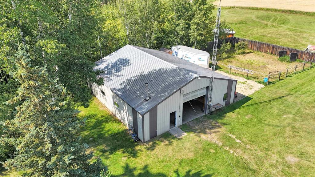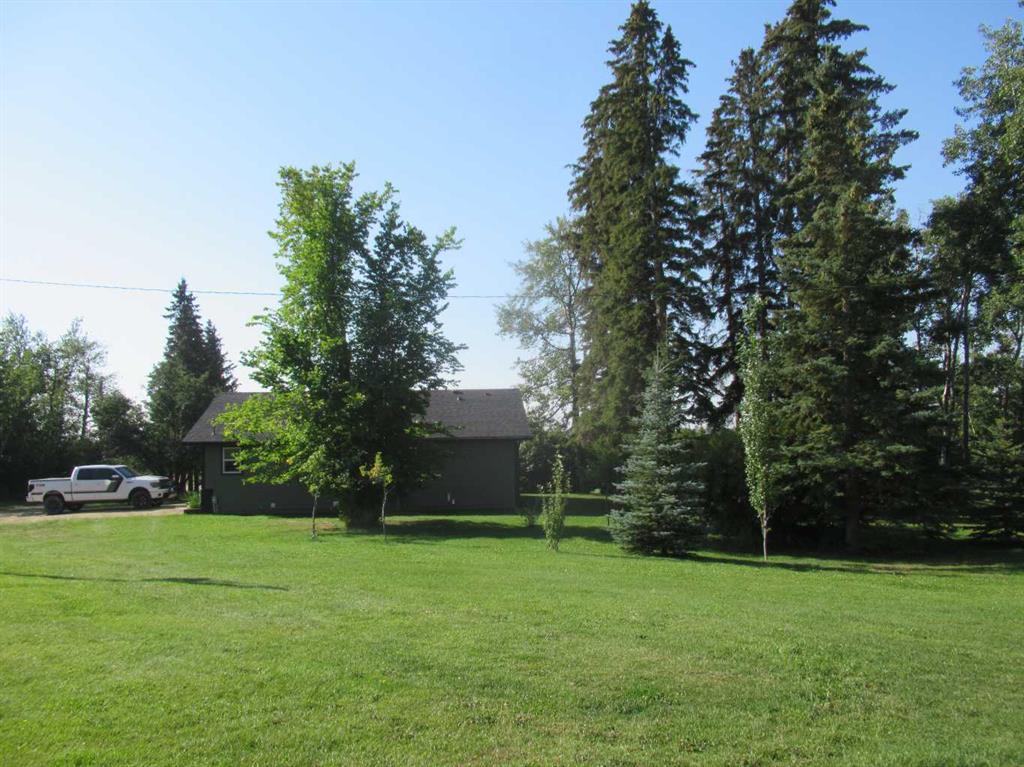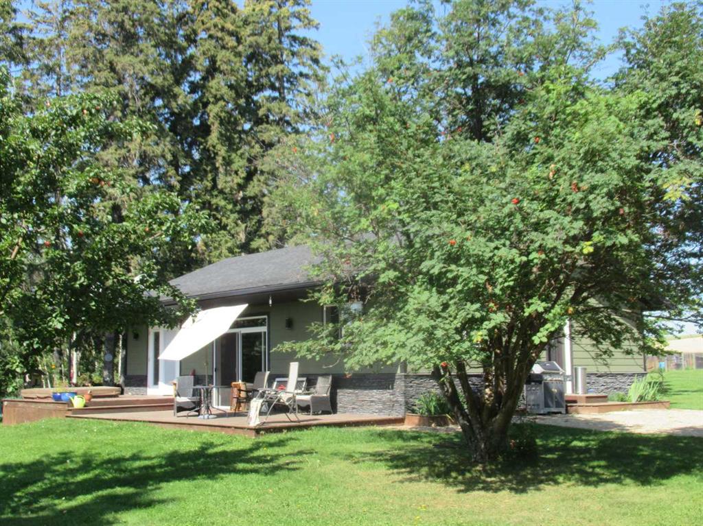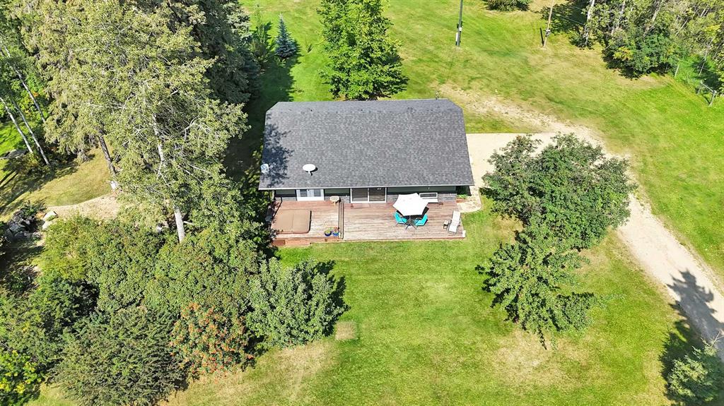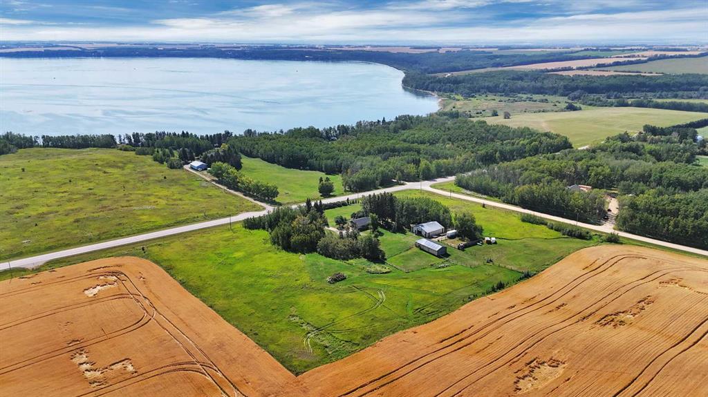 This versatile acreage is 9 acres with access to a great view of Sylvan Lake and Palm's Bay. Boat launching' and beach access are both available close by at the Palm's bay access road (Range Road 23). Another beach and boat access point is available a mile to the east, at Sunbreaker Cove. Other recreation features on this beautiful acreage include the horse-shoe pits, a fire pit, a gold fish pond, and a deck with a hot-tub. The wooded natural areas have large numbers of wild saskatoon, chokecherry and raspberry trees and bushes. The very attractive, easy-entry bungalow has a large open-concept kitchen, living room, family room area, with two bedrooms and a bath and a half, all stainless steel appliances, and a hot-water heating system are other features. Patio doors open to the large wood deck and hot-tub. Extra features of the home include lifetime shingles, quartz counter tops and vinyl plank flooring. The 57' x 26' horse barn has a steel roof and opens to several pasture areas and turn-out yards. The 50' x 44' shop has benches, in-floor heating, air compressor, shop hoist, LED lighting, steel roof, and is hidden from Rainy Creek Road by a natural shelter-belt full of wild birds. This easy access shop could, potentially, provide a home base for a mechanical, welding, or trucking business, or provide a safe home for all of your toy's. The 160 ft deep well, is tested at 14gpm, and the acreage is serviced by a septic tank system.